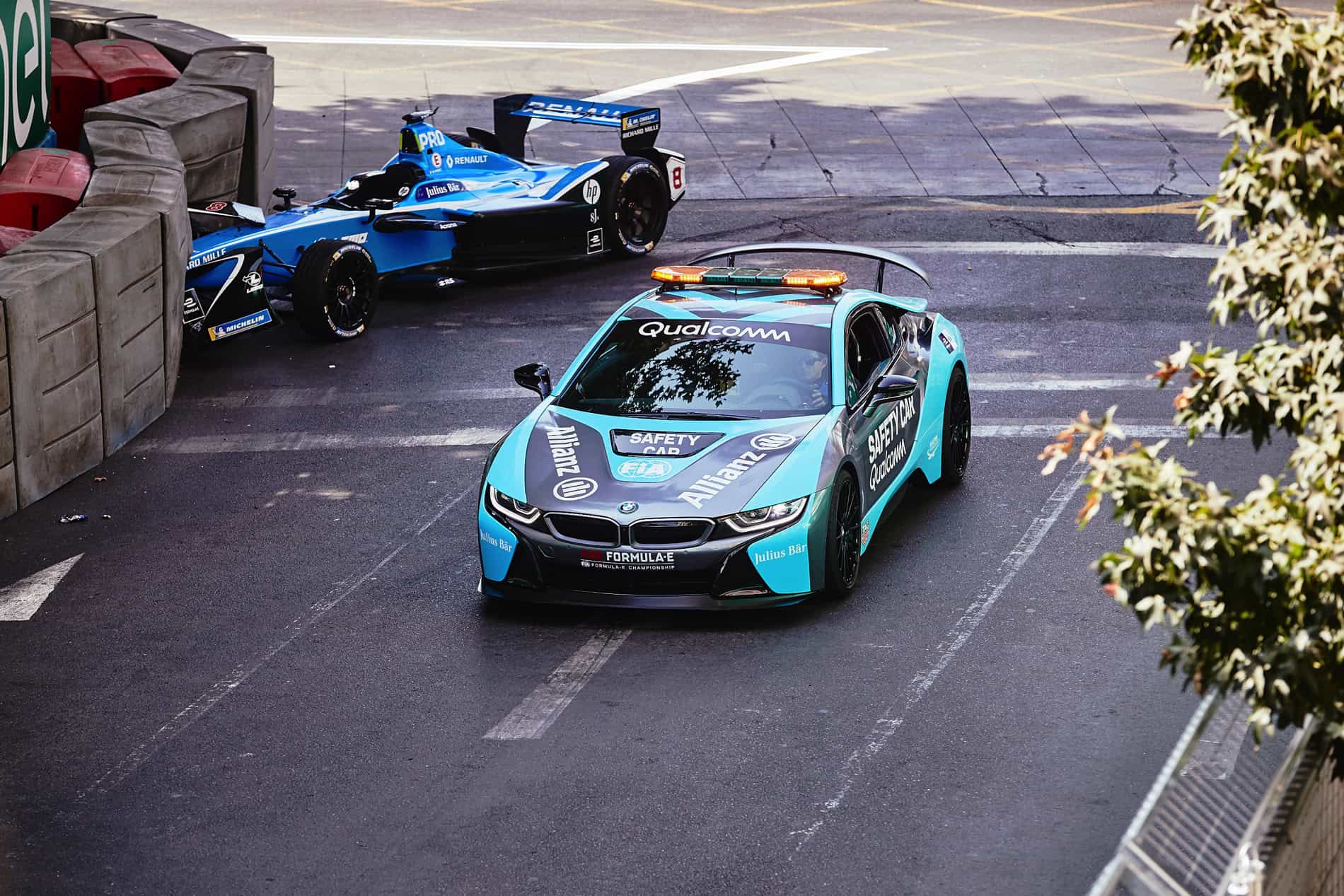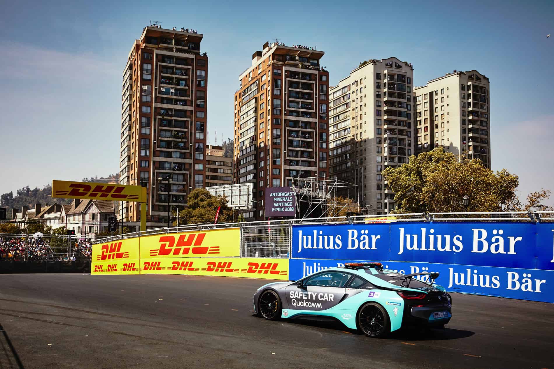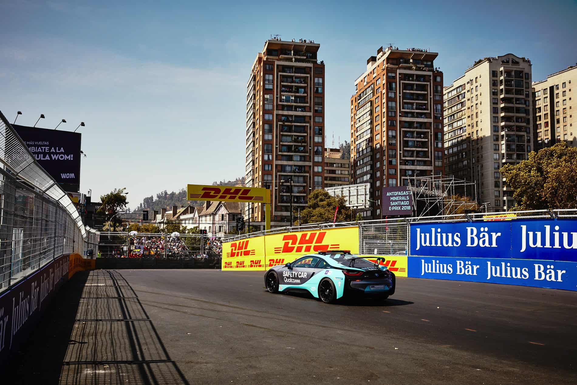Two days after its unveiling in Santiago de Chile (CHI), the new BMW i8 Coupé Qualcomm Safety Car enjoyed its first race outing. The safety car was soon out on track following a number of crashes on the opening lap of the spectacular fourth race of the season in the ABB FIA Formula E Championship, which was the series’ first appearance in the Chilean capital. MS&AD Andretti Formula E driver António Félix da Costa (POR) recovered from a difficult qualifying to fight back strongly in the race. He eventually came home ninth and was rewarded for his efforts with two points. His team-mate Tom Blomqvist (GBR) also drove well and finished eleventh, just outside the points.