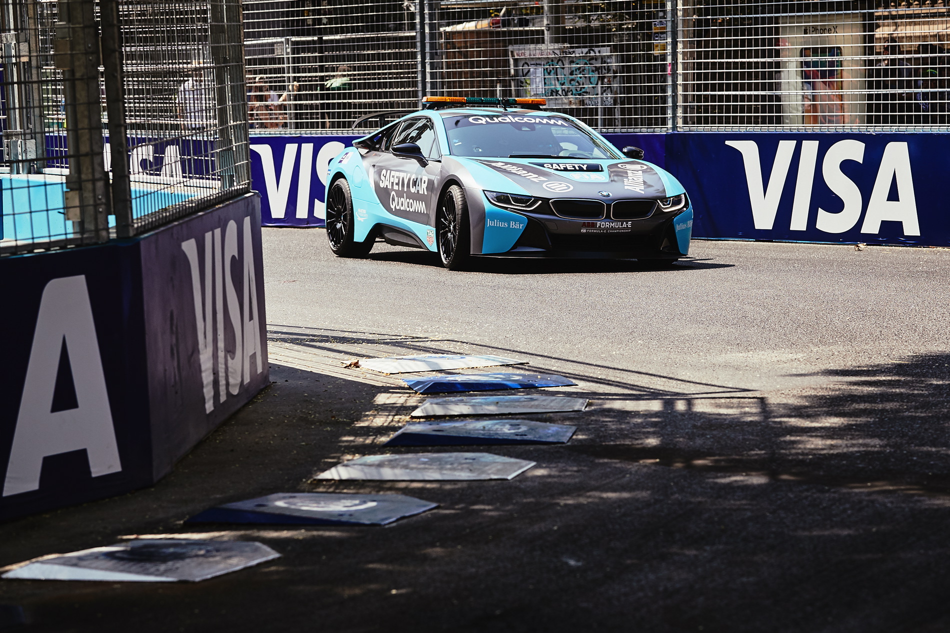 A number of cars were involved in collisions on the opening lap, resulting in a yellow flag period. That meant the new BMW i8 Coupé Qualcomm Safety Car made its first appearance on track during a race. Blomqvist made good progress on lap one, while Félix da Costa had to take evasive action to avoid a crash and dropped back behind his team-mate. However, the Portuguese driver regained his place ahead of Blomqvist at the pit stop, which was held without a minimum time for the first time, and so the race developed into a genuine battle for every tenth of a second. In the second half of the race, Félix da Costa benefitted from being able to stay out a lap longer than the opposition before coming in to switch cars. With more energy at his disposal he was quick in the second car and climbed into ninth place to finish in the points. Blomqvist ended his second Formula E race in eleventh, just outside the points. Victory in the spectacular race went to Vergne.
