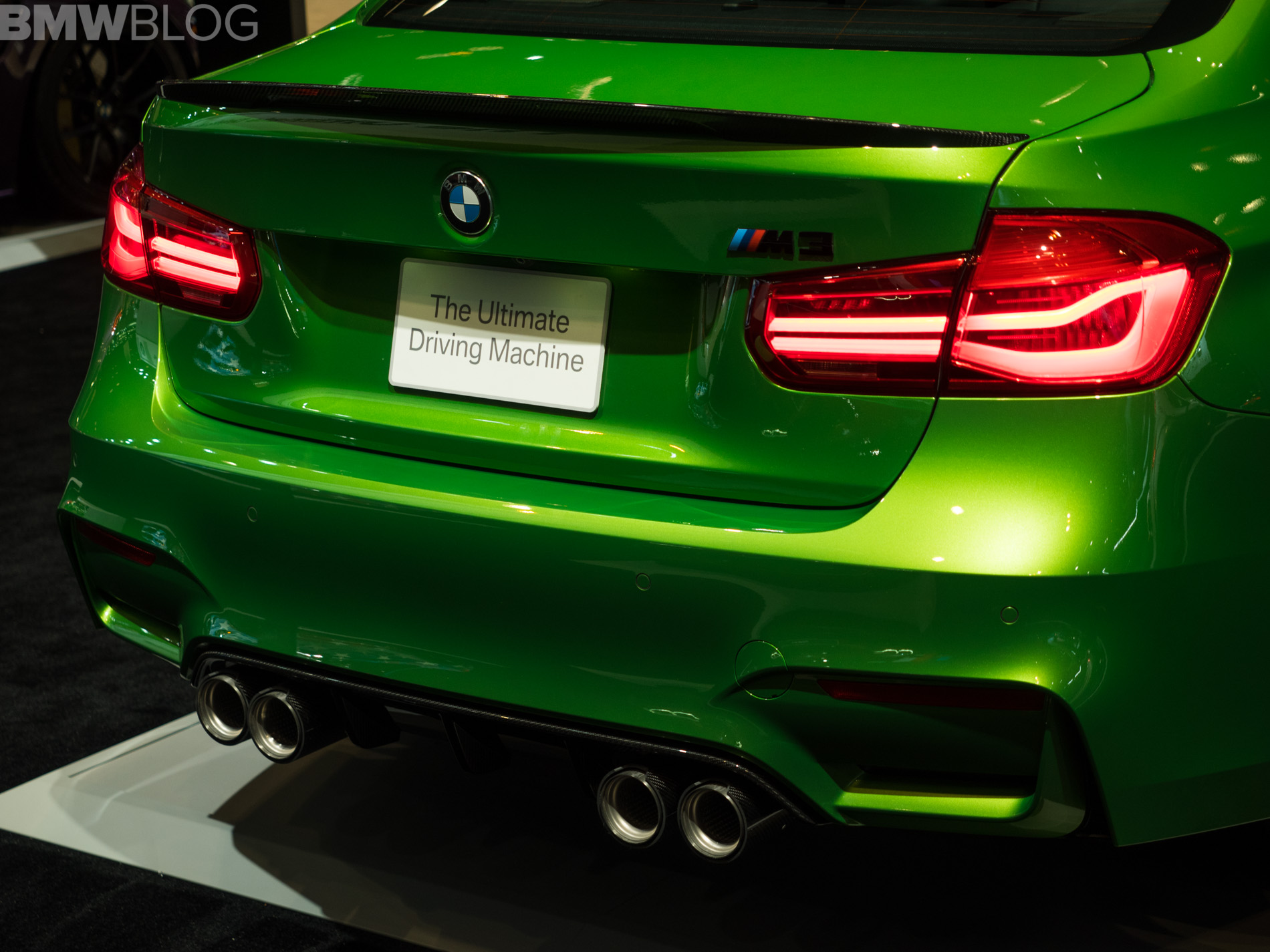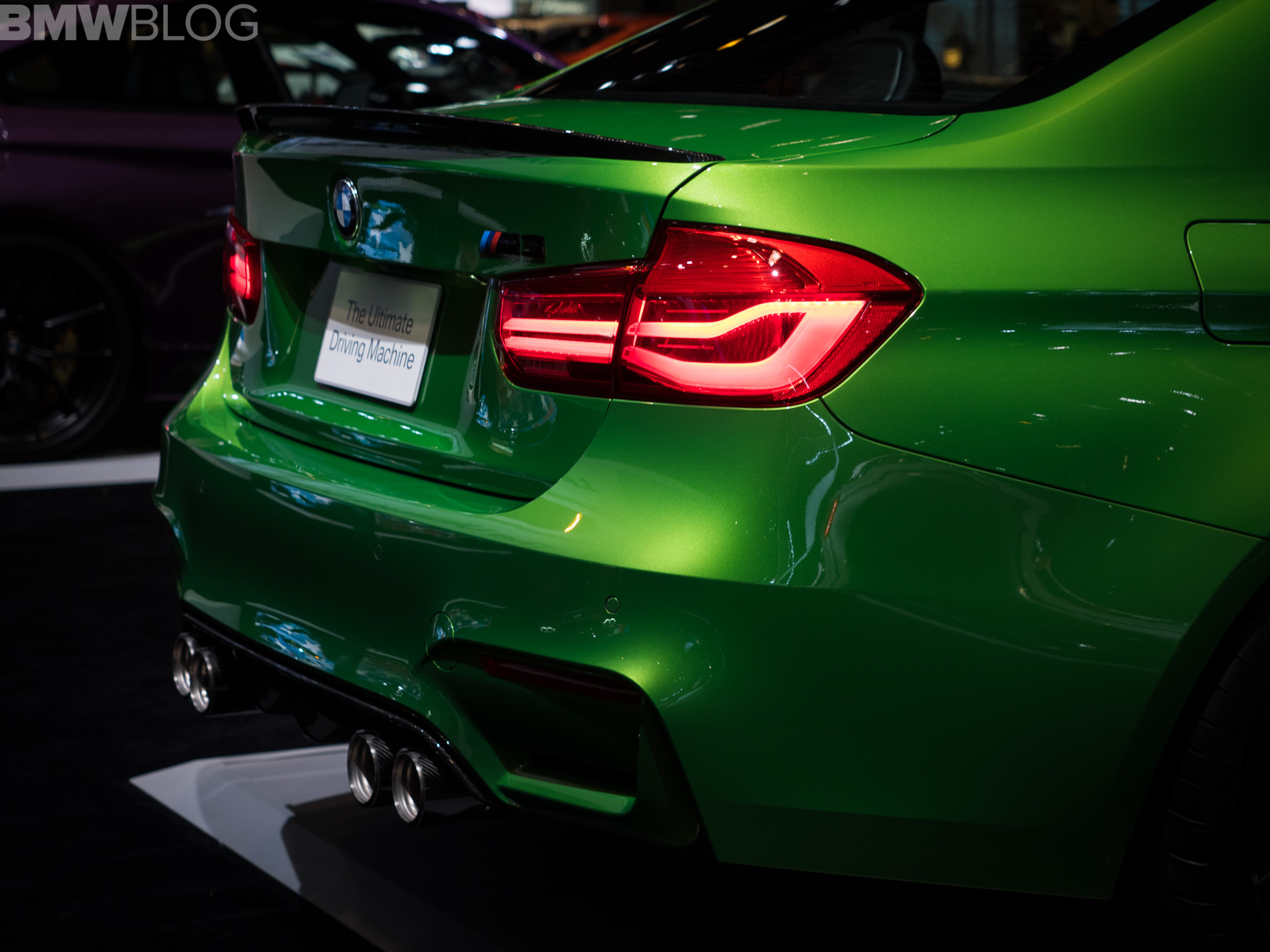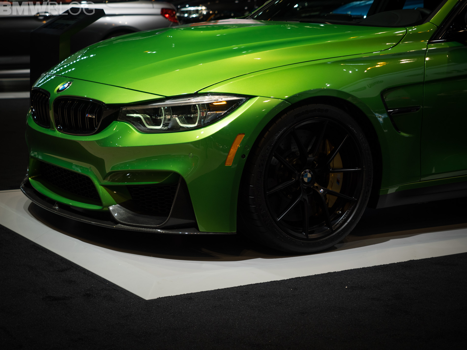One other skittle in the colorful BMW stand at the 2018 Chicago Auto Show is a BMW M3 Sedan painted in Java Green. The sporty sedan not only stands out with its muscular looks and broad shoulders, but also with its assortment of aero parts provided by the M Performance division.