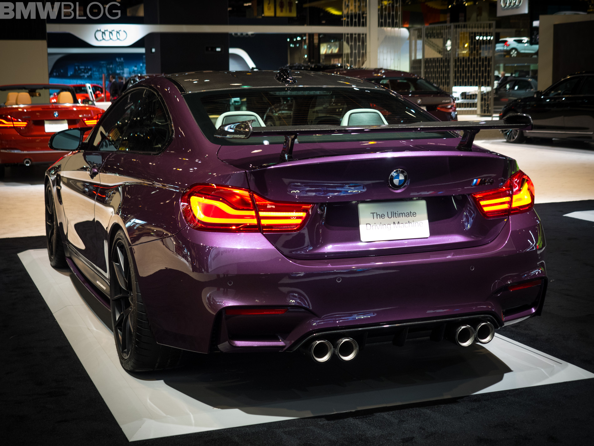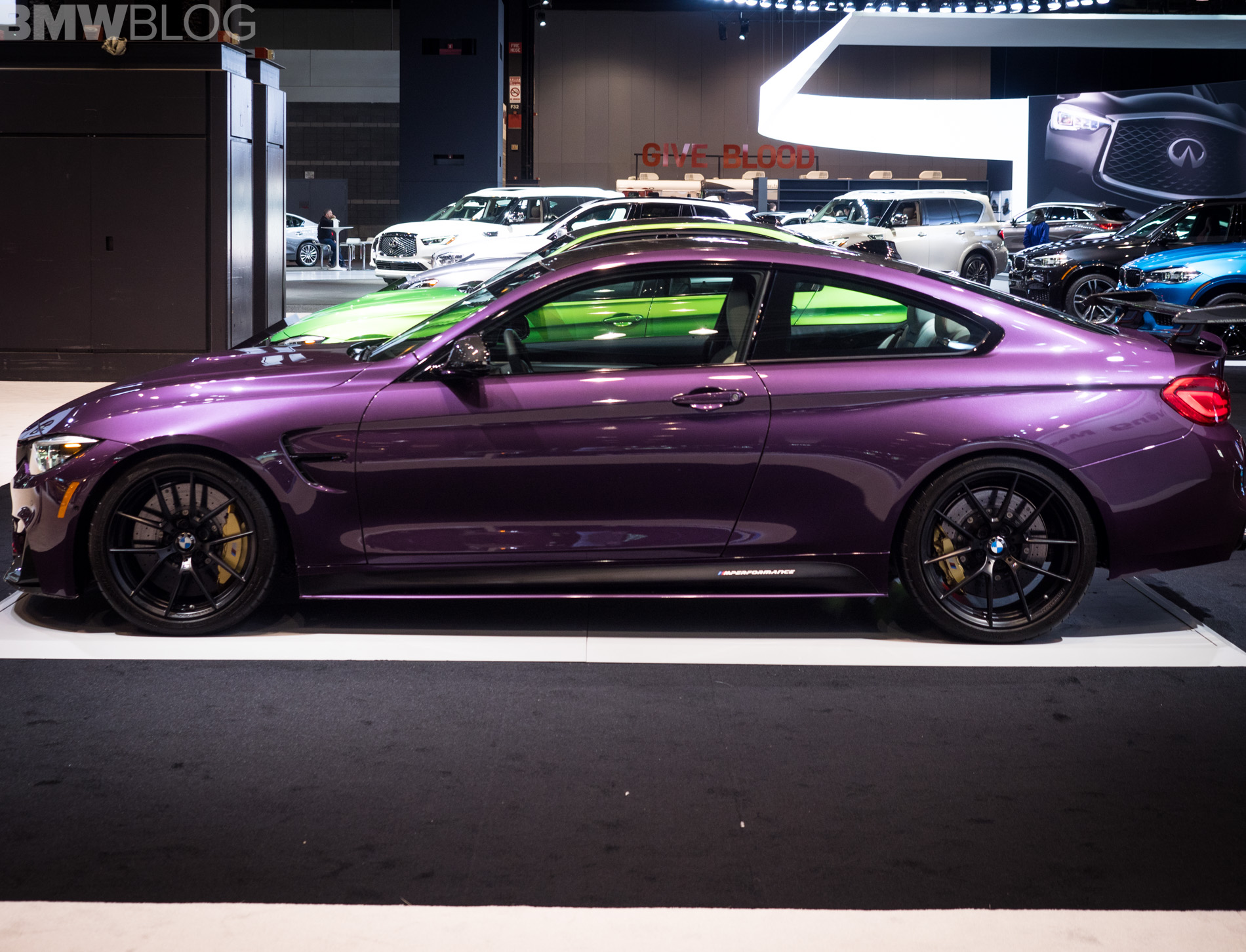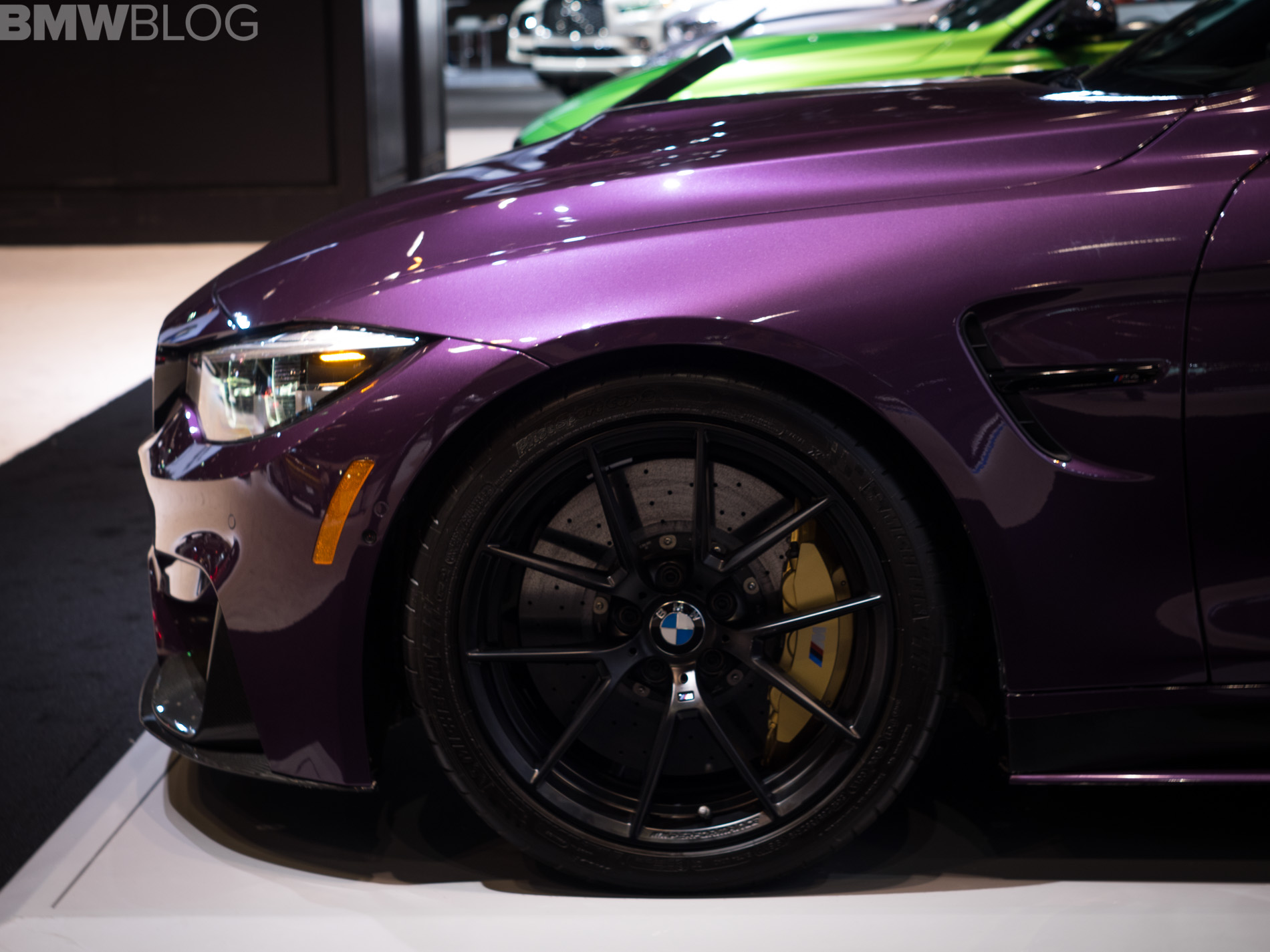 The 2018 Chicago Auto Show kicked off today and we went to visit the BMW stand for a quick photoshoot. One of the cars that stands out – pun intended – is an M4 Coupe painted in Purple Silk and decked out with nearly the entire M Performance Parts catalog.