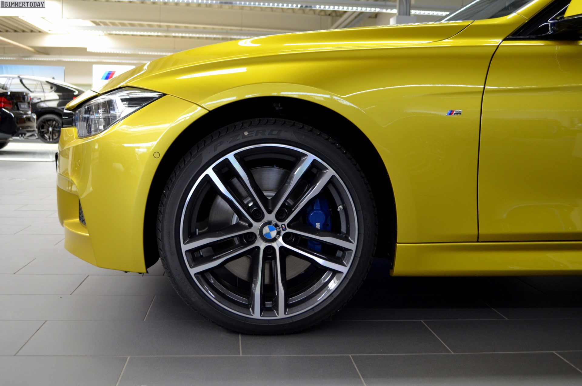 In combination with the 19-inch M light-alloy wheels double-spoke 704 M in Orbit Gray and black kidneys, the yellow colors make the rather low key touring stand out more than usual. The Shadow Line with black roof racks offer great contrast against the flashy yellow.