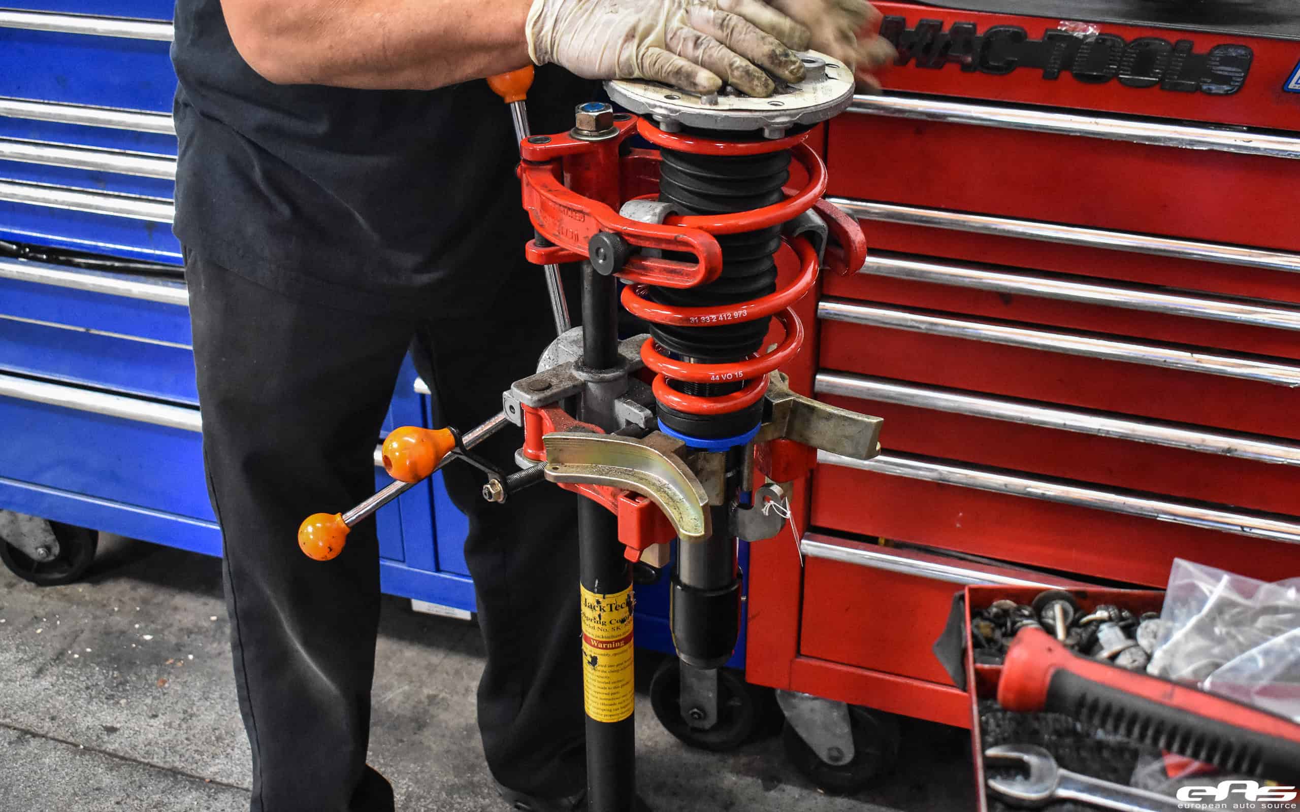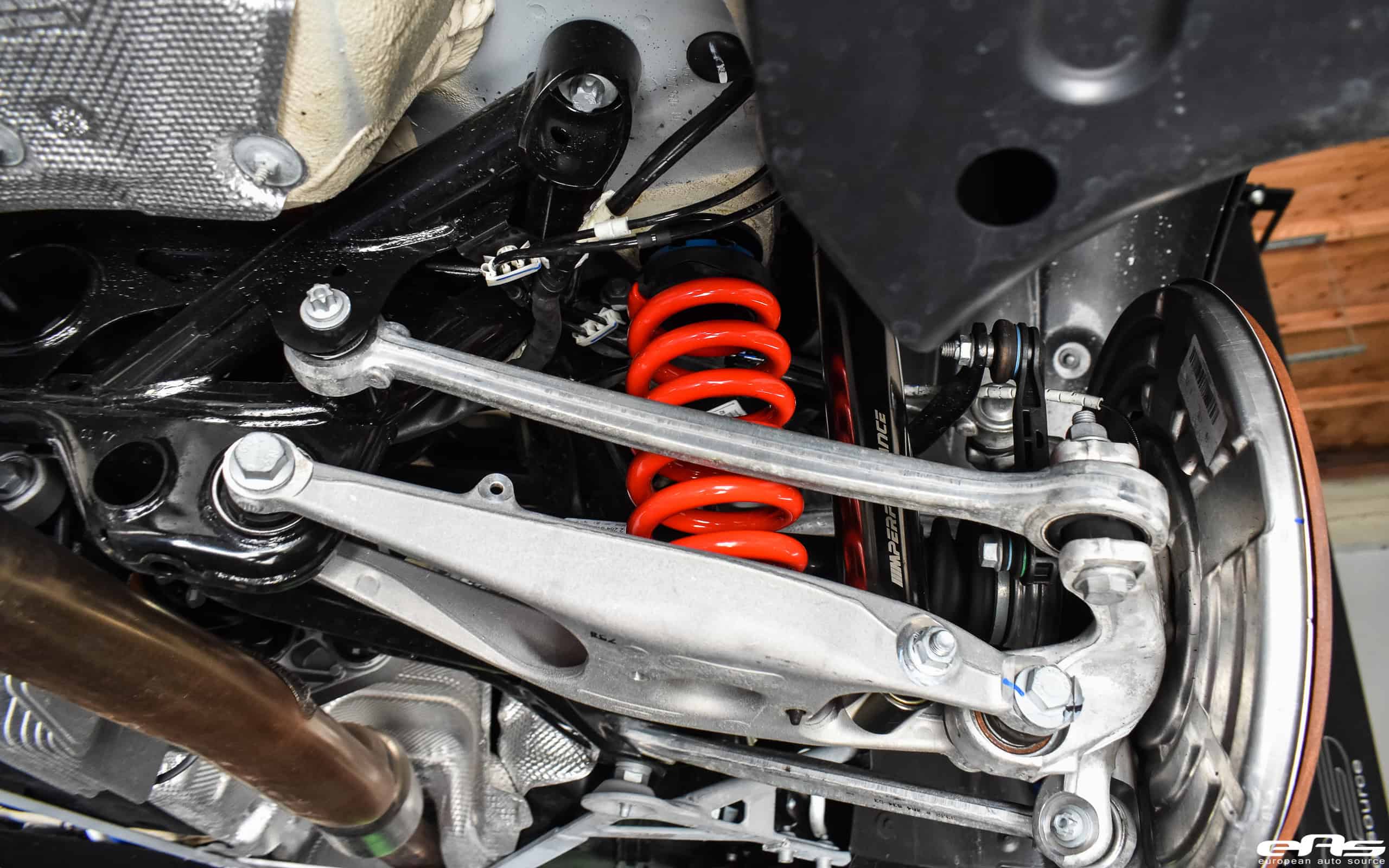 First, the technicians installed a BMW M Performance carbon fiber trunk spoiler, a gloss black marker set and a rear diffuser. While not much, the carbon fiber really sets off the exterior and gives it a motorsport-inspired theme. The cosmetic updates are joined by a BMW M Performance coilover set. For the first time ever, BMW M Performance is offering a fully height adjustable coil-over suspension system with independent bump and rebound adjustments within this package. With spring-rates that are approximately 40% stiffer than stock, you can be sure that the M Performance Coil-over Suspension system helps turn any road into your personal playground.