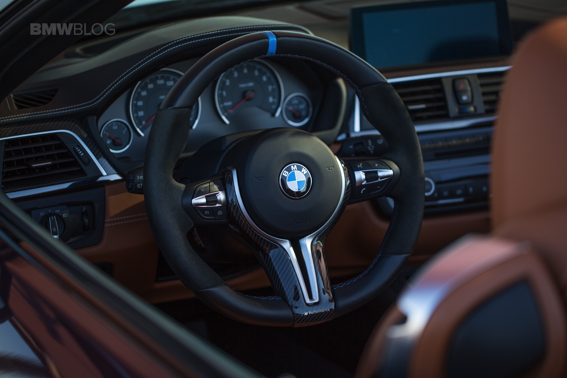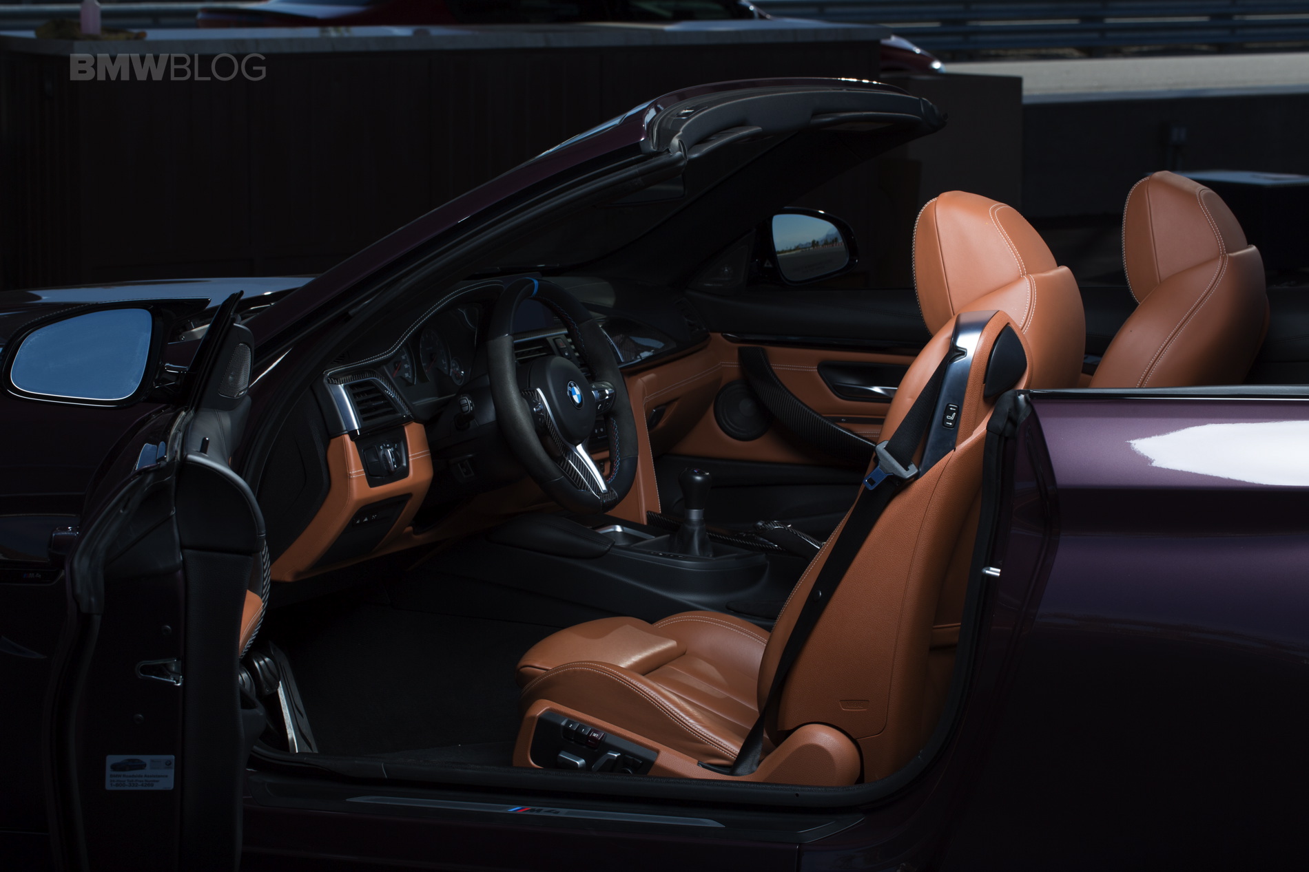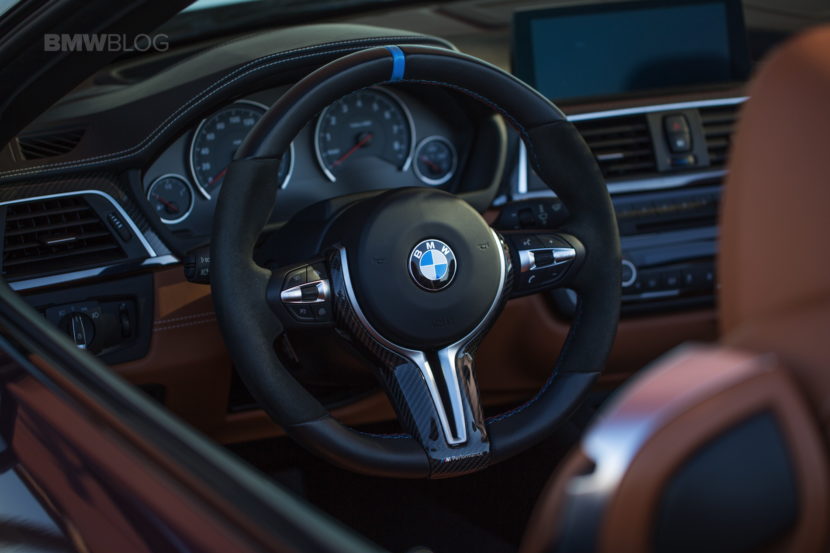 Inside, this M4 Convertible is adorned with a carbon fiber trim, paired with the M Performance Steering Wheel and a beautiful brown leather upholstery.