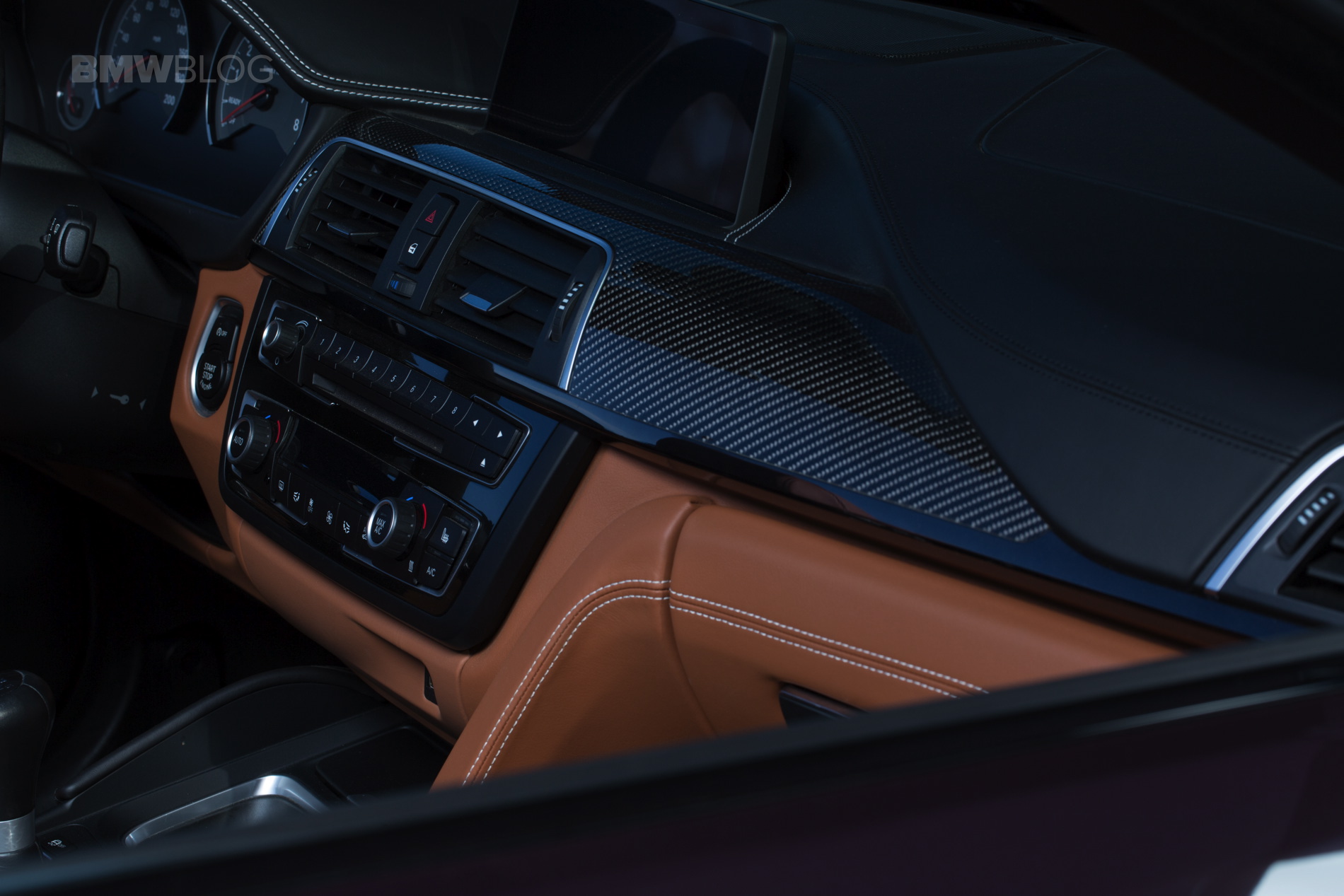 One the outside you can quickly spot the carbon fiber bits which are often used to enhance the looks of new BMWs. At the front, the carbon fiber splitter is a must on most cars, along with the cost-effective, yet visually efficient blacked out kidney grille. The carbon fiber mirror caps are present as well, while the rear diffuser houses the carbon fiber tips of the M Performance exhaust.