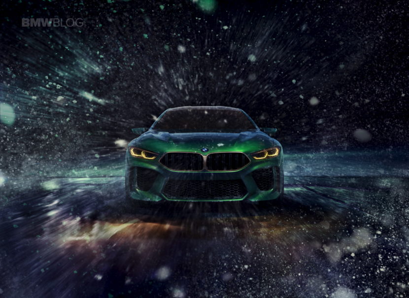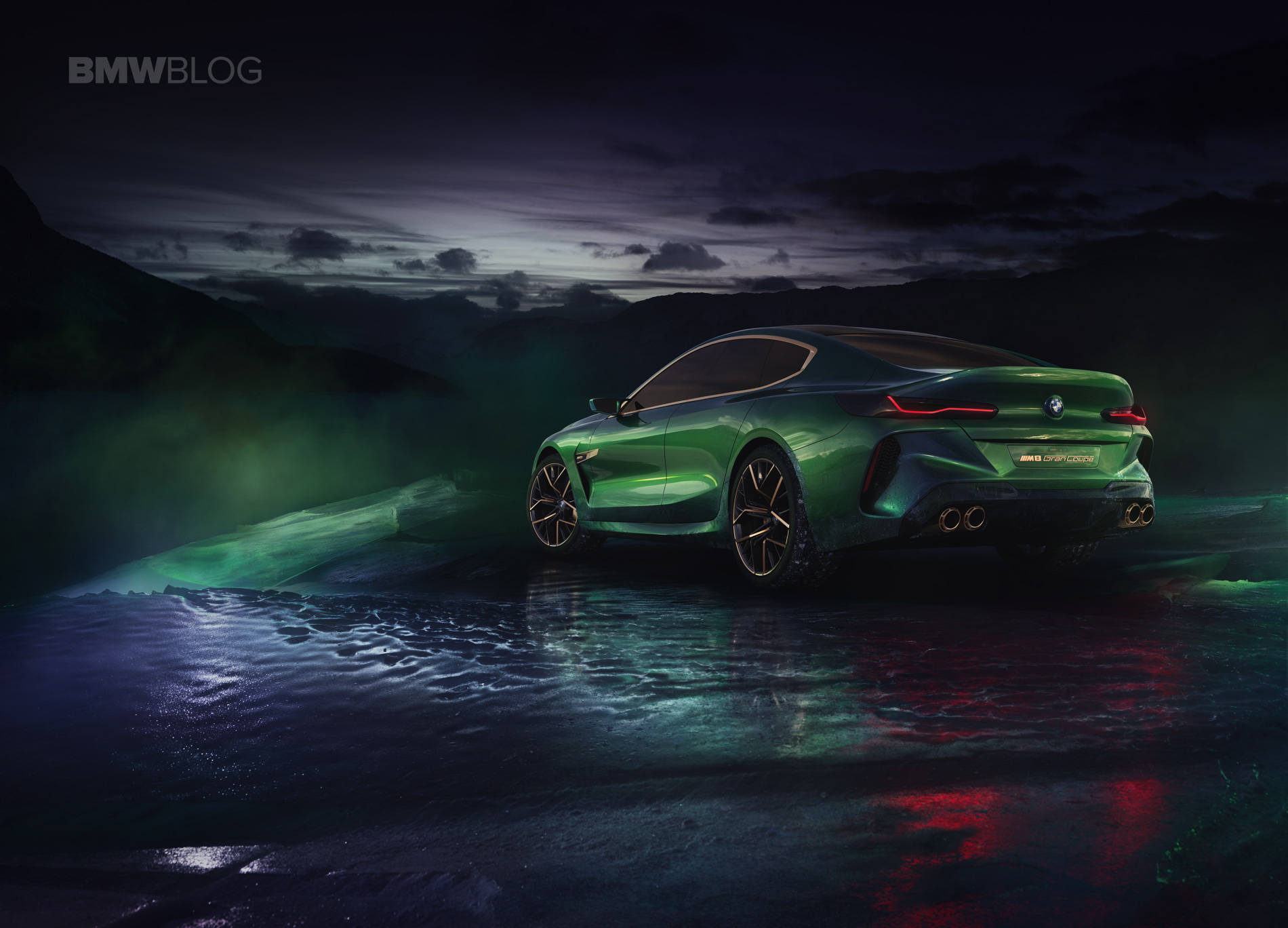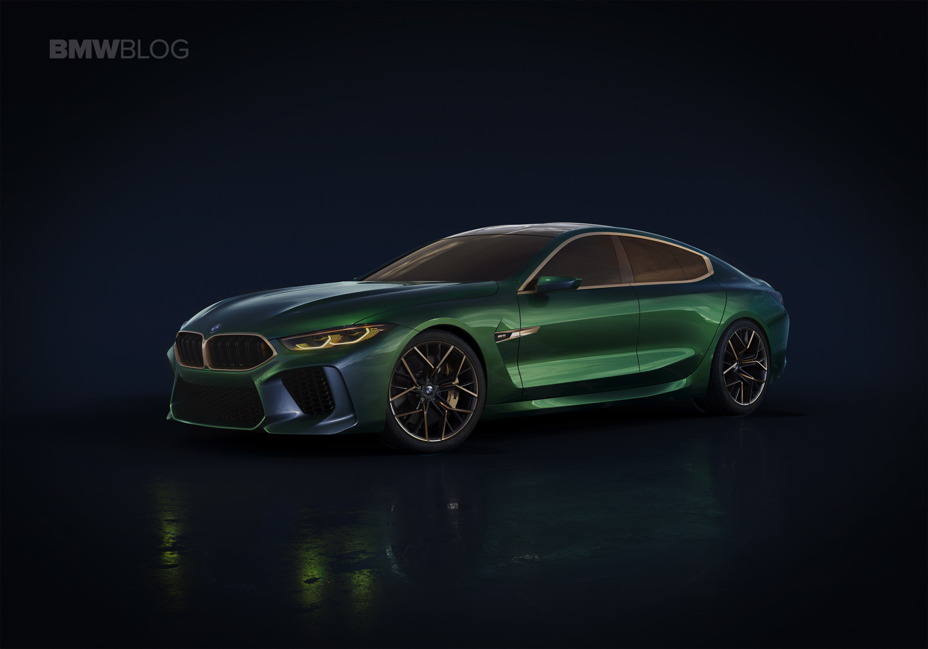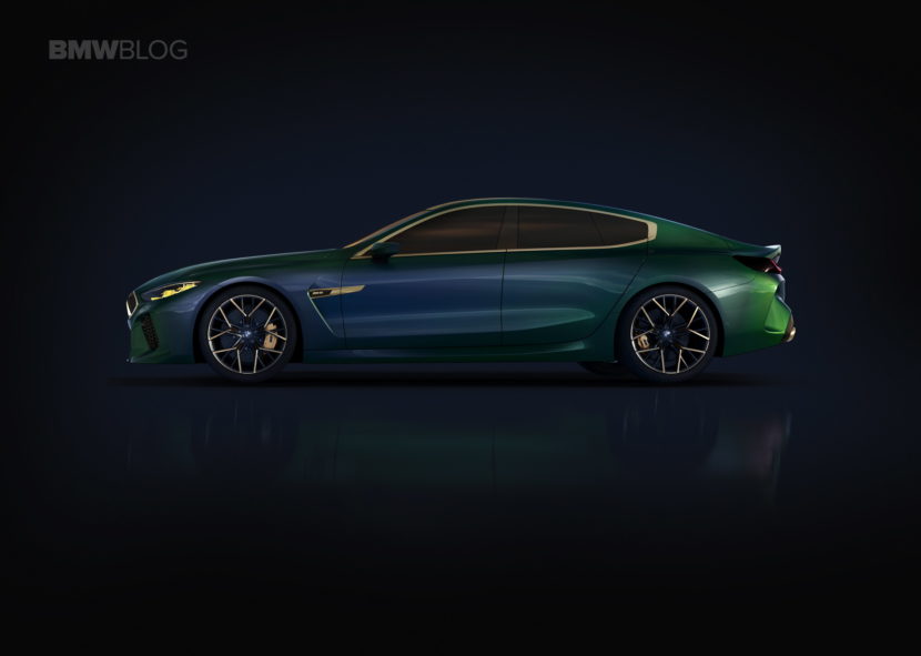 The BMW Concept M8 Gran Coupe is painted in the Salève Vert paint finish, a color that changes from green to greyish blue in different lights.