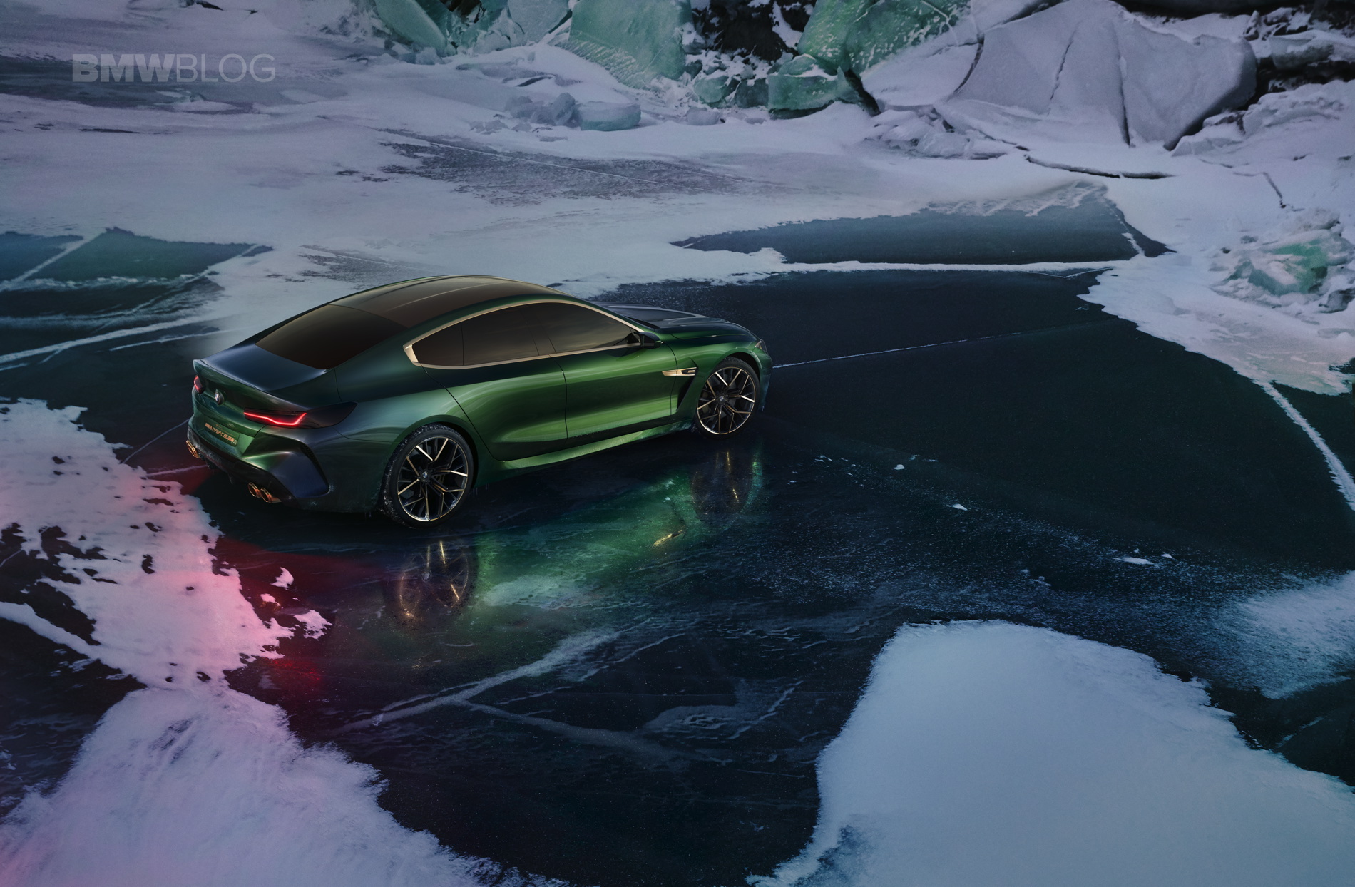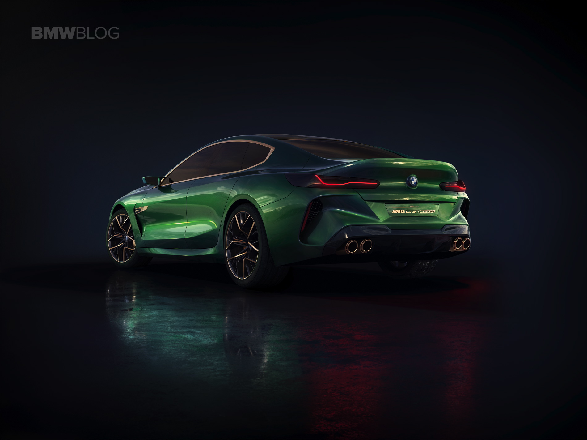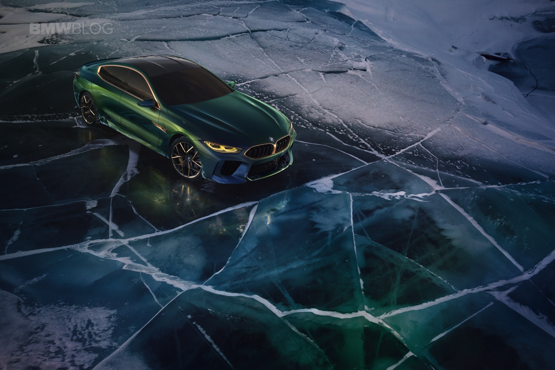 The BMW Concept M8 Gran Coupe is painted in the Salève Vert paint finish, a color that changes from green to greyish blue in different lights.