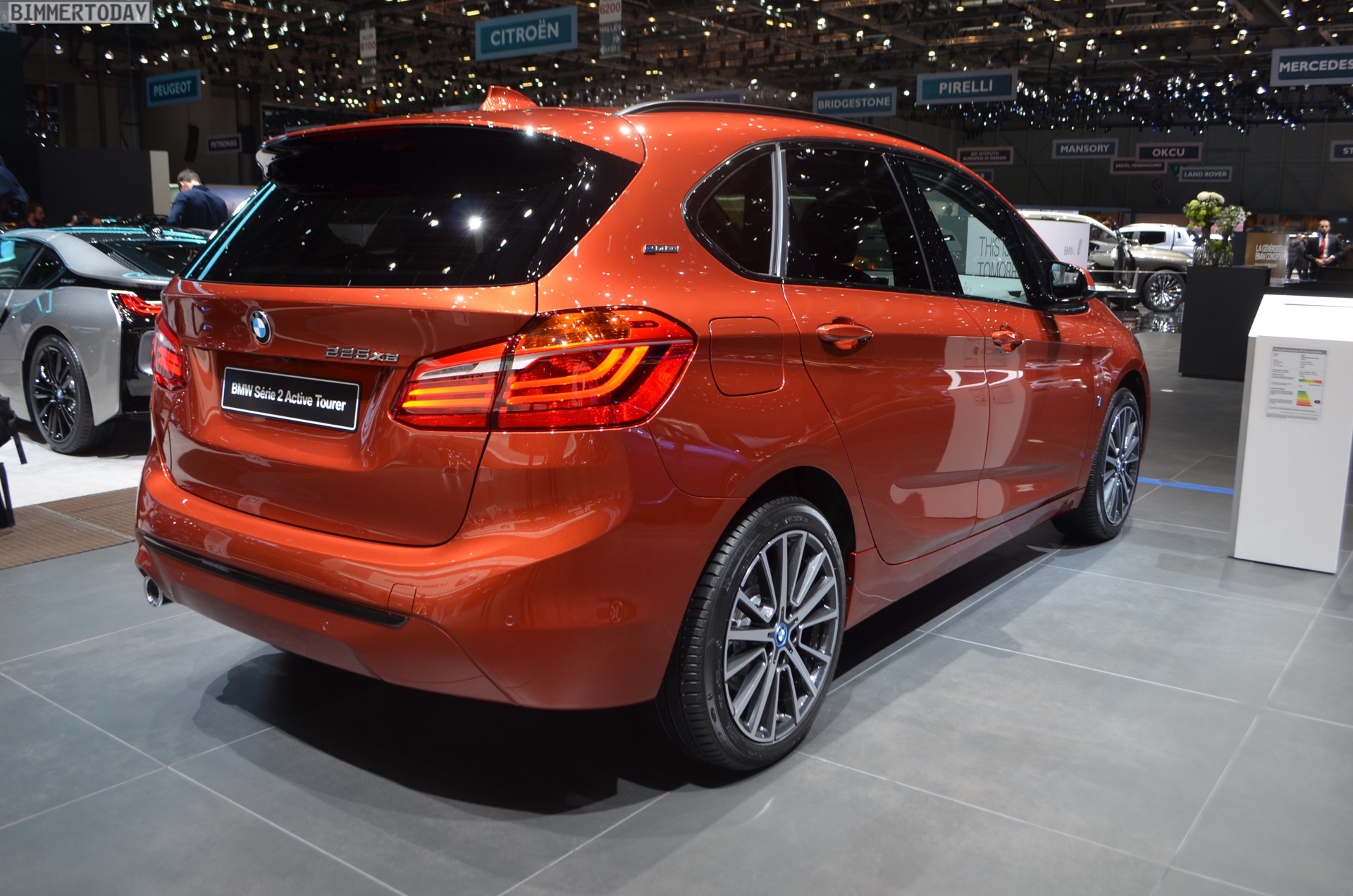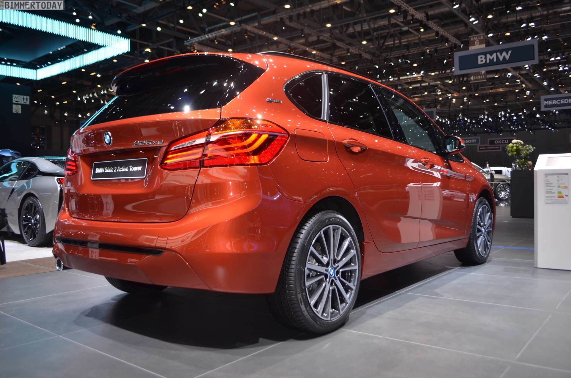 For the world premiere, the refreshed BMW 2 Series Active Tourer presents itself as a 225xe iPerformance with a plug-in hybrid drive. The Sunset Orange livery, which was added to the Active Tourer’s color program, is combined with hybrid-specific details such as the blue kidney struts and blue BMW logo on the wheels. The 18-inch alloy wheels in Style 512 are also available for all other drives.