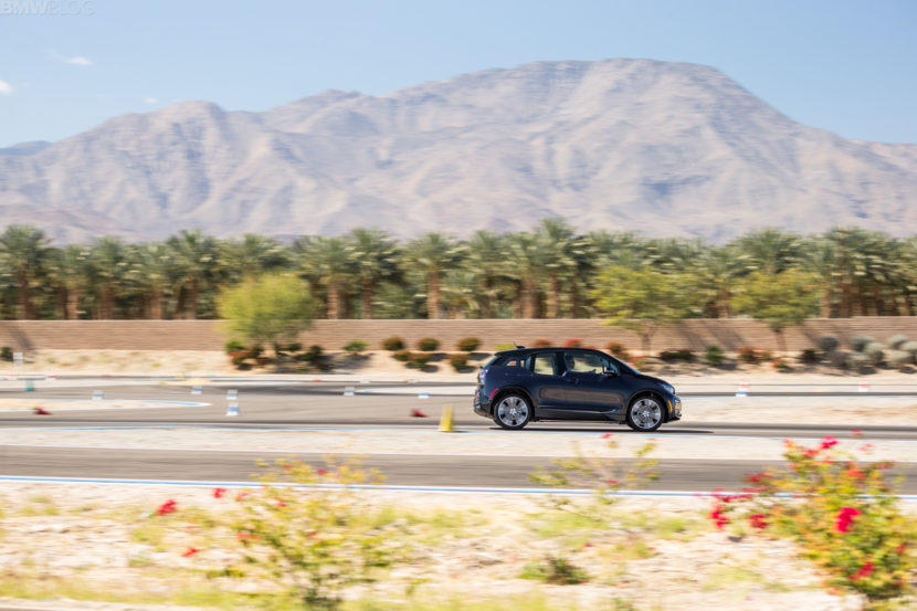 Off the line, it takes off surprisingly quick and the first corner of the course is a left hander about one second after the start line, so it was a bit unnerving how quickly it approached in the i3. I turn in for the first corner and the front end bites surprisingly well. That was followed by an almost immediate right hander and then another super quick left. I don’t know if there’s a BMW on the market that could handle that quick left, right, left better than the i3s. It’s so small, so light and so punchy that it makes such easy work of it.
