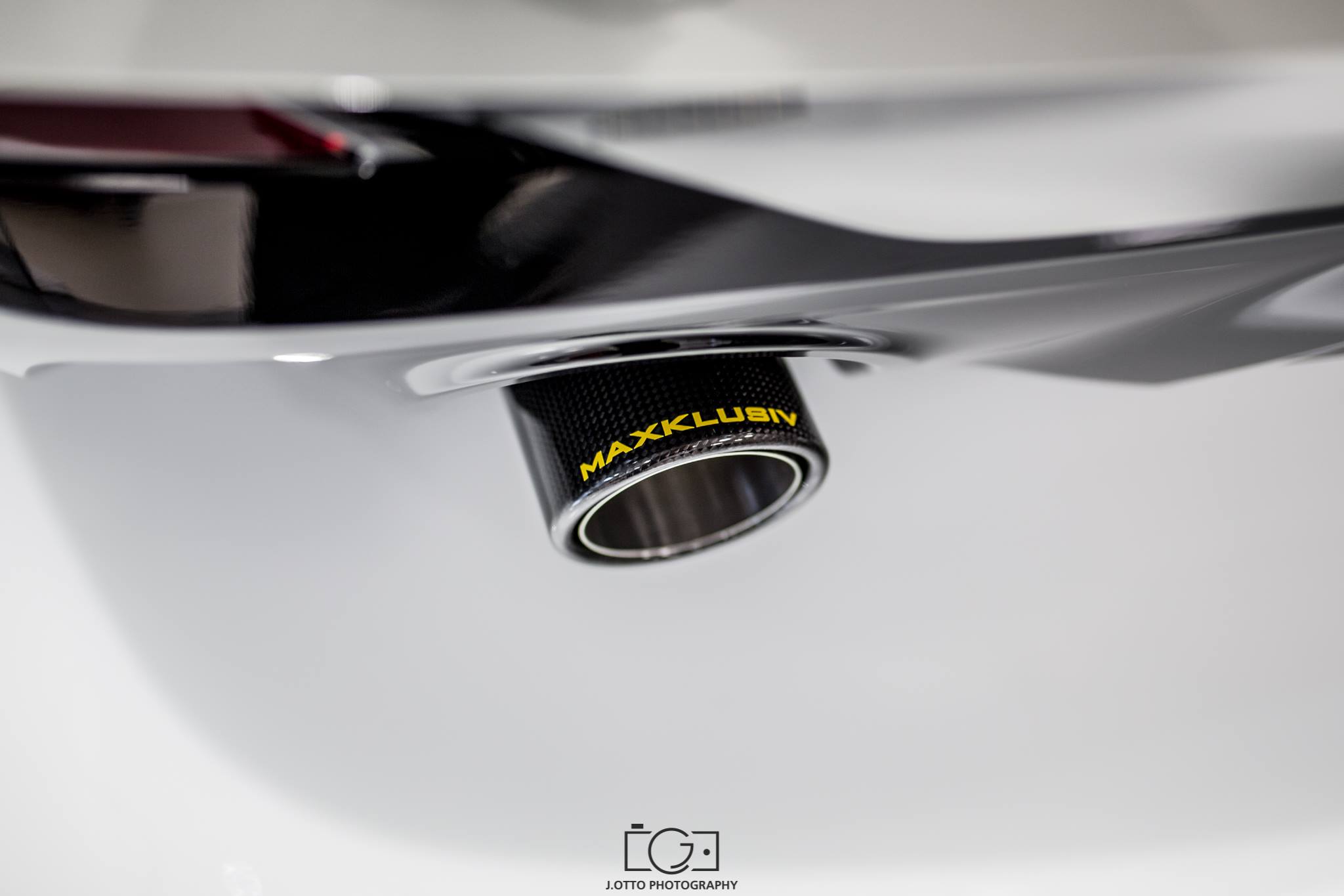 The dark shiny chrome foil is combined with a black roof, black kidneys and exterior mirrors, as well as small X2 logos on the tailgate. Carbon exhaust tips and various minor paint jobs complete the BMW X2 tuning from Maxklusiv.