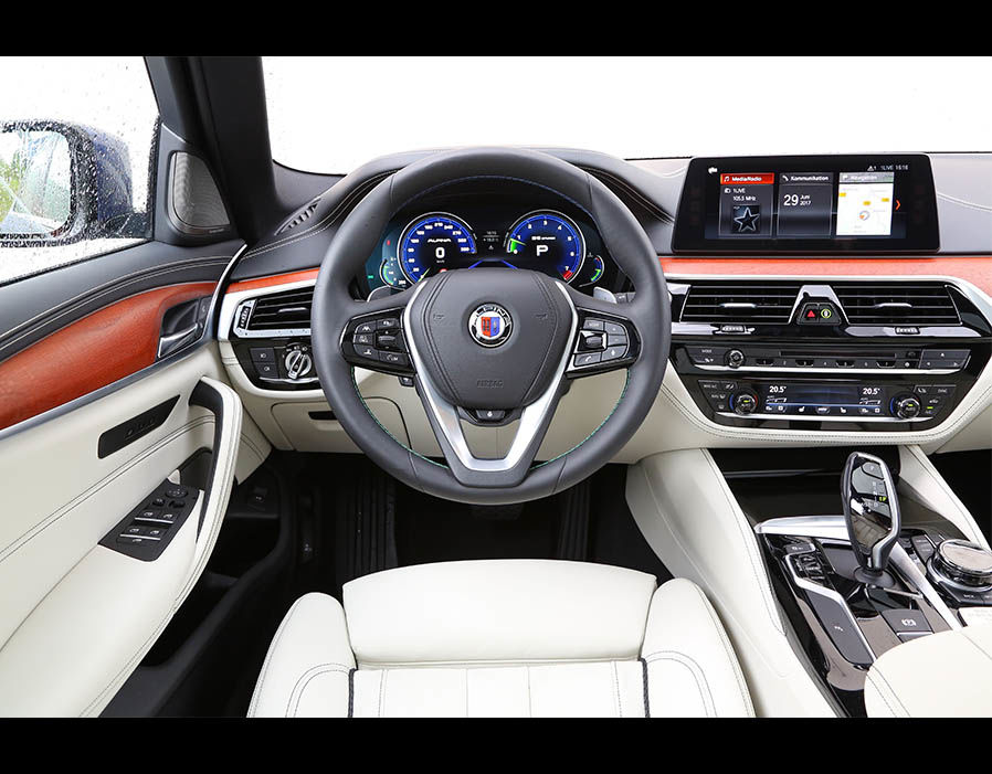 ALPINA’s refinements continue inside the cabin, with Nappa leather throughout and blue ambient lights. There’s also a range of customizable trim colors and wood finishes for those looking for a more personalized cabin.