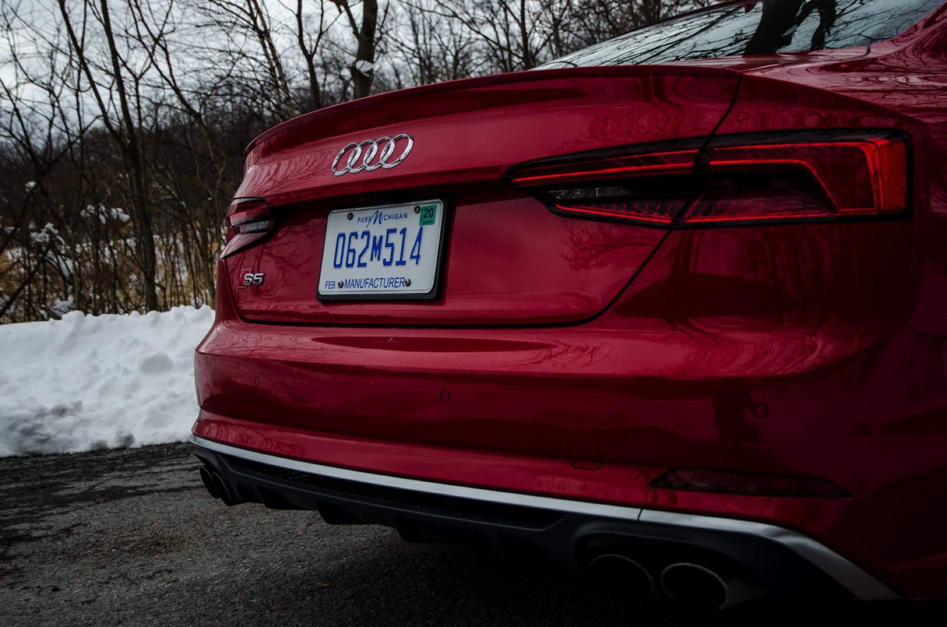 The best part, though, comes when you press that red-rimmed aluminum starter button on the console. Press that and the 3.0 liter turbocharged V6 snorts to life, as the digital tachometer does its little dance. It’s dramatic and exciting, making it feel like an event each and every time. There’s a bark from the exhaust when it starts, letting you and everyone else around you know that the S5 has some grunt. It would also sound great in a garage every morning.