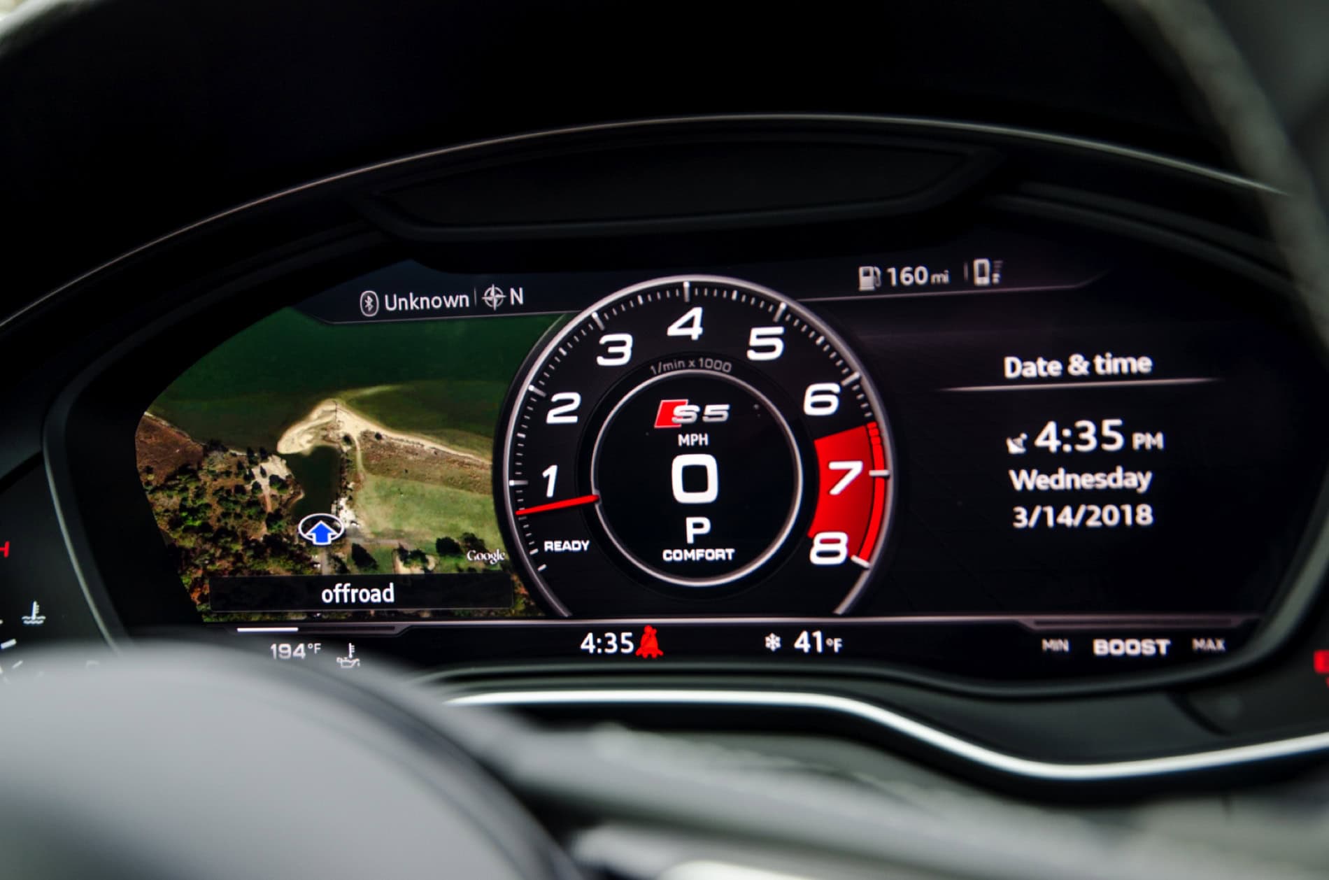 That goes for the inside, as well. Audi has been making some top-notch cabins as of late and the Audi S5’s is one of the best. Sure, it’s basically exactly the same as the one you’d find in an Audi S4 but that’s not really a bad thing. It just looks so exciting, from the diamond-stitched seats to the flat-bottomed steering wheel to the carbon fiber trim. It all looks incredibly sporty and makes you feel like you’re in something special, not just your average sporty coupe. The slick-looking MMI screen and the simply awesome Virtual Cockpit don’t hurt, either.
