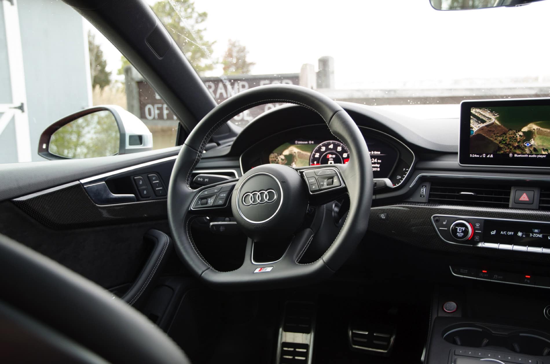 What Audi absolutely nails in the S5, though, are touch points. Not only do the seats look great but they feel fantastic and were completely comfortable over several hours of driving. I’m also a huge fan of Audi’s flat-bottomed steering wheel in the S5; it’s thin and covered in rich leather, making it great to hold. One oddity about the steering wheel is that you can’t have the flat-bottomed wheel heated, only the round one. A feature that would have been nice in the 20-degree weather.