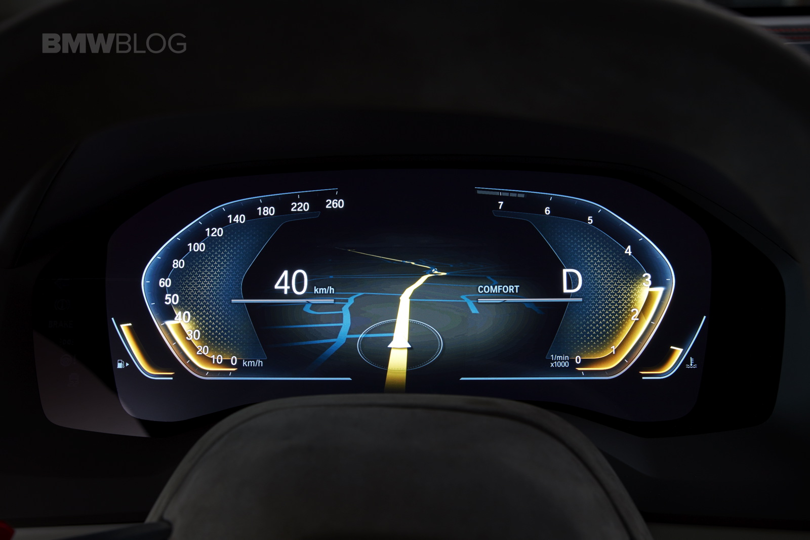 In this new digital instrument panel, there are two digital “gauges” that sort of replicate the traditional dials of a current BMW. On the left is its speedometer and on the right are its revs. Except they’re not digital dials with needles, like you’ll find in a current BMW. Instead, bars fill the outside perimeter of the dials as both speed and revs increase. There will also be a digital speed readout in the center of the speedometer.