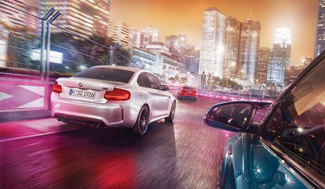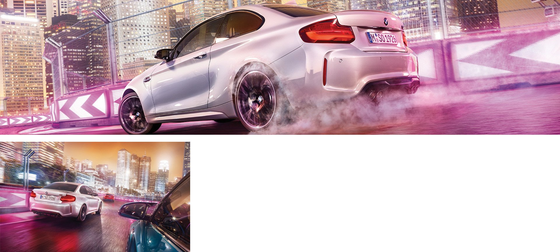 While these photos look more like marketing photos for a Need For Speed video game than official BMW photos, we’re hearing that they’re legitimate. So too, we hear, is the information about the BMW M2 Competition. In these very colorful photos, we can see that the M2 gets a suite of new visual upgrades. On the outside, it gets new, more angular kidney grilles, some vents in the lower front lip, side mirrors from a BMW M4, all-new, much larger wheels and black badges throughout. Two wheels will be available: 437M and 788M.