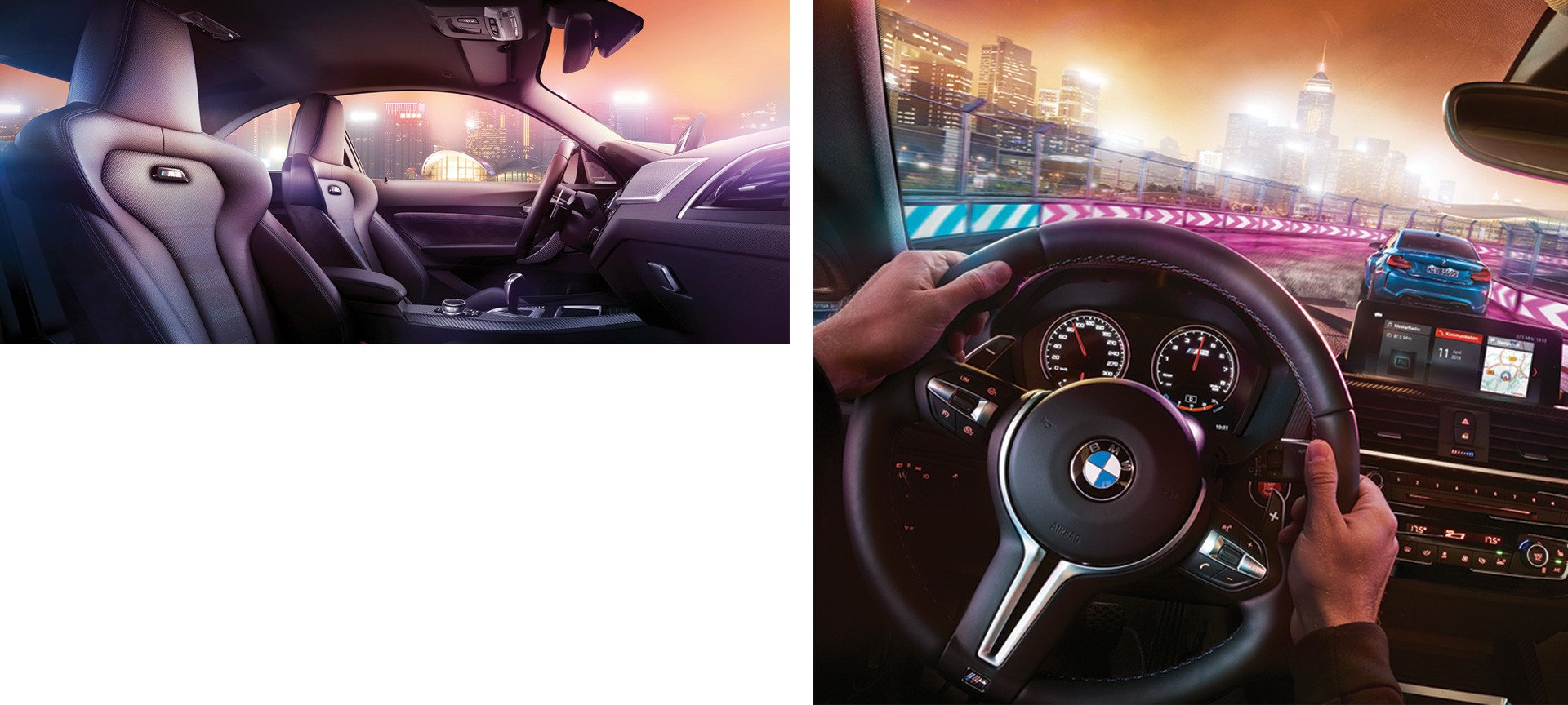 On the inside, it gets the seats from a BMW M4, a red starter button and “M1 and M2” buttons, which indicate configurable drive settings, like on all of its bigger M siblings. Basically, this looks like a BMW M2 — M4 Edition.