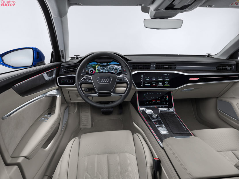 On the inside, it’s very typical of a modern Audi, so it’s very love-it-or-hate-it. It’s modern and simplistic yet very luxurious. We recently spent some time in the Audi A6 and it’s very, very nice on the inside. Build quality is superb, off the charts, really. I also really like the new touchscreen infotainment system, which works very well. Though, we only sampled it while sitting still on the NY Auto Show floor. We’ll have to actually test the car to determine how well it works on the move.