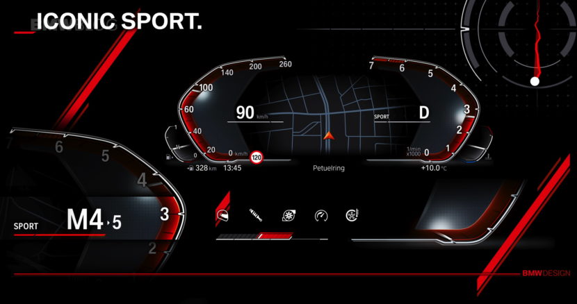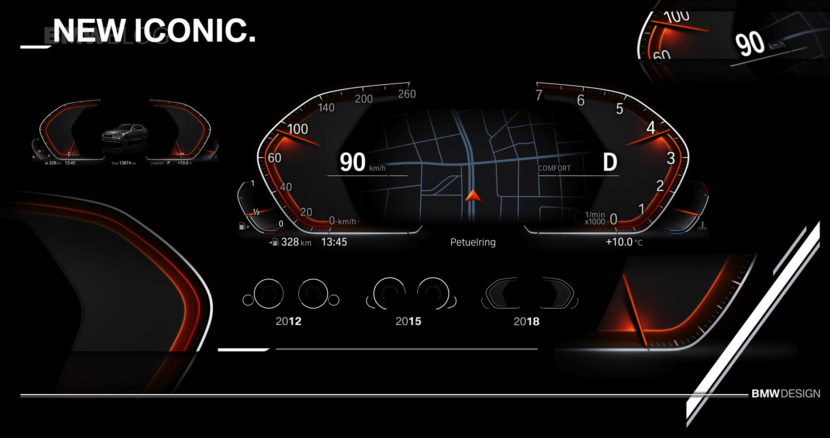 A fundamental change in iDrive 7.0 is the presentation of the navigation map in the information display between speed and speedometer. The future 12.3-inch display in the middle of the dashboard can also be configured more freely than ever before. All displays will change color and type of presentation depending on the driving mode.