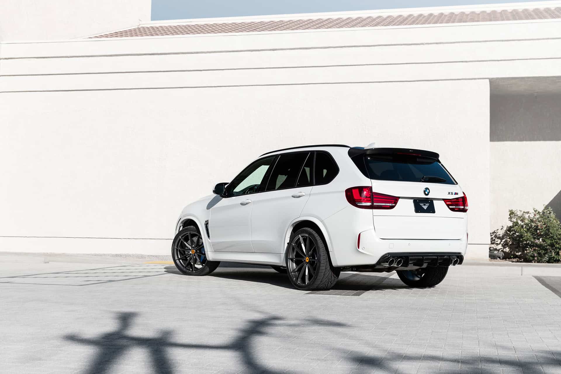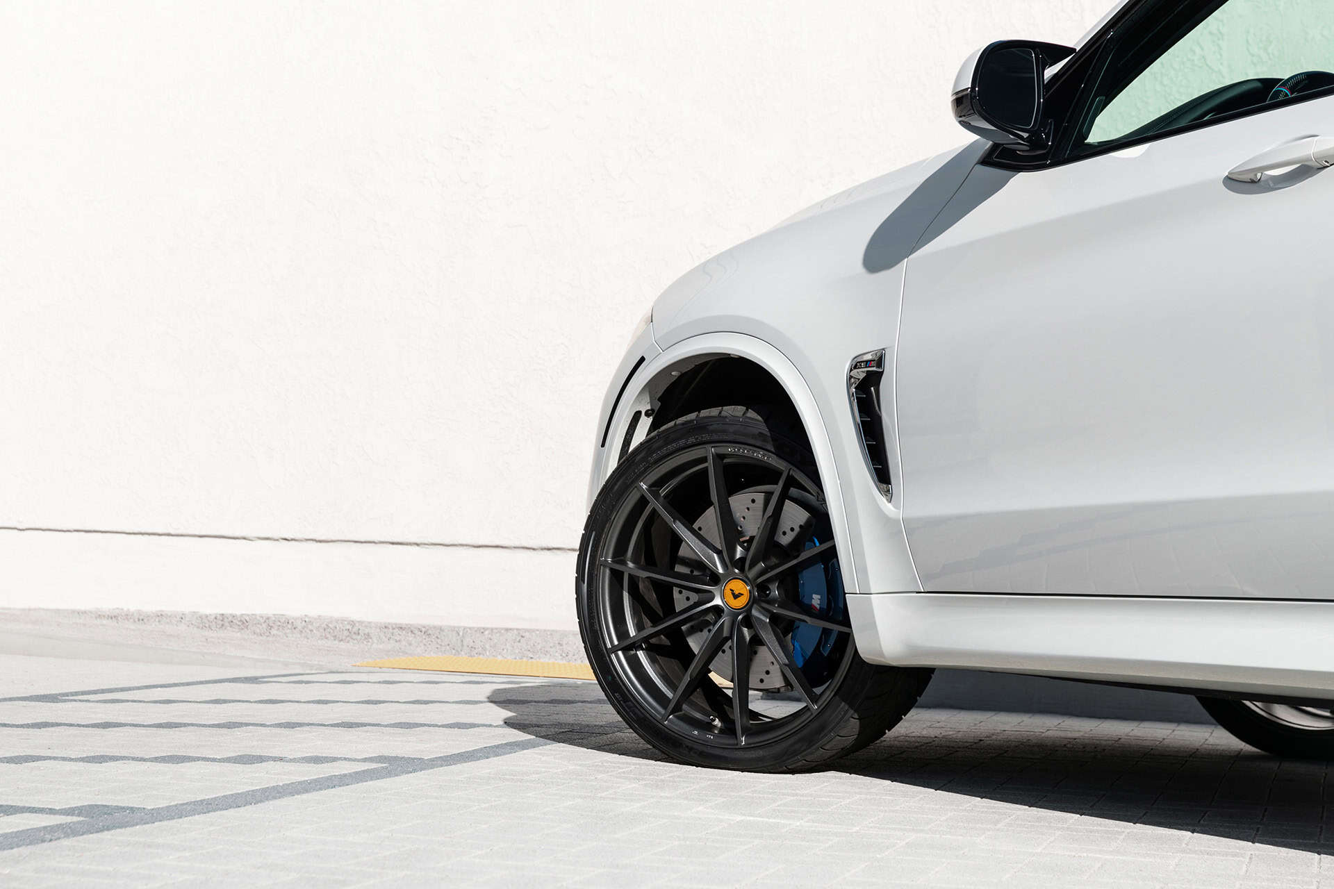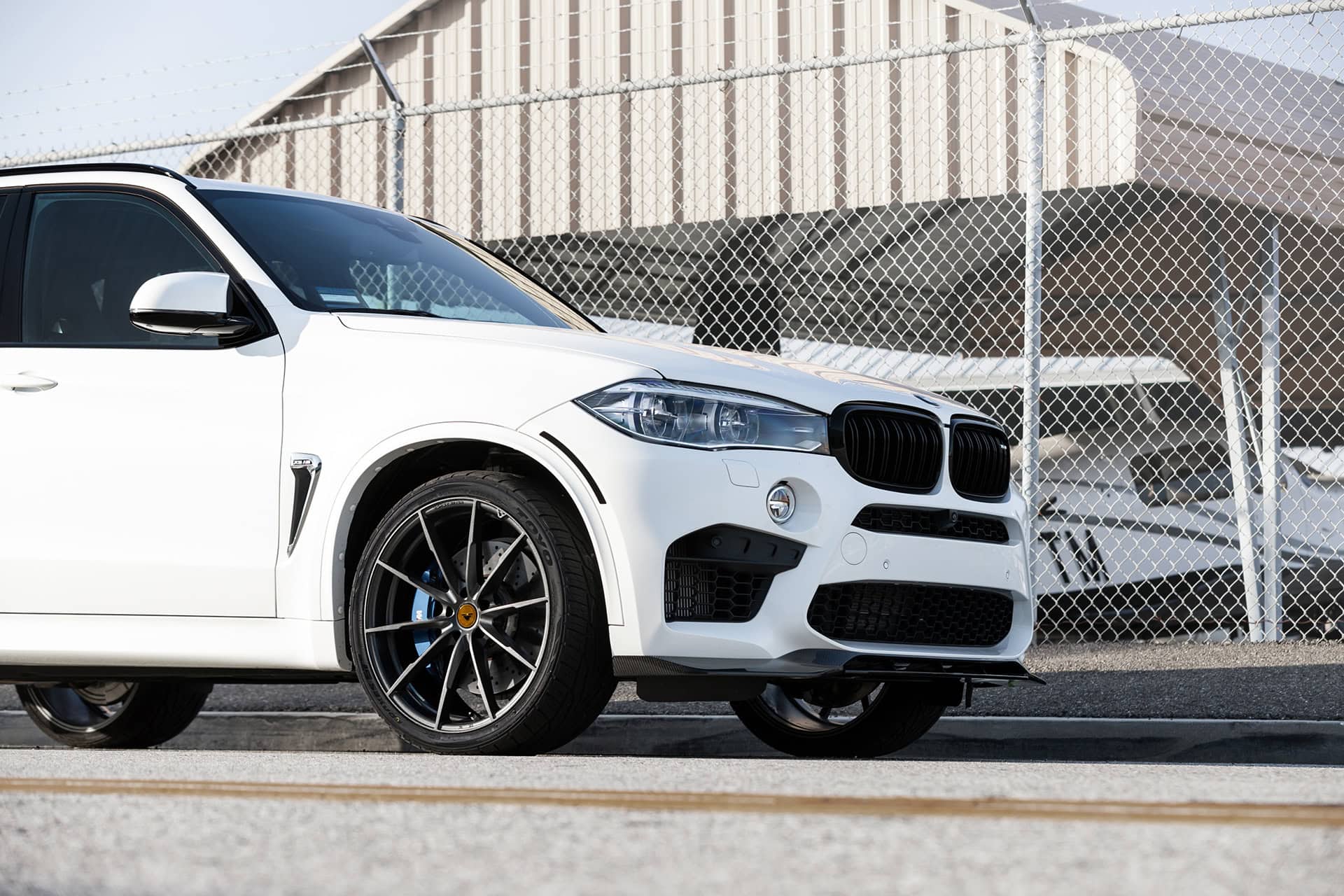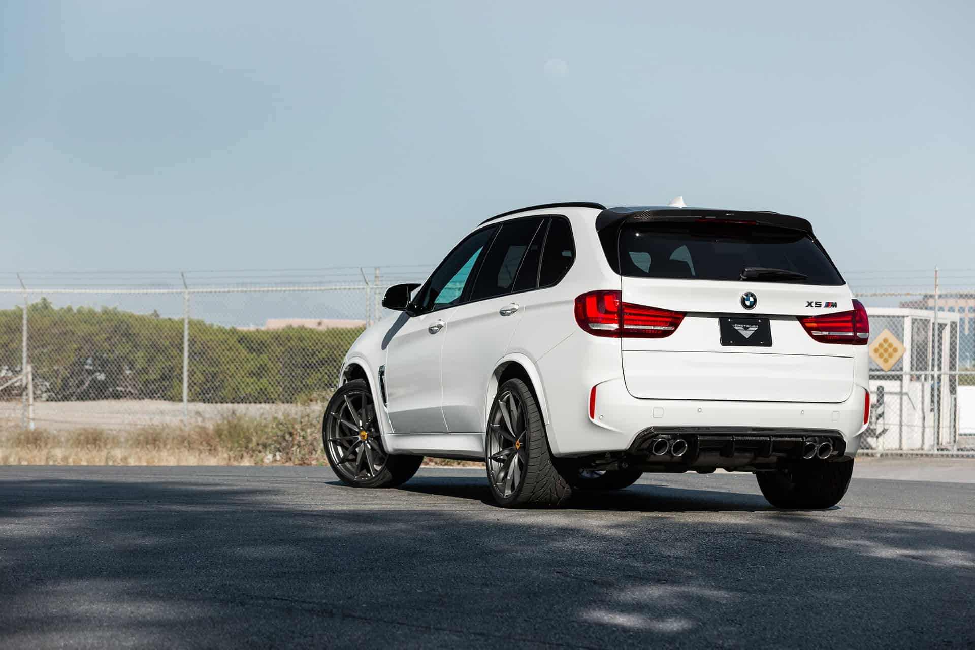 Additionally, this Alpine White BMW X5 M is equipped with a set of Vorsteiner V-FF109 flow forged wheels. These lightweight wheels are sized 22×10 and 22×11 in the front and rear, respectively. The wheels feature a Carbon Graphite finish, giving the entire wheel setup a nice contrasting touch against the Alpine White exterior of the vehicle itself. The wheels come with Toyo Proxes ST tires, sized 295/30/22 in the front and 335/30/22 in the rear.