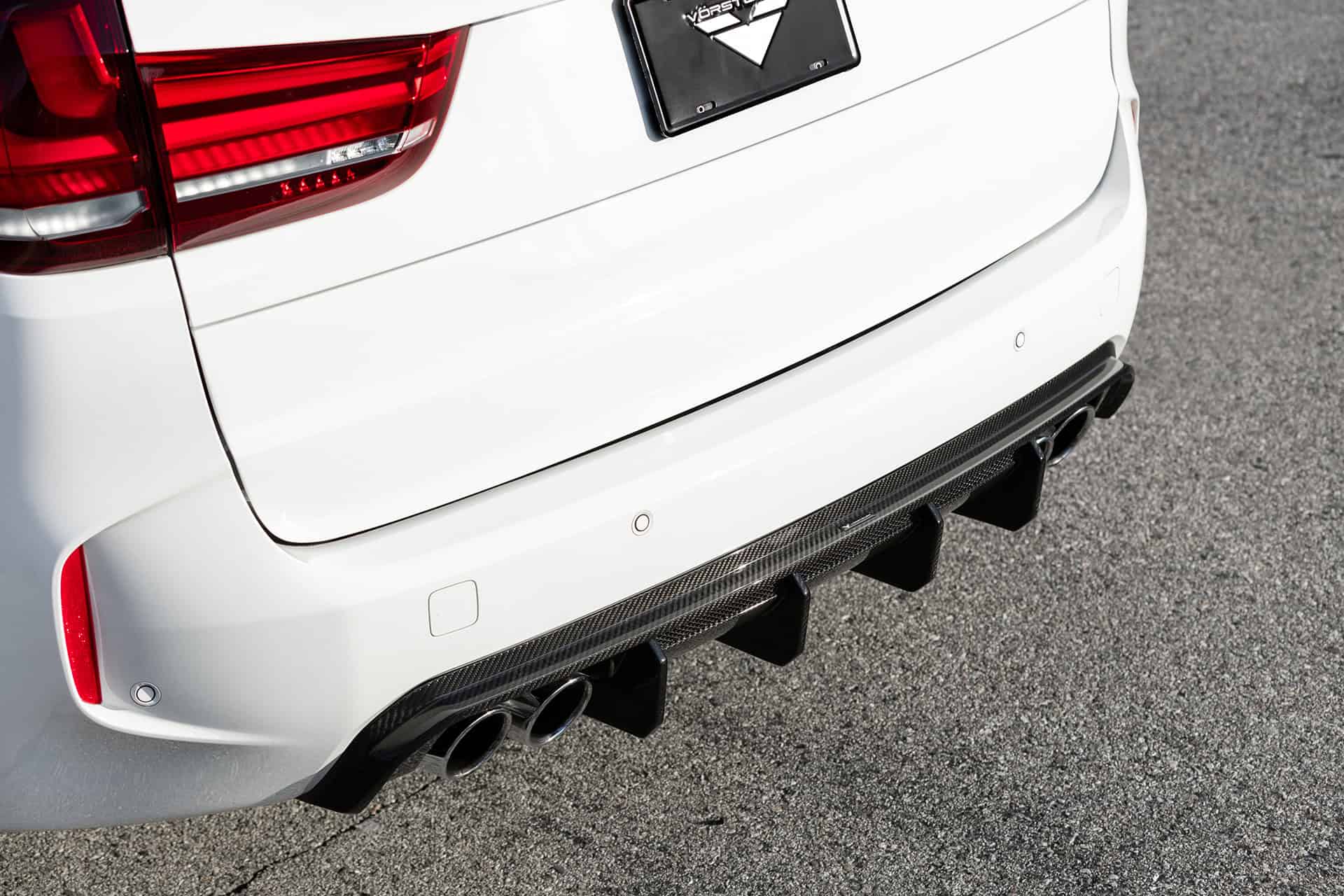 The Vorsteiner VRS aero program consists of a carbon fiber front spoiler with a splitter, a rear diffuser, and a rear decklid spoiler. All these parts are built from high-quality pre-preg carbon fiber, giving Vorsteiner parts superior stiffness and lightweight, a perfect trait for any part headed for a high-performance platform like the BMW X5 M. As you will see from the media gallery below, the parts seemingly offer perfect fitment and don’t go over the top in any part of its design.