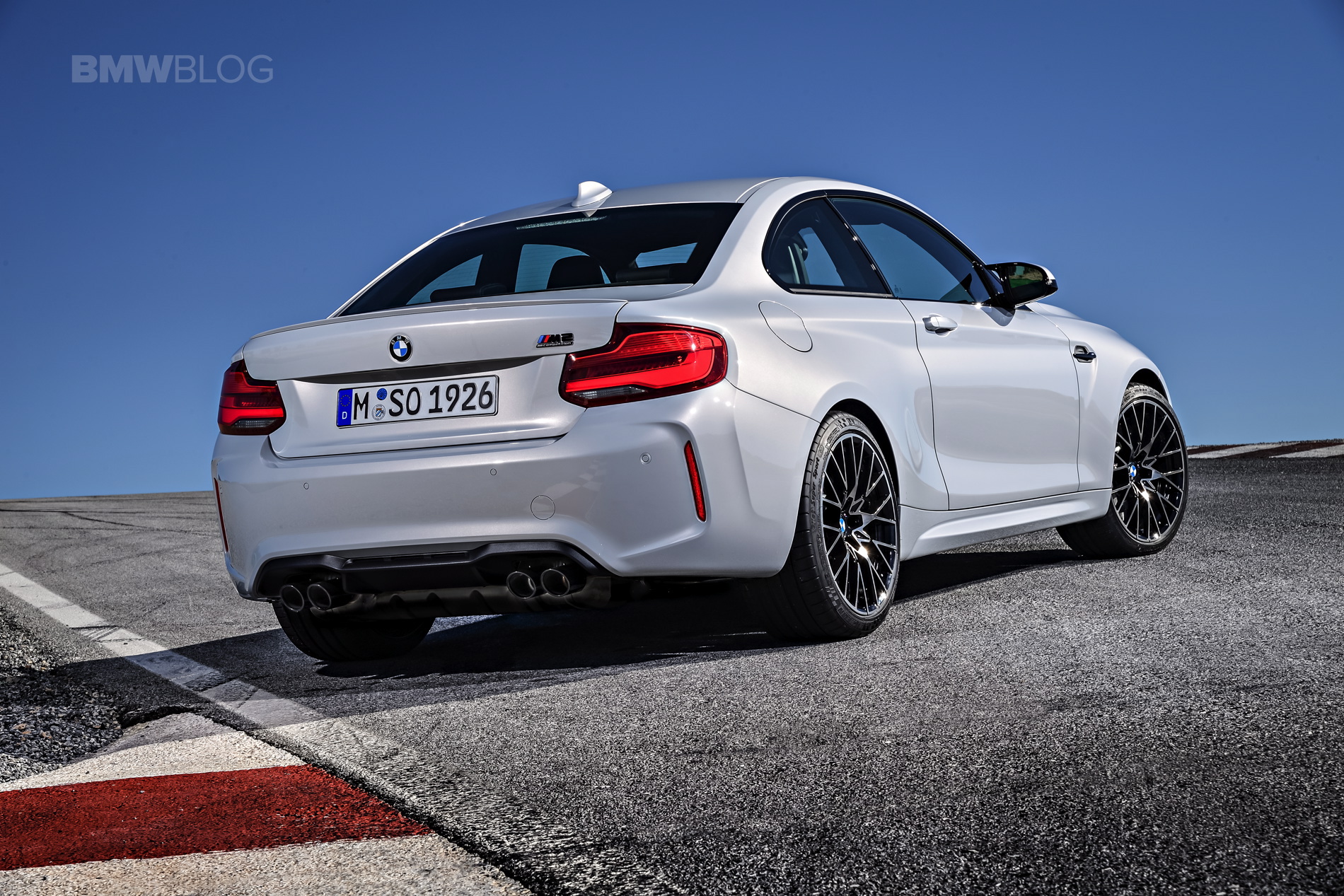 The visual upgrades of the BMW M2 Competition start with new monoblock kidney grilles, which are slightly larger and sharper-edged. These new grilles are not only more aggressive looking but they’re more functional, as they provide more airflow to help keep things nice and chilly. They are finished in Shadowline Gloss Black, as well are all the badges, much like the M4 Competition Package, making it seem more menacing. A new color is also available, Hockenheim Silver Metallic, along with Sunset Orange, which was previously available on other BMWs but new to the M2.