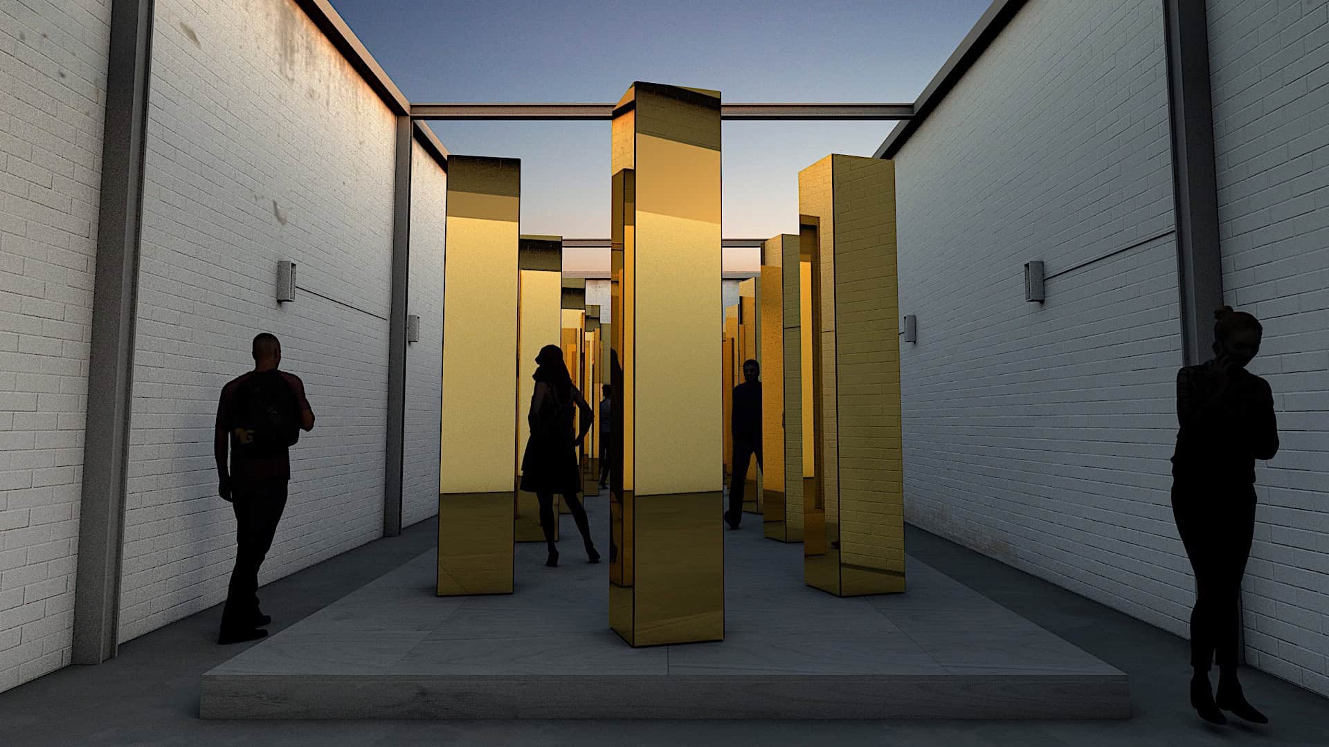UVA aims to stir the visitor, moving through this installation, to a highly emotional and visceral reaction while alluding to deeper influences between people and the cities they live in. The polished reflective surface of each column magnifies the movement of neighboring columns and recruits the surrounding environment – the sun, sky, and Greenpoint’s industrial setting – into the experience of the piece.