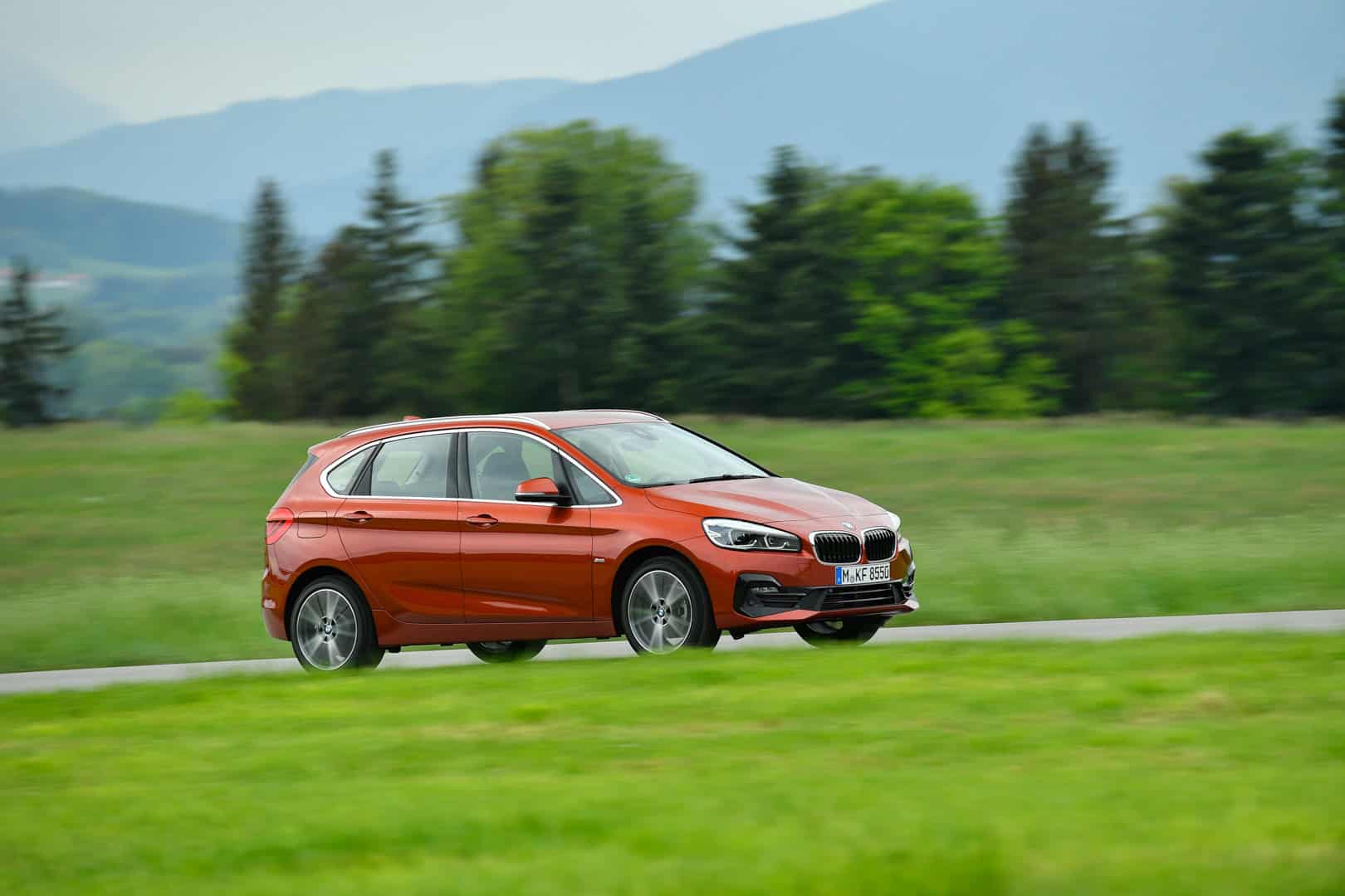 In March, the BMW 2 Series Active Tourer and the Gran Tourer both received a facelift to ensure that the success of these models is also continued during the second half of their life cycle. The model update is evident through an overall sportier-looking front end with wide kidney grille and more pronounced grille bars, larger air ducts and a new internal headlight technology with hexagonal LED daytime running light design. At the rear, larger tailpipes and a slightly modified apron are intended to convey greater dynamics, whilst the new exterior colors Sunset Orange and Jucaro Beige combined with a new wheel design provide the car with a fresh appearance from almost any perspective.