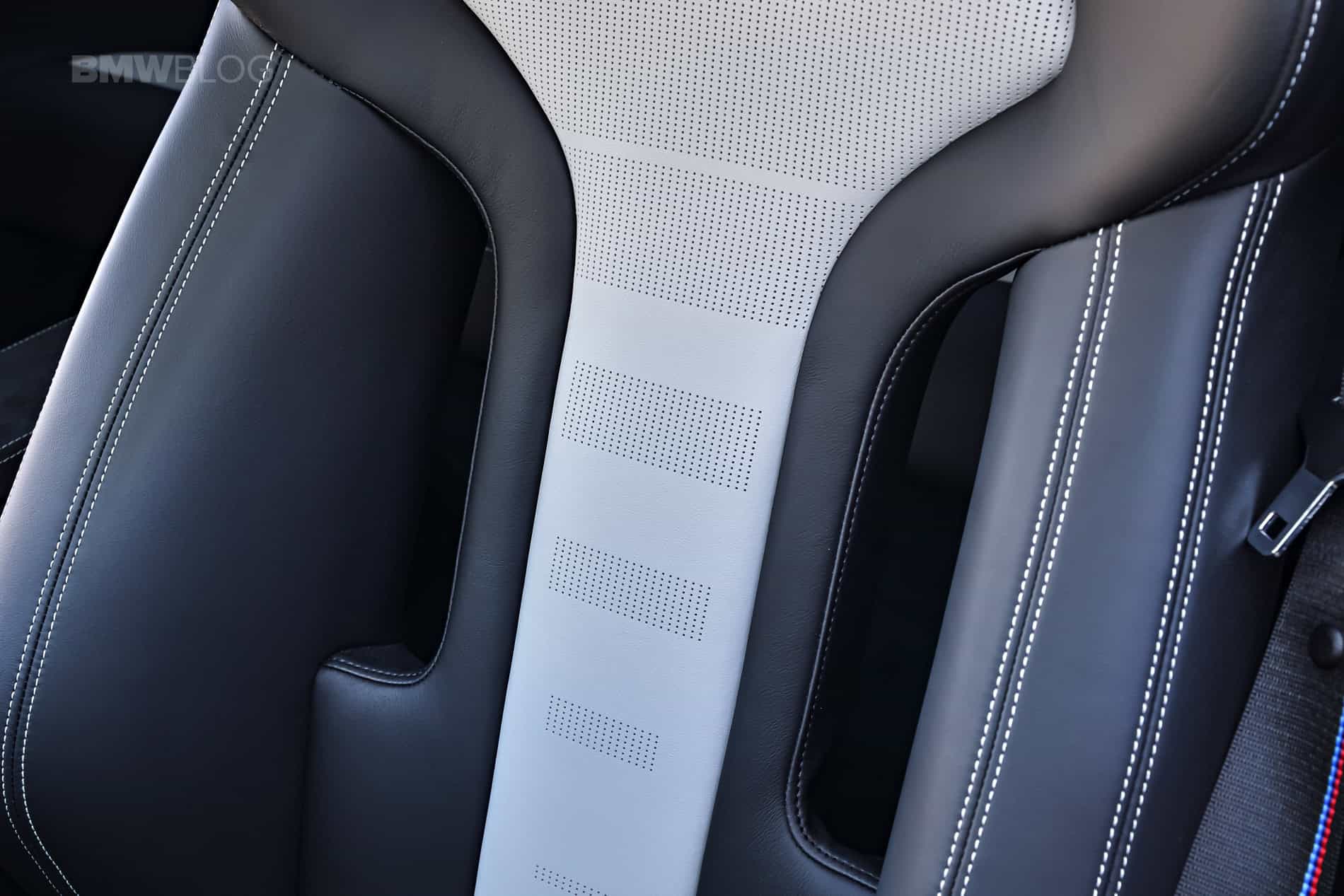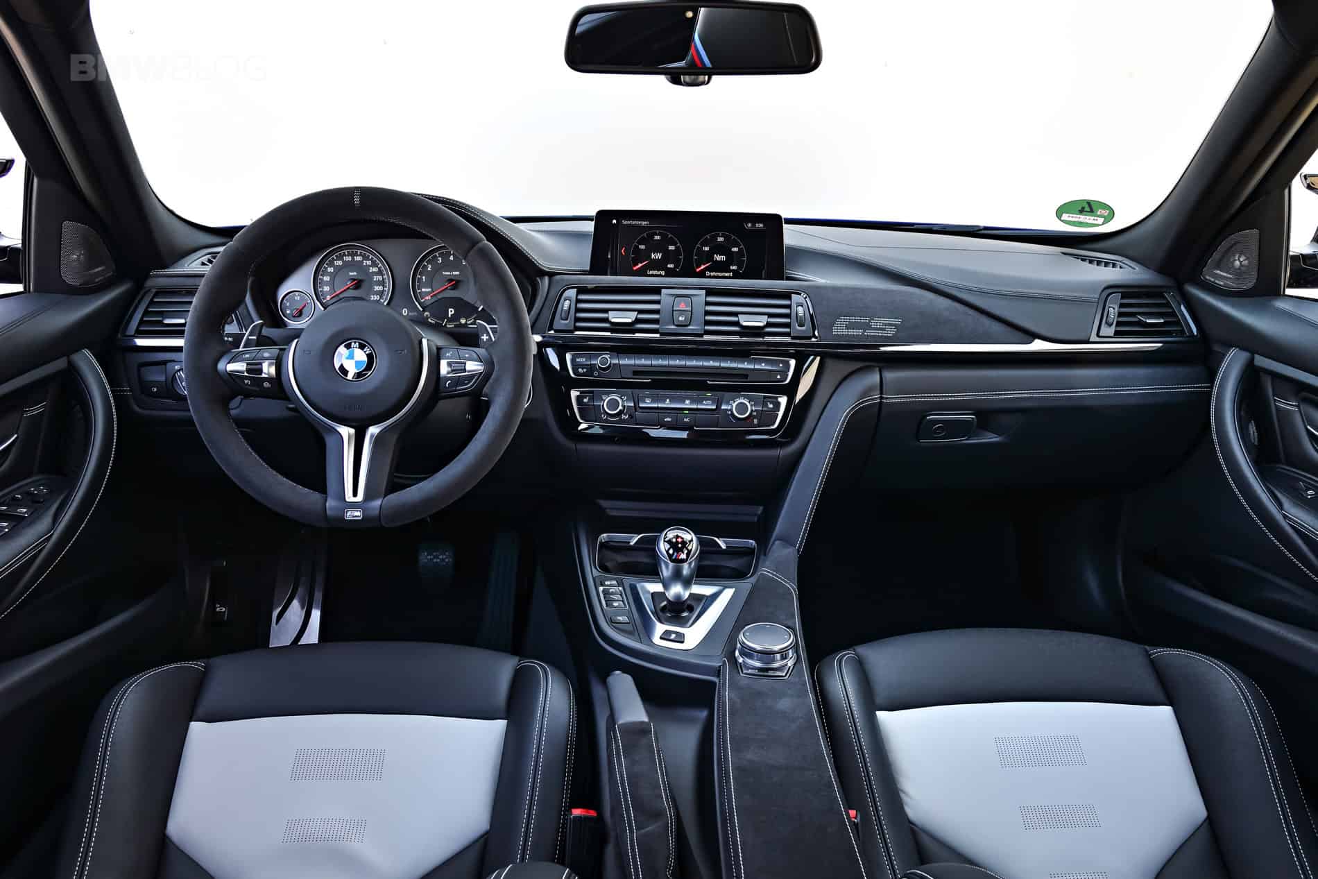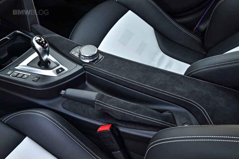 Inside, the M3 CS maintains its civilized tone with a sporty, yet luxurious cabin. Its door panels are covered in contrast-stitched leather, as is the dashboard, and the seats are a unique combination of Silverstone/Black two-tone leather. The lightweight material Alcantara adorns all the trim, such as on the dash and the center console, and just like in the M4 CS, the armrest has been deleted here and is just covered in Alcantara instead.