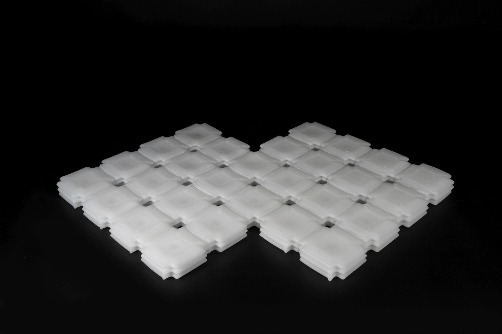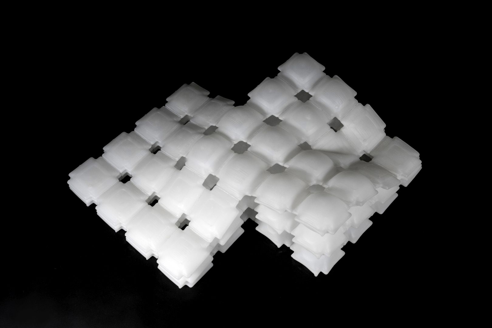 This collaboration resulted in the first example of a fully printed inflatable that can be customized to any size or shape. The silicone printed object can change shape depending on the amount of air pressure in the system. The pneumatic controls in the system allow the printed structure to transform into a variety of shapes, functions or stiffness characteristics. After testing various directions on how a visionary interior could take shape, the experts at the Self-Assembly Lab achieved a breakthrough when they managed to liquid print air and water-tight inflatable geometries, like customized printable balloons.