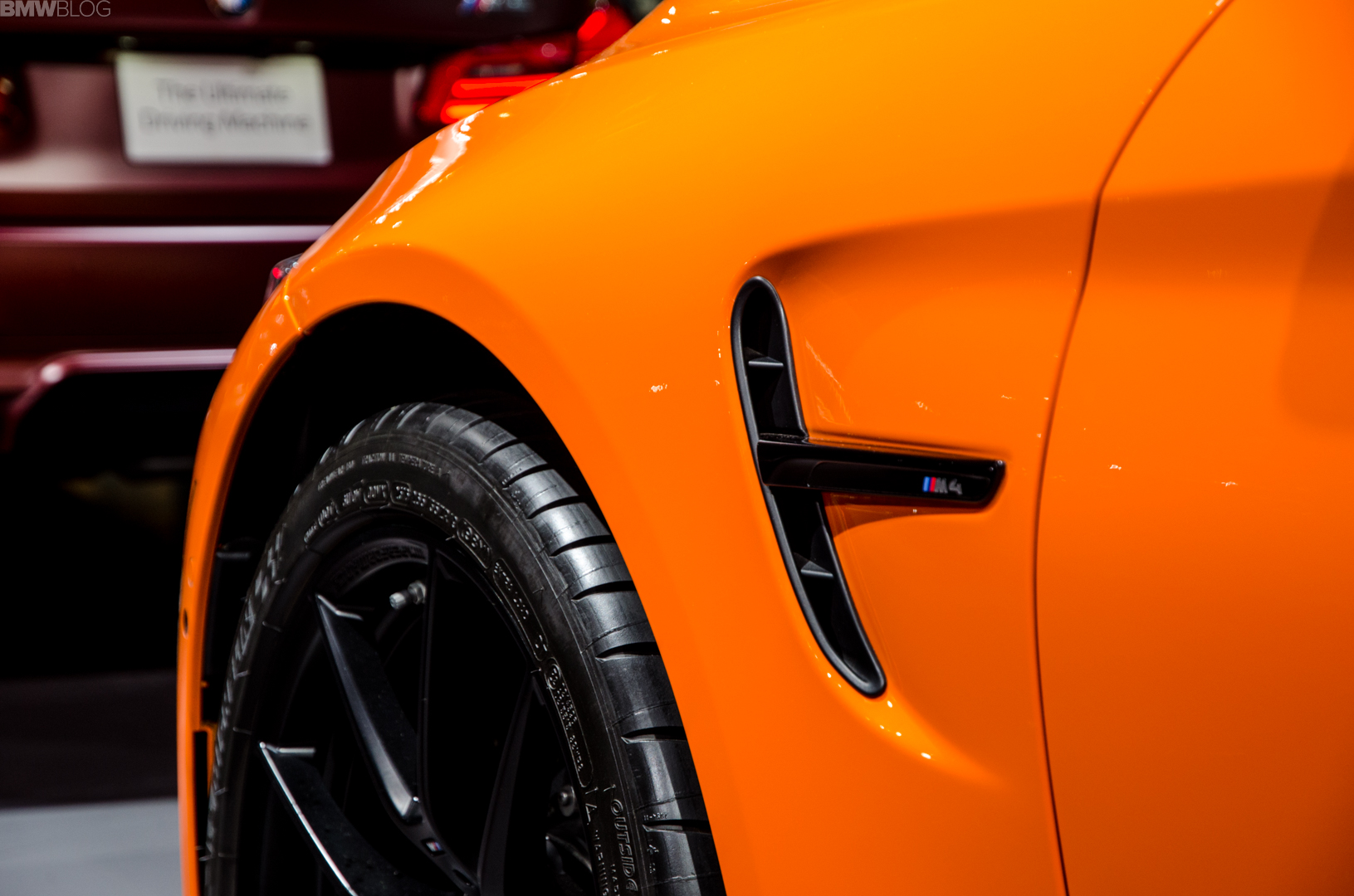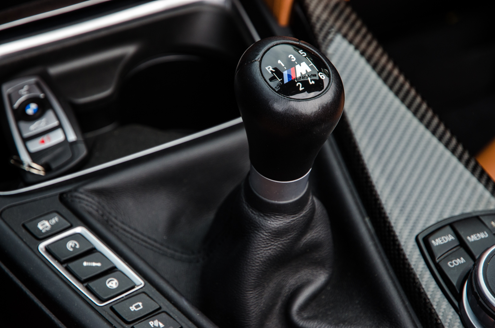 Sitting in the California desert sun with its top down, the purple M4 showed off its brownish leather interior and, the real eye-catcher, its six-speed manual transmission. Just the color scheme and six-speed stick in between the seats were enough to attract enthusiasts. However, there were also some carbon fiber goodies, gold Style 763M wheels, a lowered M Performance suspension and an M Performance exhaust. So, needless to say, there was a bit of a line of folks who wanted to drive it.