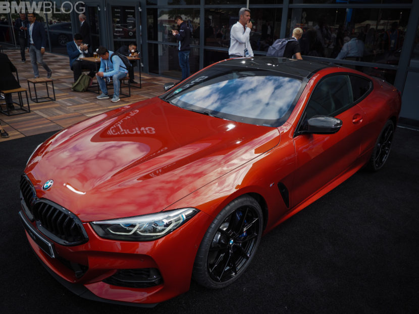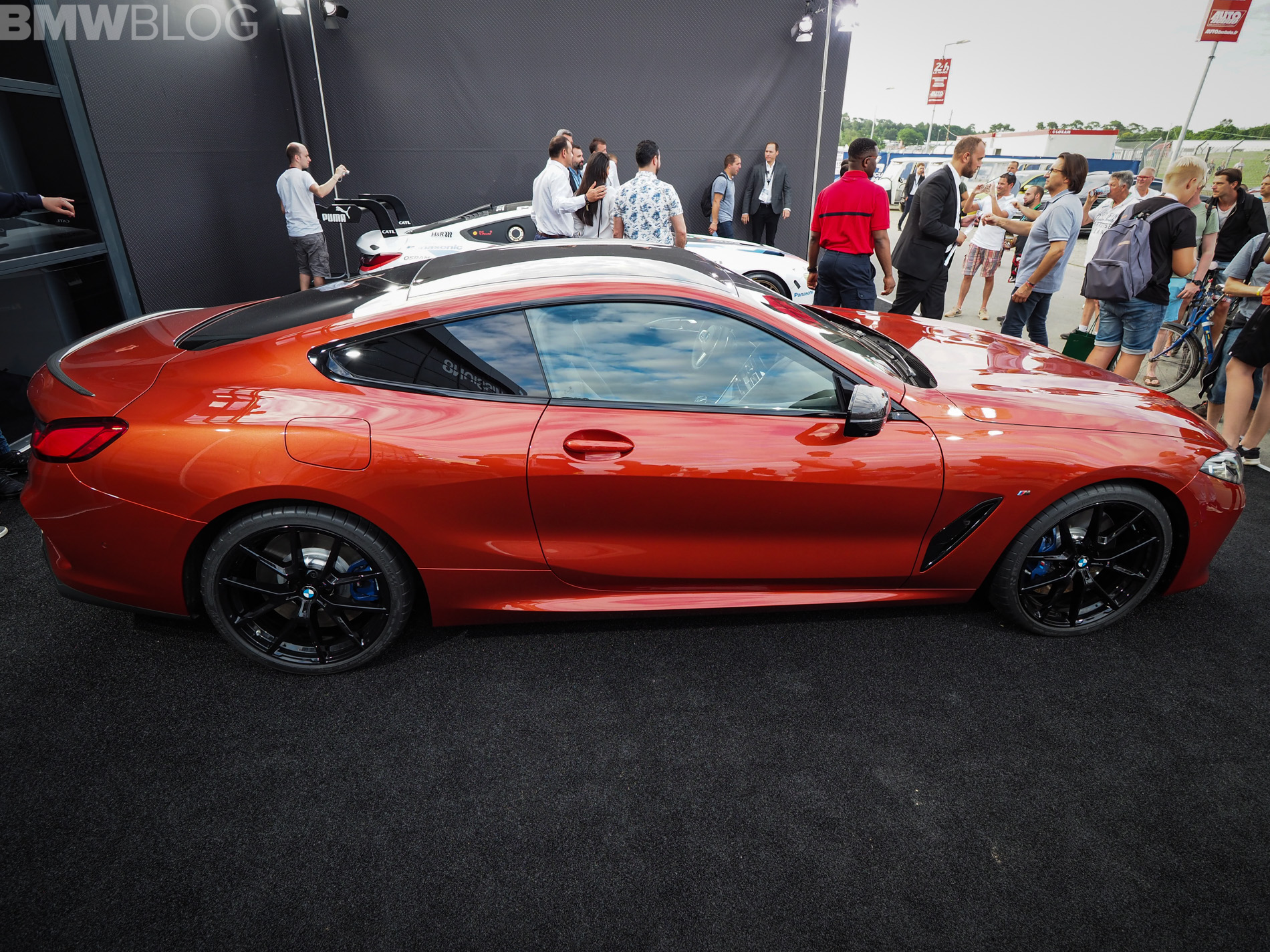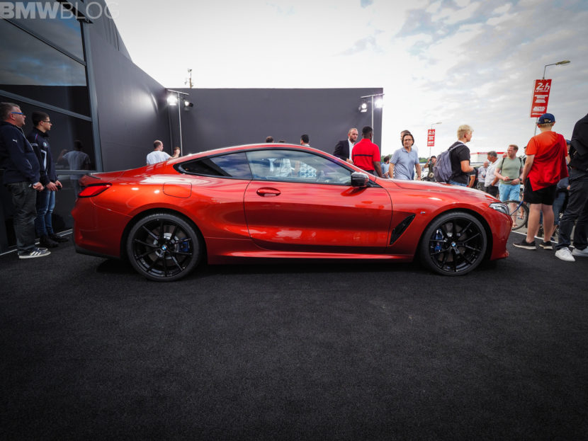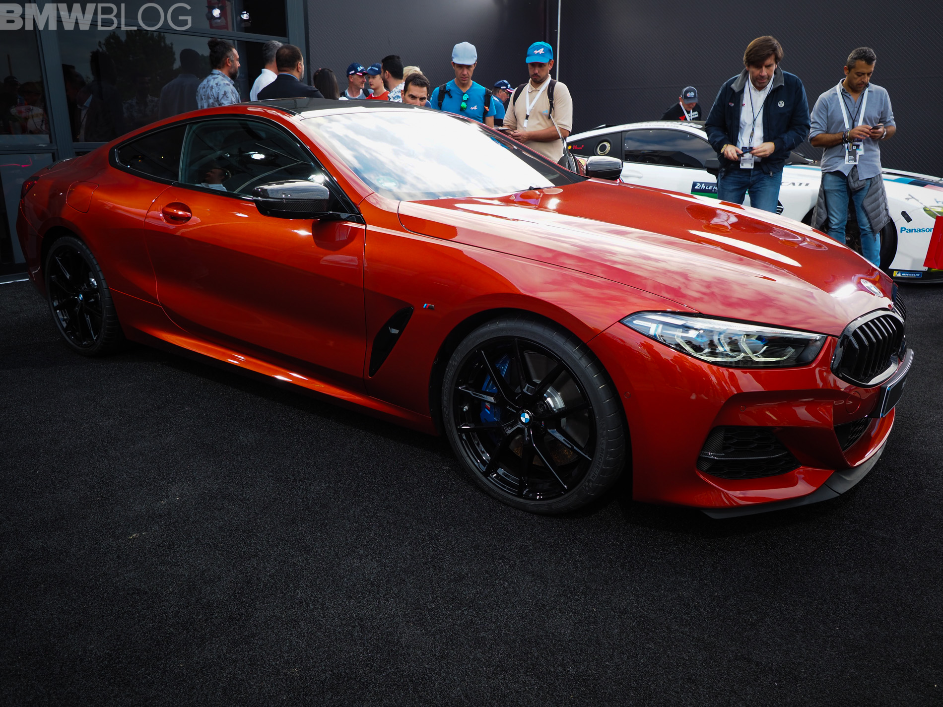 We’re bringing you live from Le Mans the first real life photos of the all-new BMW 8 Series Coupe. But not just any model, the M850i in Sunset Orange and equipped with the Carbon Package. The new optional package comprises of air intake bars, exterior mirror caps, a rear spoiler and a rear diffuser insert all made from CFRP.