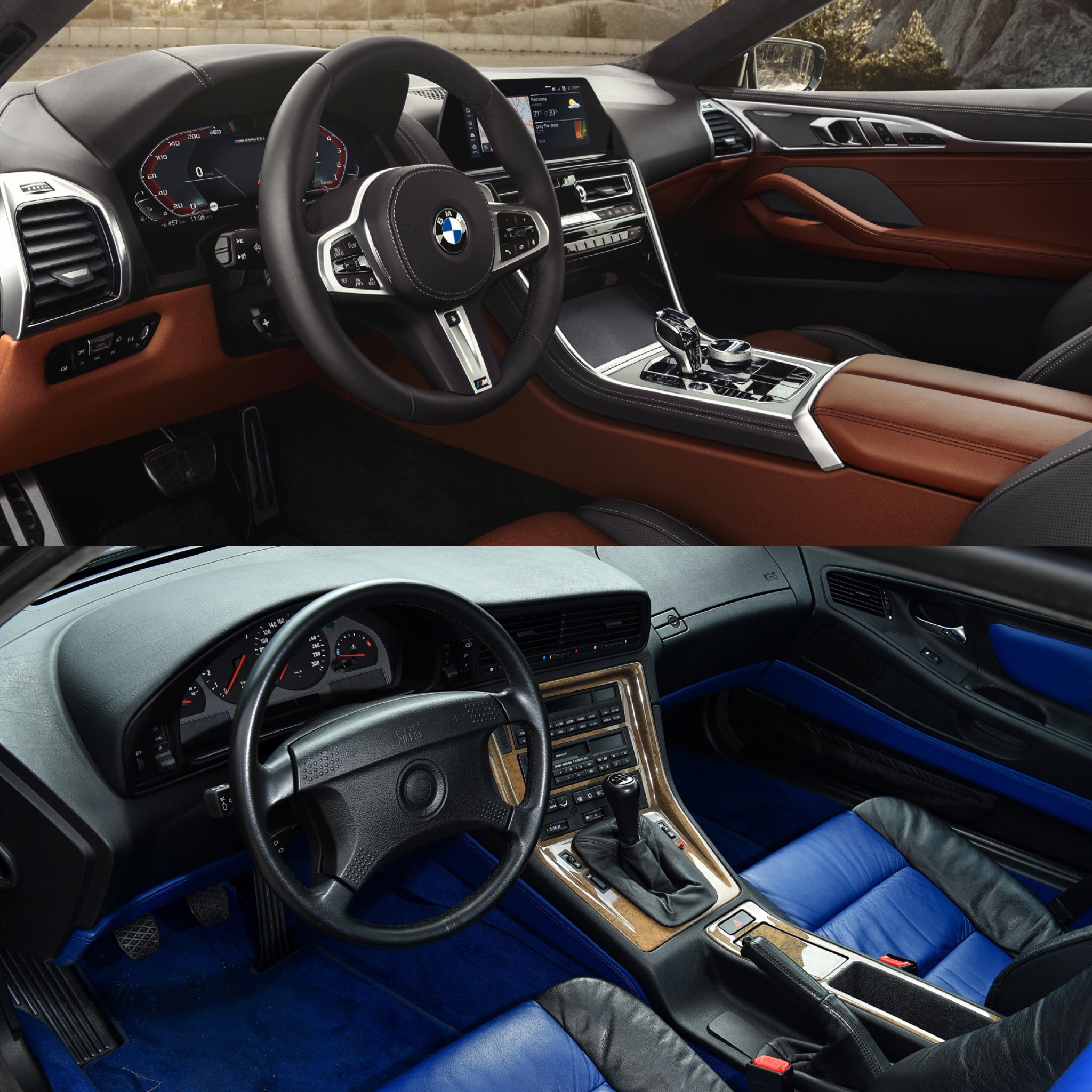 Inside, it’s astonishing how similar they are. Fans have been complaining already about the 8er’s cabin, calling it too bland and conservative. Though, when you look at it back to back with the old one, you can see where BMW got its inspiration from for the new car. Everything, from the waterfall center stack to the way the air vents on the old car are in sort of the same place as the new iDrive screen and even how the door panels are shaped. Say what you want about it, but this new BMW 8 Series interior is a faithful throwback to the car it replaces. Though, because they’re so similar and one is so much newer than the other, we have to call this one a wash.