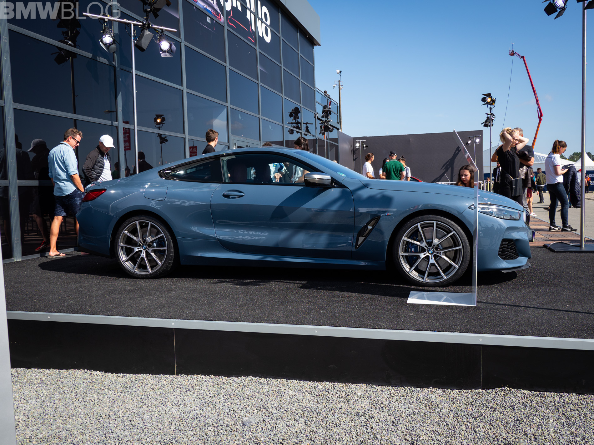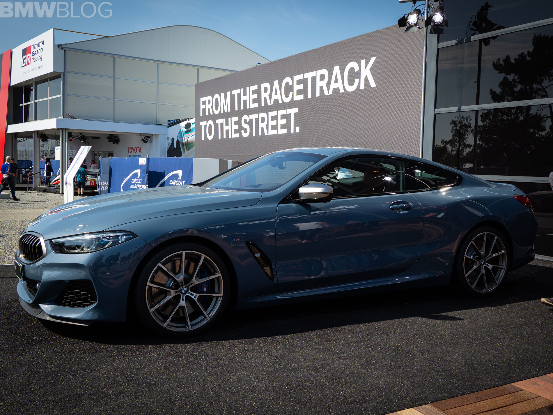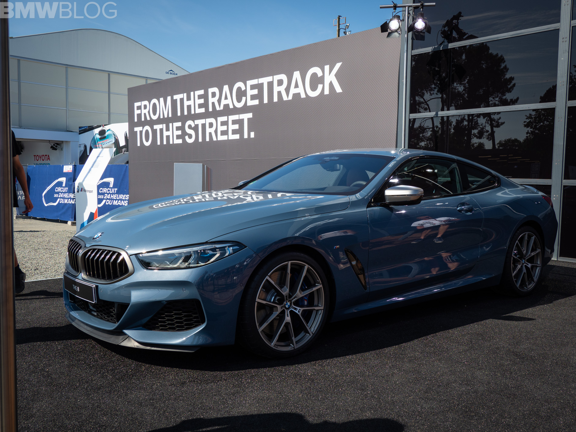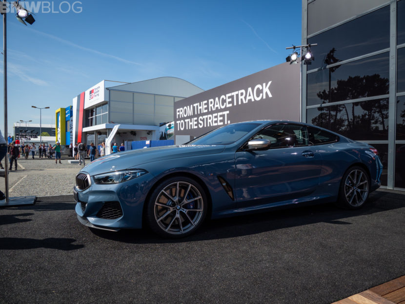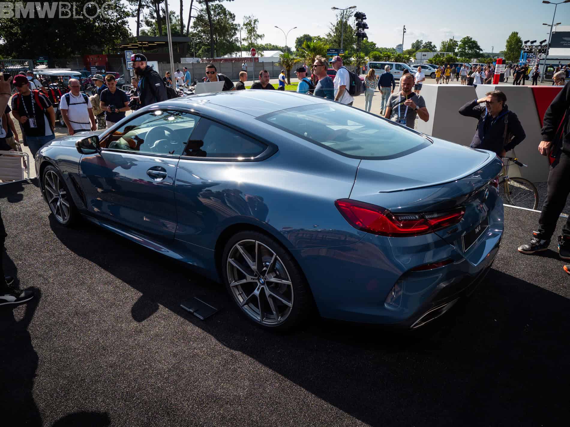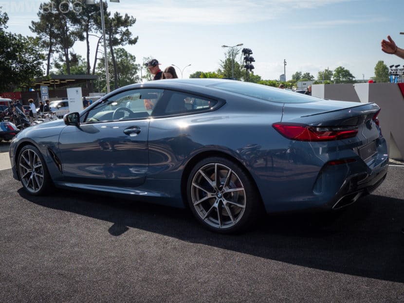We continue our live coverage of the new BMW 8 Series with new photos from Le Mans. This time, we have the BMW M850i in the launch color Barcelona Blue. The worldwide market launch of the sleek new coupe is scheduled for November 2018 and the US market will get the M850i xDrive. An 840d model is offered in other markets.
