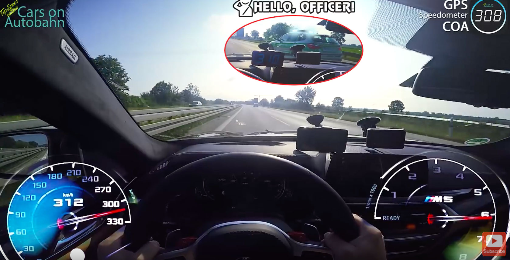 Take for example this new BMW F90 M5 which was captured on video flying on the Autobahn at a top speed of 312 km/h. And if that’s not enough to impress you, then the fact that he was able to do so while passing a police car is even more fascinating. There are no other places on Earth where the law will let you do so. Okay, unless you exclude the rural roads on the Isle of Man.