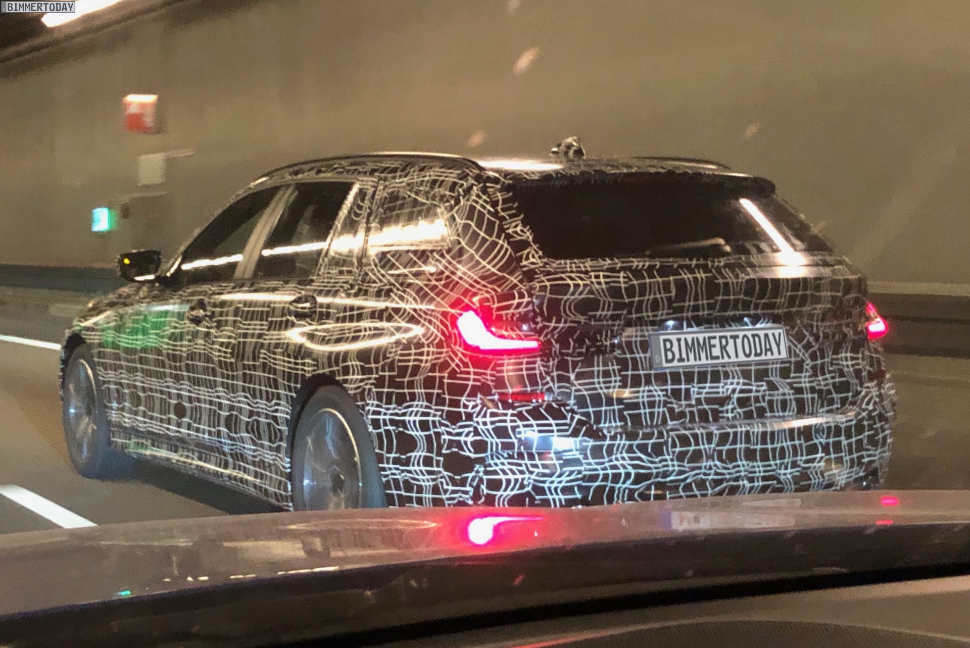 Just a few months after the G20 3 Series sedan, the new BMW 3 Series Touring G21 will also celebrate its market launch. Bimmertoday’s reader Bobby has caught a test mule of the mid-range sports wagon on the Autobahn near Munich giving us a closer look at the athletic touring. Despite the camouflage, some details are clearly visible, including the directly interconnected mono-grill kidneys, and the shape of the headlights and taillights.