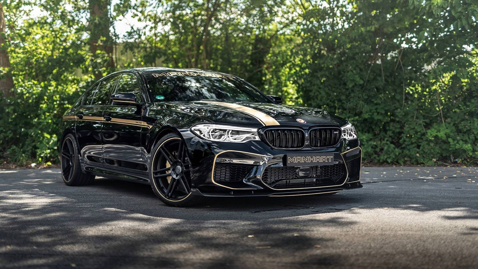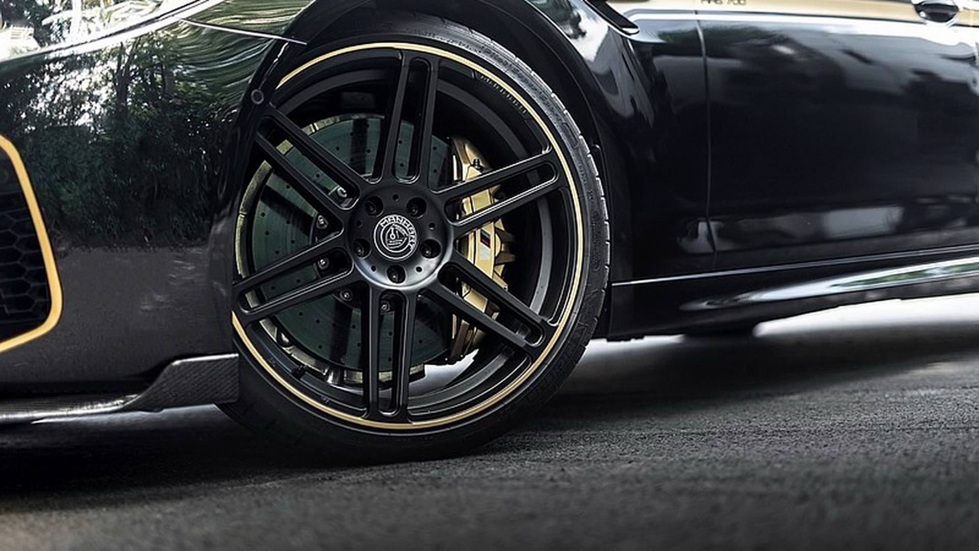 The tuner also gave the car a visual upgrade to live up to the MH5 nameplate, the usual Manhart acronyms for enhanced M cars. The new MH5 wears carbon fiber nearly everywhere, from the front end to the back. Up front you’ll notice a new splitter with gold accents and fins on the sides while round the back a massive diffuser dominates the rear bumper. Up on the boot lid you’ll notice a new carbon fiber spoiler as well.