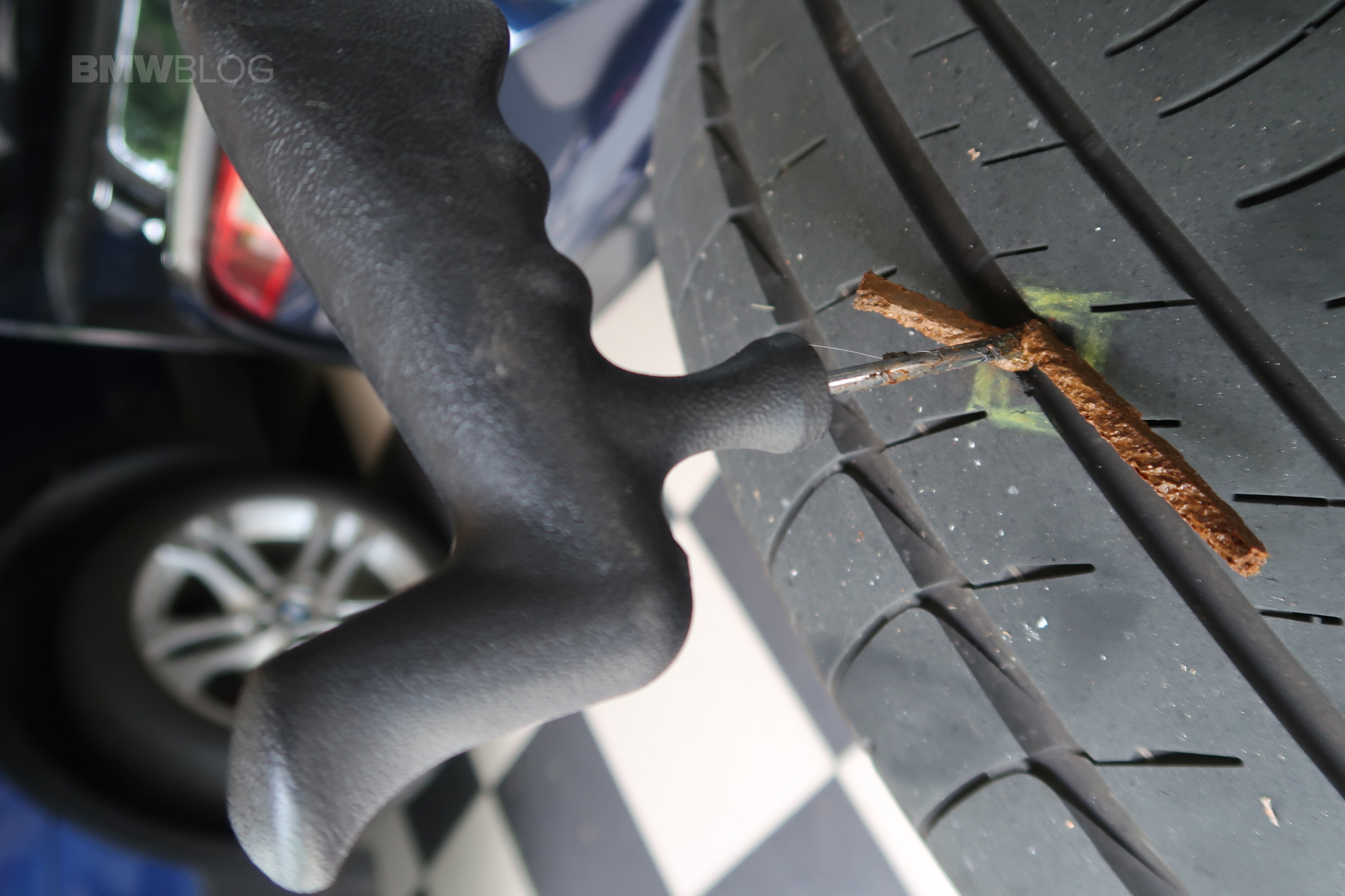 Patching would probably be the best option and what I will do if a plug fails but this involves a trip to a tire shop. Fixing a flat at home with a plug kit is just so much more fast and convenient. We love our i3s but keeping repairing flats is proving to be quite a challenge!See more photos of the flat repair process: