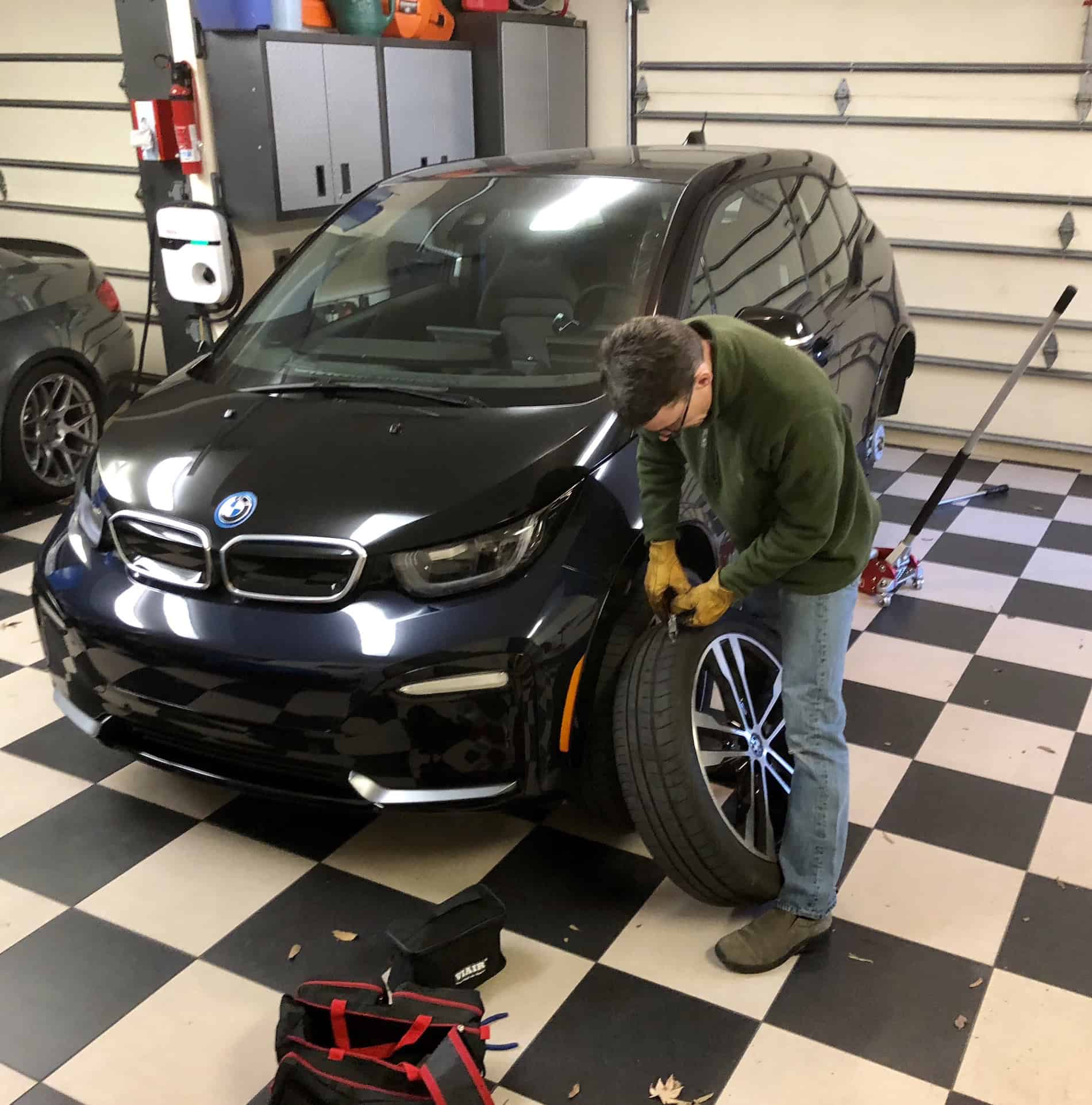 Finally, fill tire back up with air to confirm it is holding pressure. The BMW i3 takes 33psi front and 41 psi in rear for both the i3 and the i3s. Last is to torque the wheels on the i3s down to 140 Nm. I like to drive the car until the TPMS registers again on the dash, park and re-torque the wheel.
