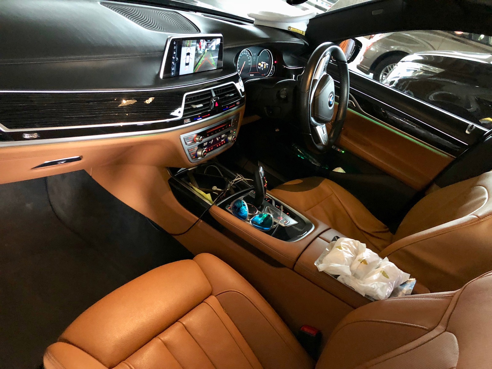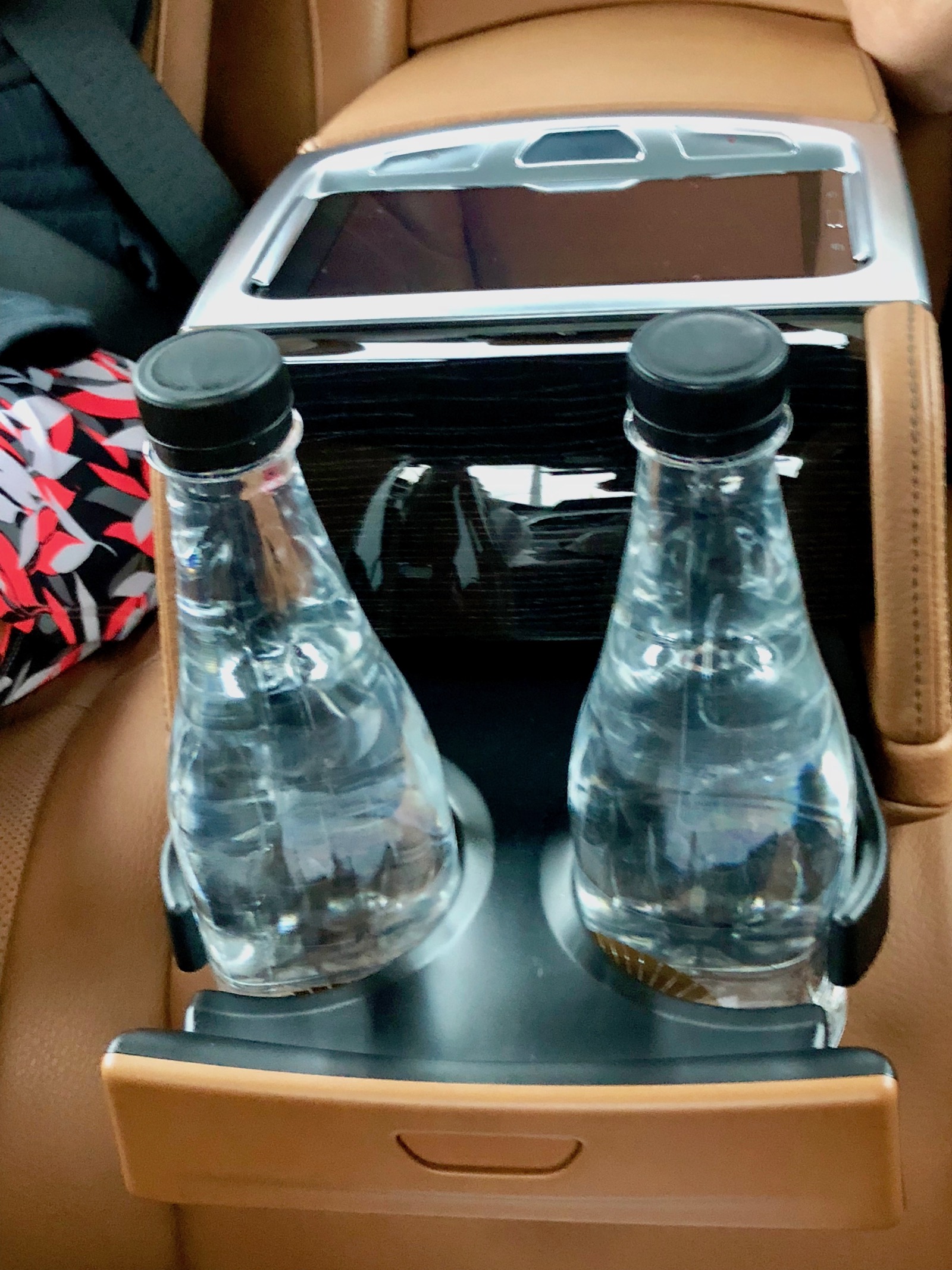 As we pulled away from the airport, we were offered cool refreshing towels for our hands, bottled water and our very own WiFi service. The hotspot name was MO Limousine 26 and being BMW’s LTE connection, was remarkably fast. Though the cabin of the 730Ld was a perfectly comfortable temp, I turned on the seat ventilation and massage function to help work away the jet lag.