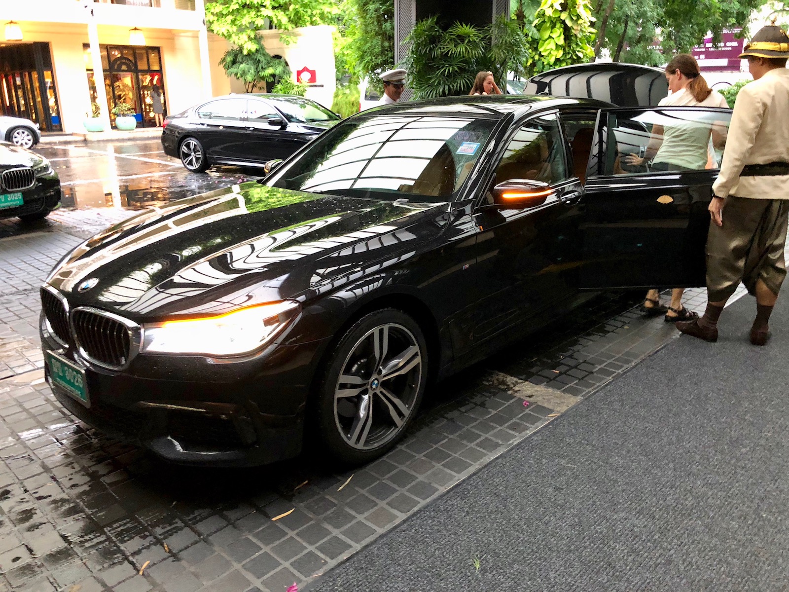 The Mandarin Oriental Bangkok has a a fleet of twenty BMW 730Ld M Sports that are completely loaded. A trip from the airport to the Mandarin Oriental costs 3,400 THB (about $100 ) and from the hotel back to the airport costs 3,100 THB ($90 USD). Given the luxurious ride and distance covered, it represents a bargain in my book.