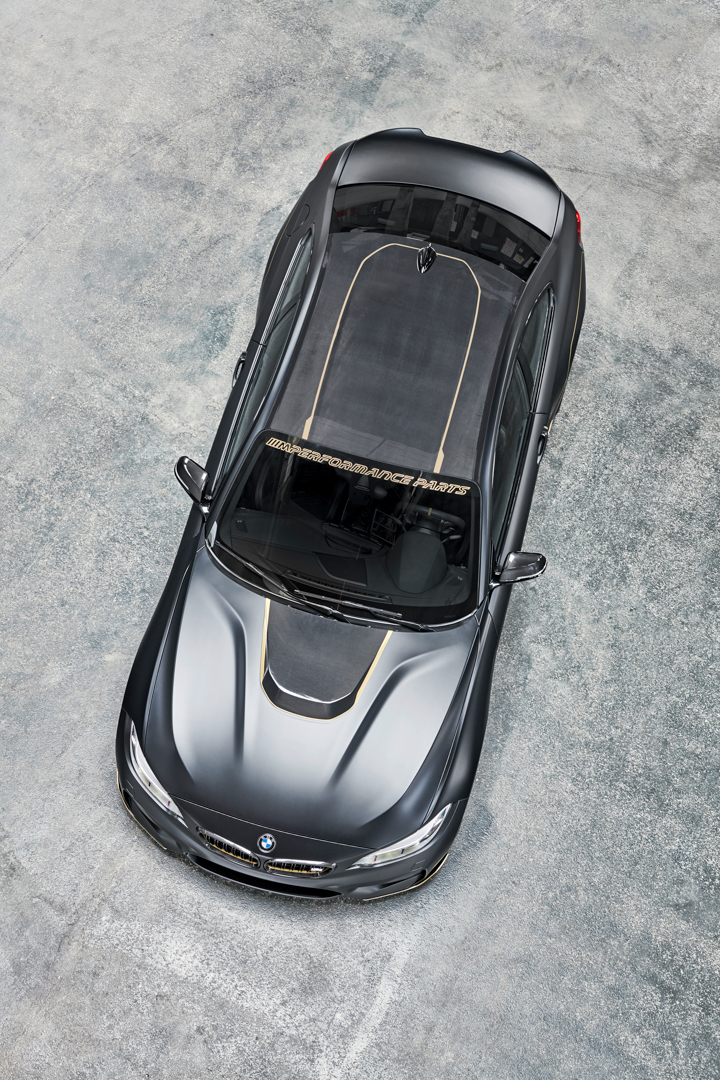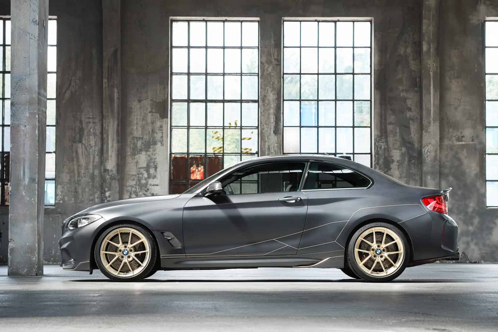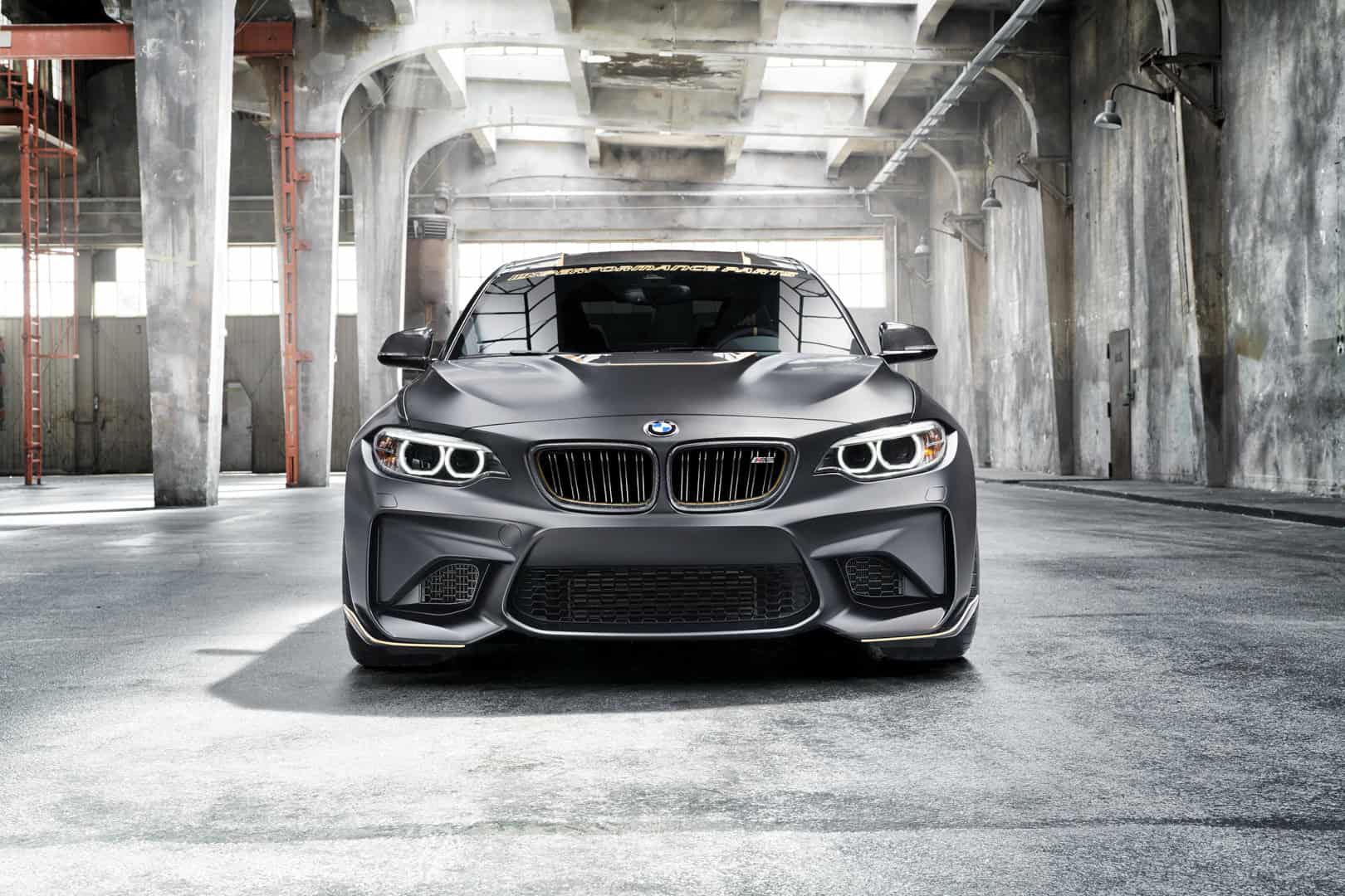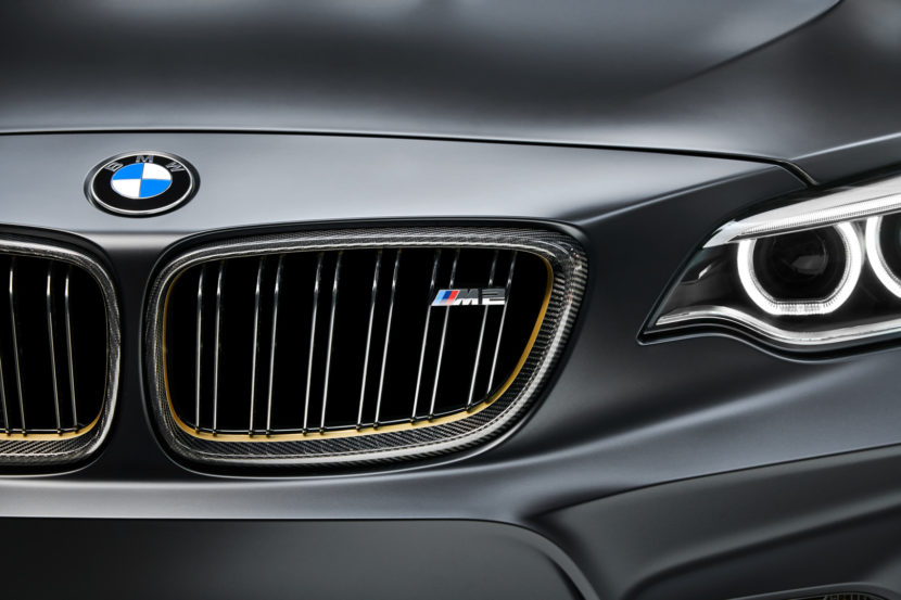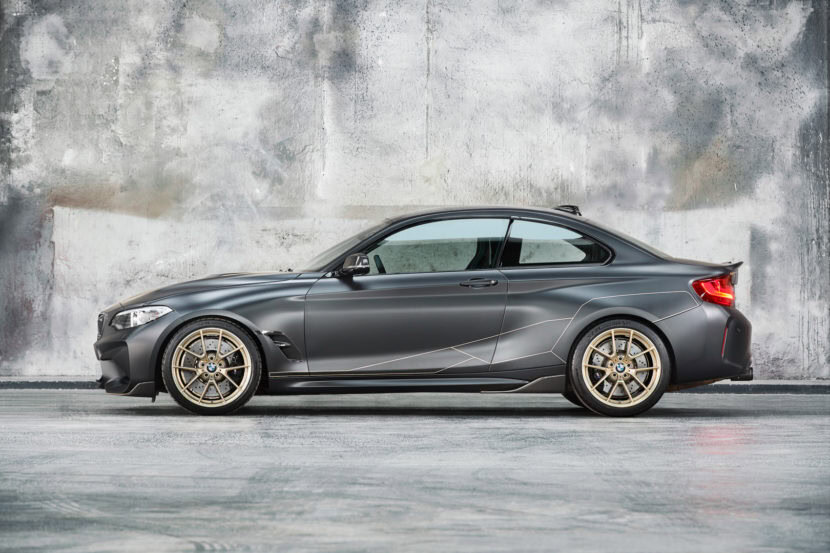 The BMW M2 M Performance Parts Concept is basically BMW giving its M Performance Parts division free reign to make something crazy out of an M2. And it looks pretty awesome, to be honest. It starts with a Frozen Black finish with gold M Performance wrapping that looks really aggressive and motorsport-inspired. Then, it gets a carbon fiber hood, with a bulge to match its higher-end M4 brethren, a carbon fiber roof finished in a glossy clear finish, a completely new trunk lid with an integrated carbon fiber spoiler and new gold wheels. Not only does it look cool but it’s also significantly lighter than the standard M2, thanks to all of the carbon fiber components.