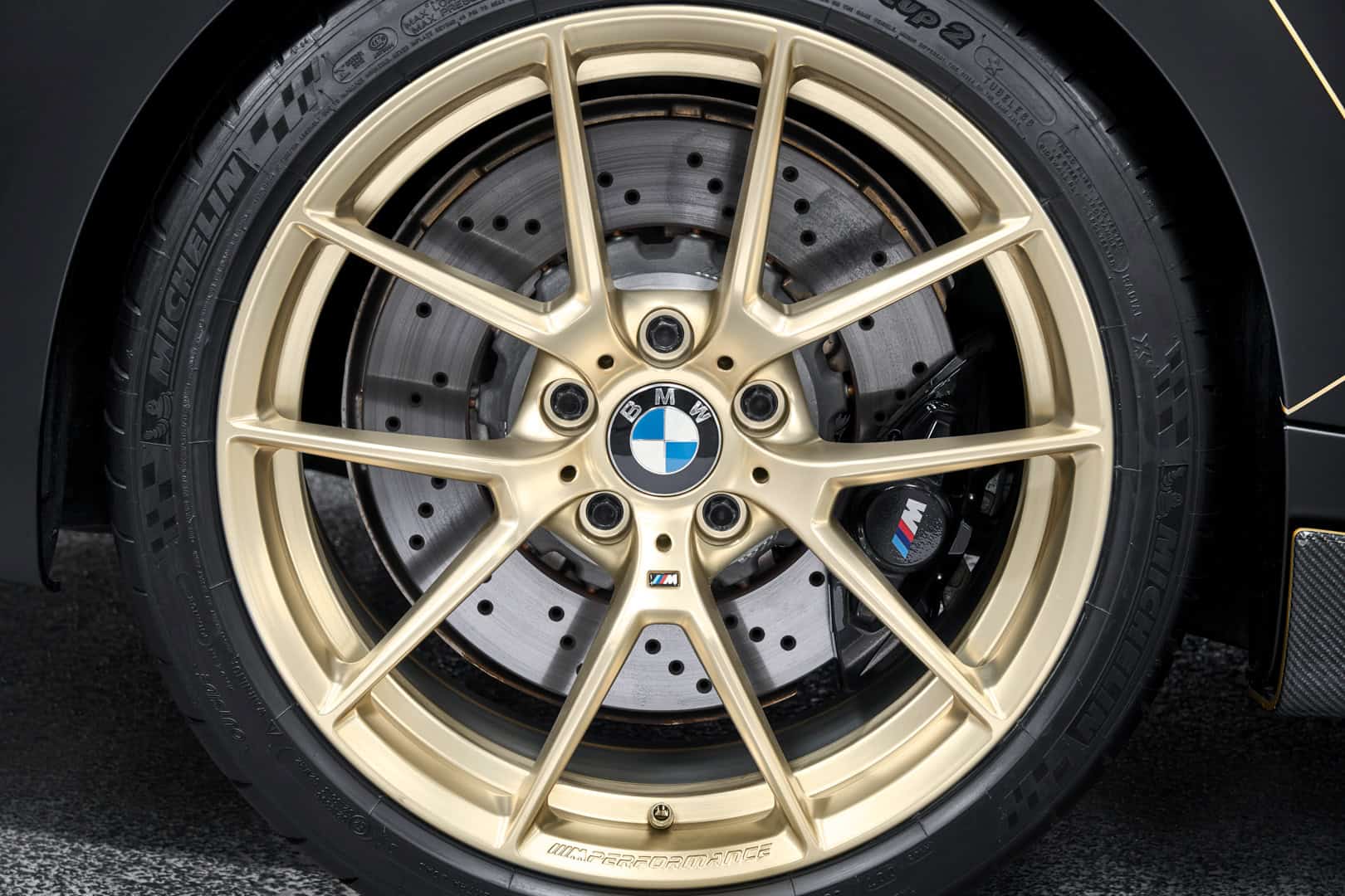 The complete wheel set with 19-inch M Performance forged wheel Y-spoke 763M in Frozen Gold (expected to be available from 7/2018) with semi-slicks not only provides a visual highlight, it is also six kilograms lighter than the standard wheels.