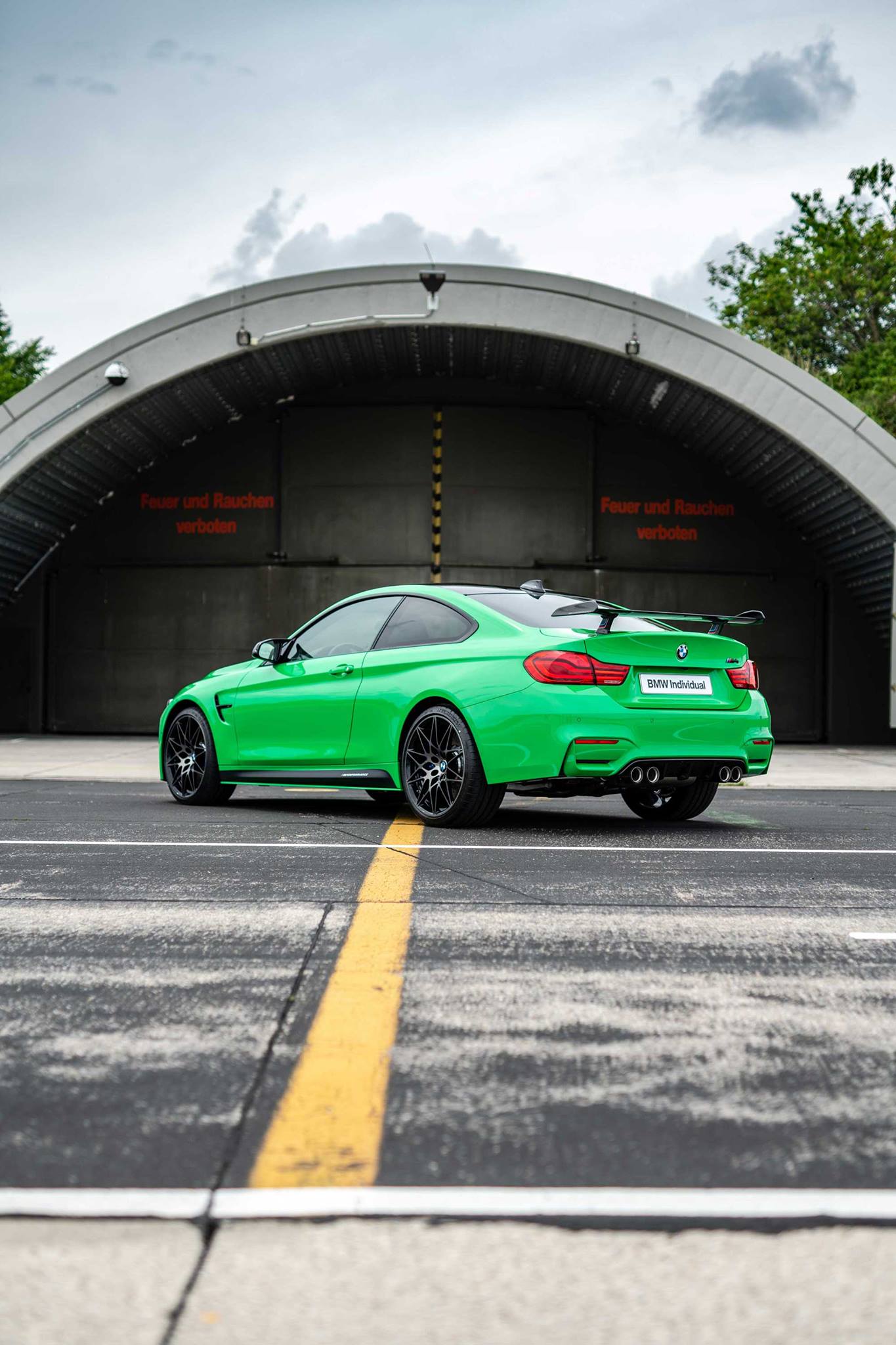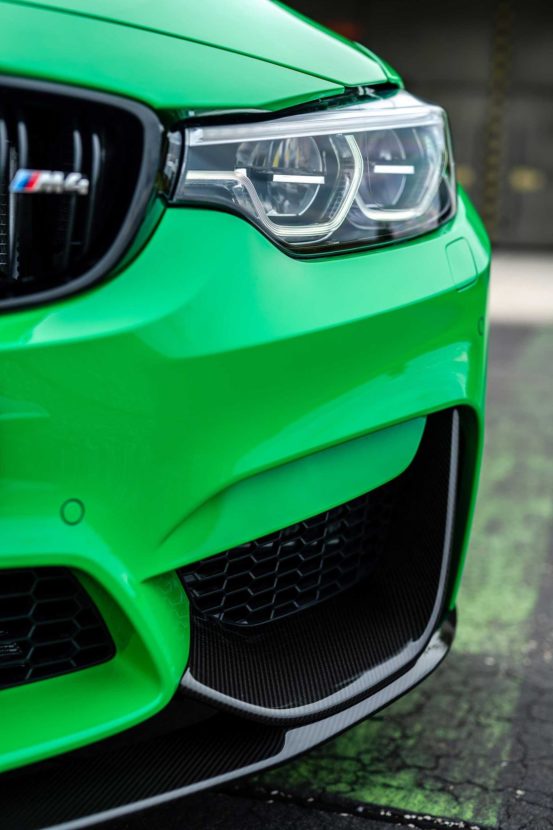 To showcase the unique shade of green, BMW M put together a photoshoot with the M4 Coupe Competition Package on the airport grounds of the BMW Driving Academy in Maisach. The M4 is not only decked out with the mandatory – in our opinion – Competition Package – but also with a series of M Performance Parts.