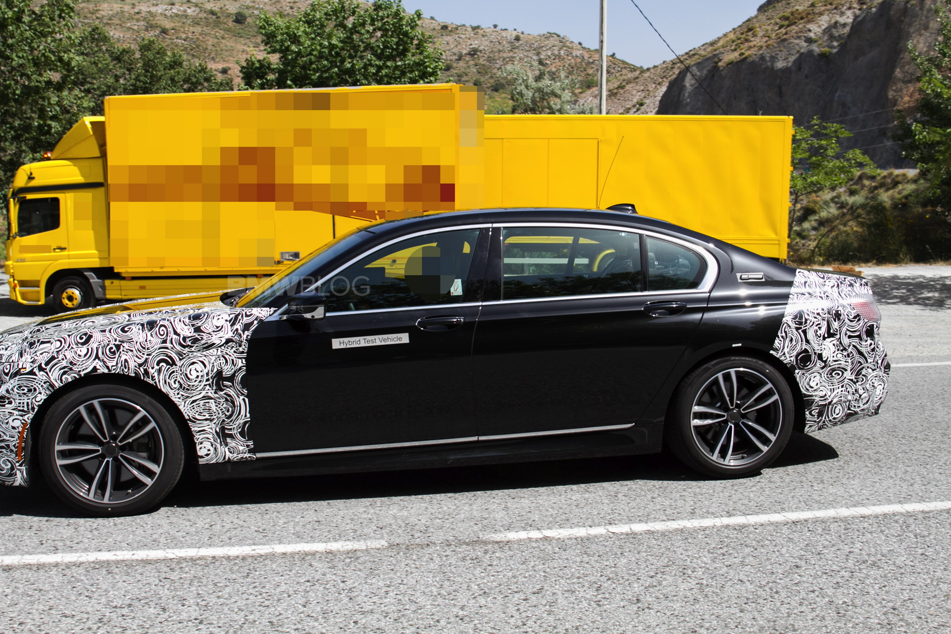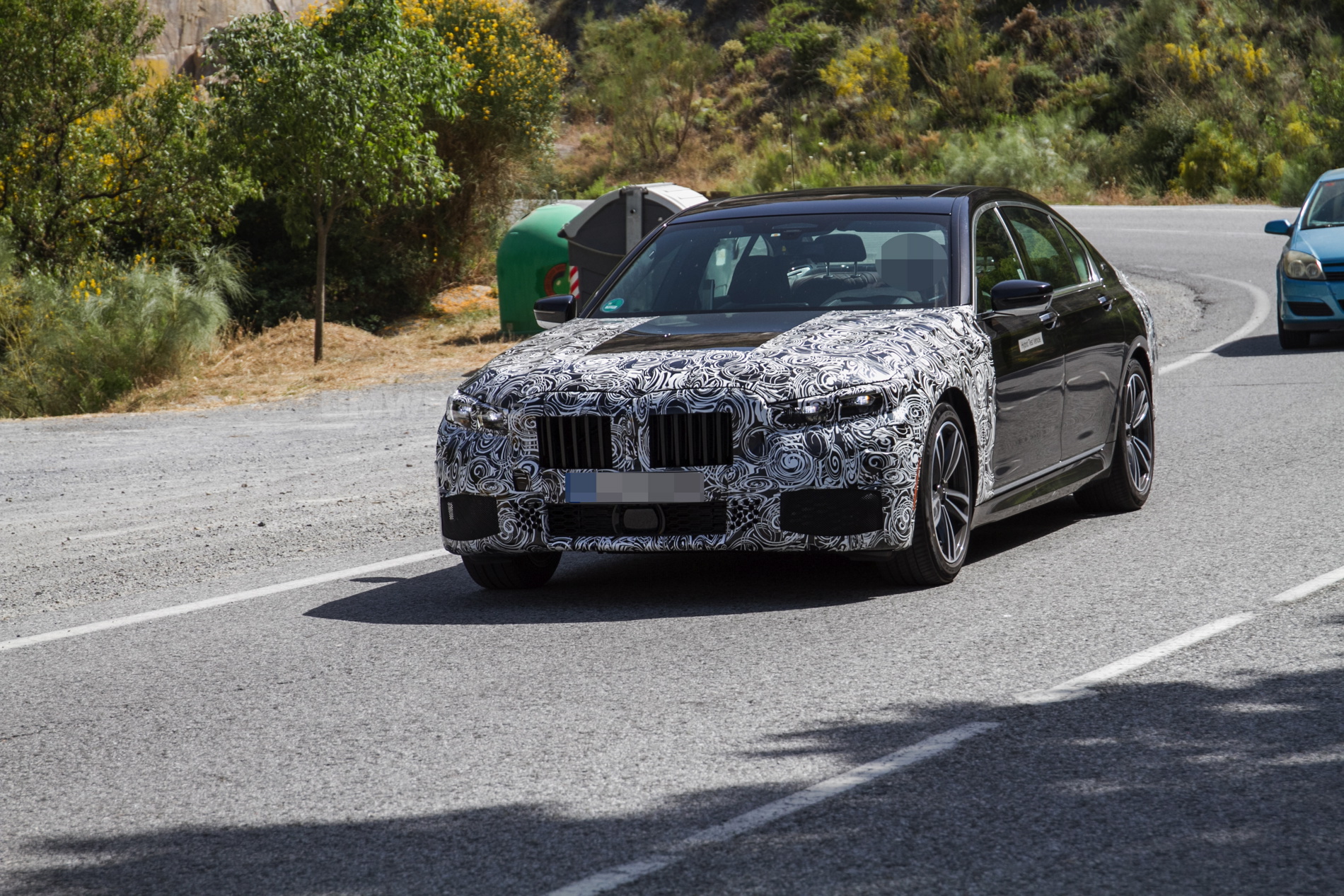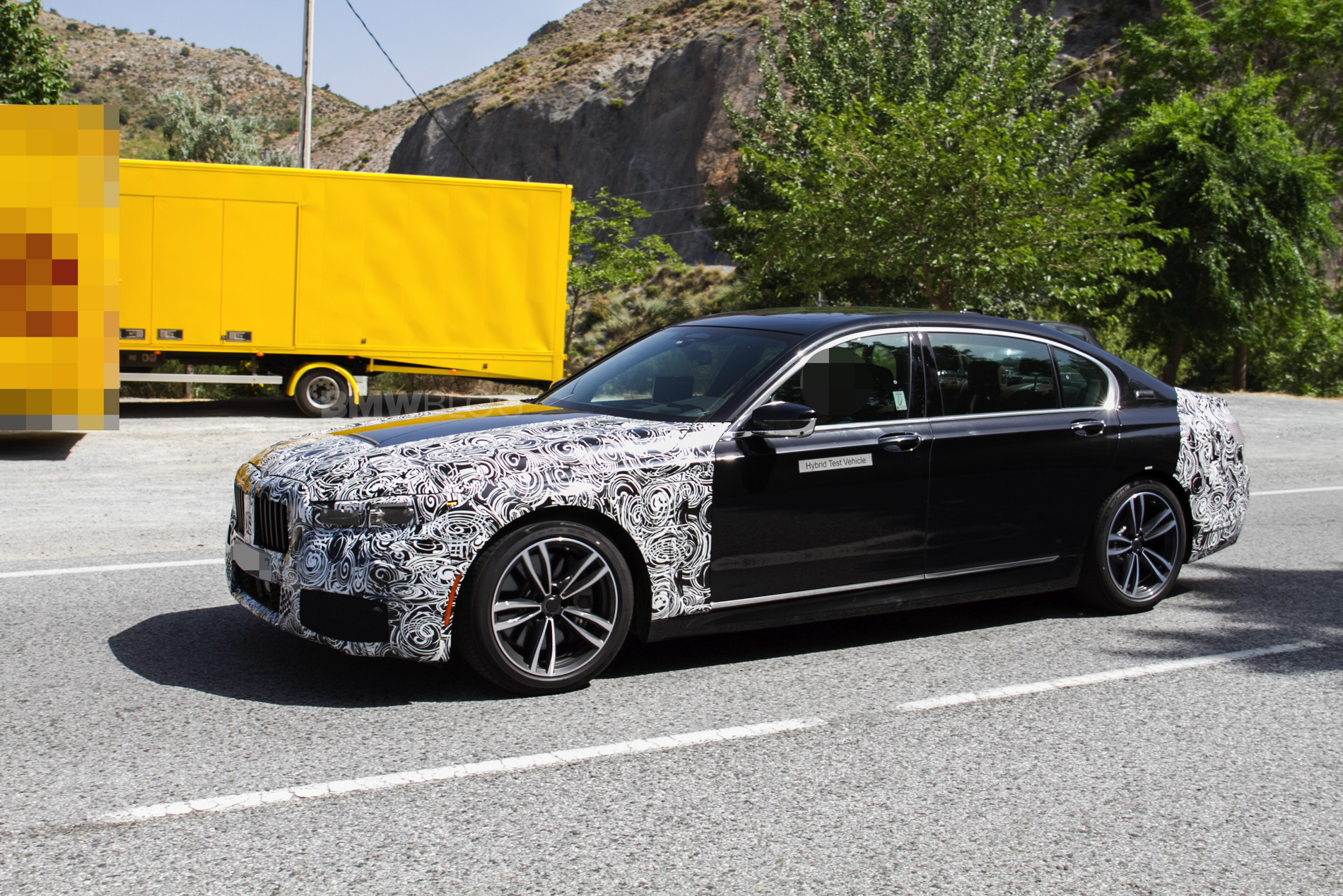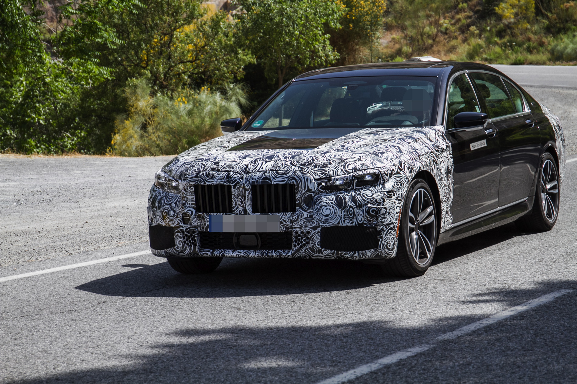 In these new photos, we see a black 7 Series test mule that has its entire front and rear ends covered in camouflage. So BMW is clearly making so decently sized changes to the face and butt of the 7er. As with most facelifted BMWs, the front bumper will get slightly redesigned, so expect to see a bit more sportiness, while the lights will also go through a design change, to be more inline with recent new models.