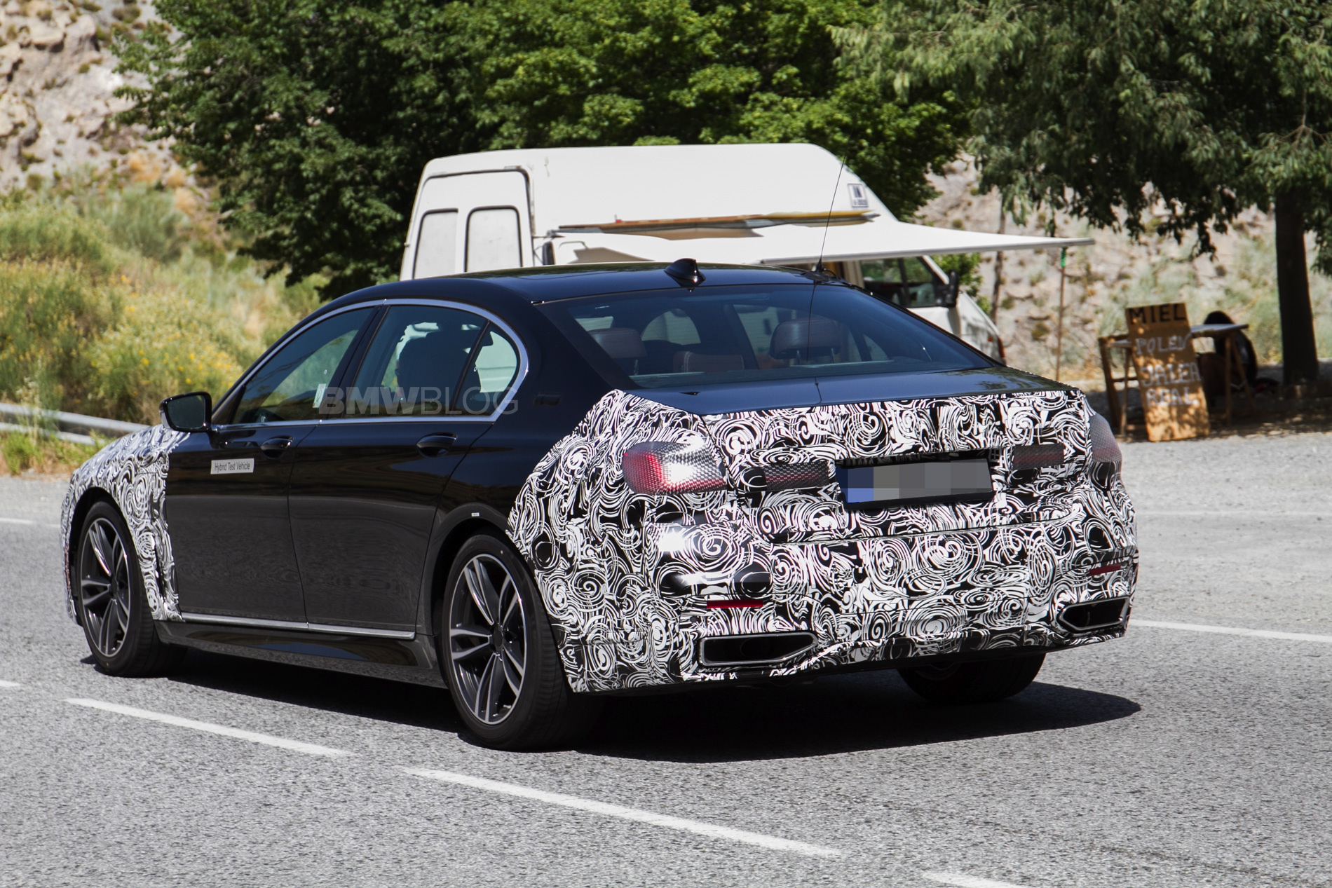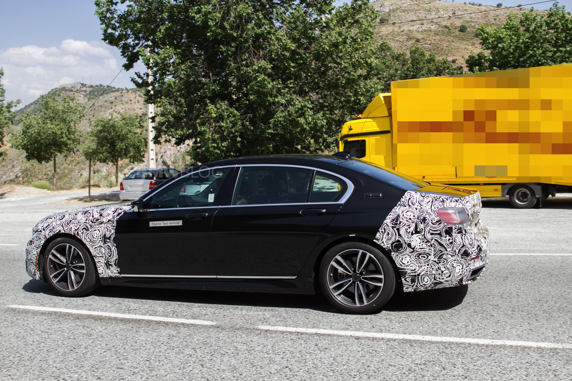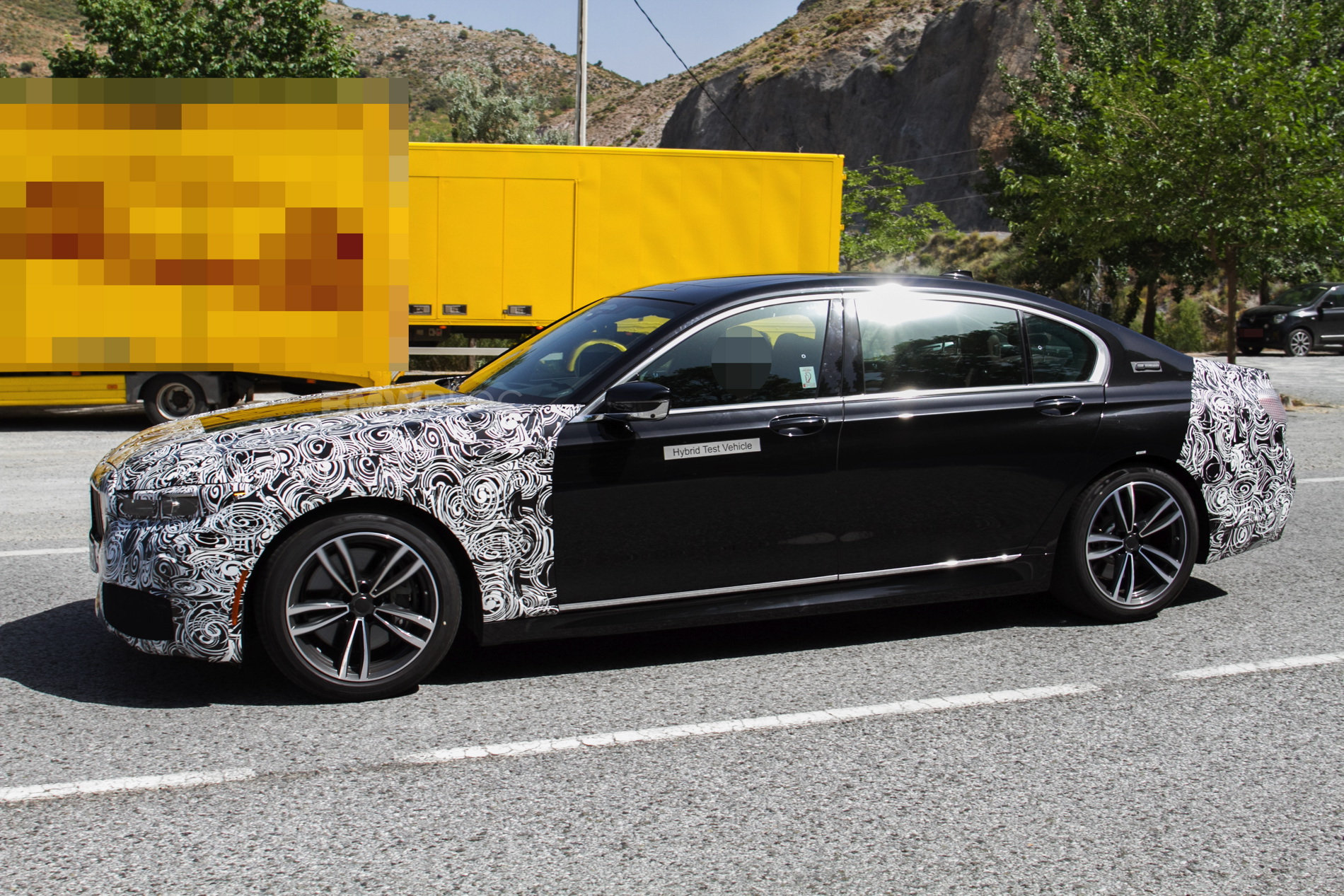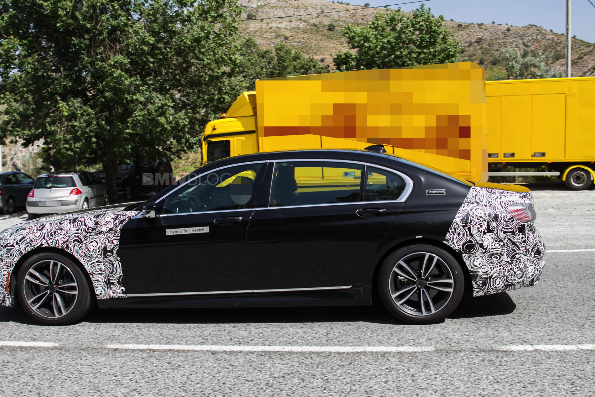 In these new photos, we see a black 7 Series test mule that has its entire front and rear ends covered in camouflage. So BMW is clearly making so decently sized changes to the face and butt of the 7er. As with most facelifted BMWs, the front bumper will get slightly redesigned, so expect to see a bit more sportiness, while the lights will also go through a design change, to be more inline with recent new models.