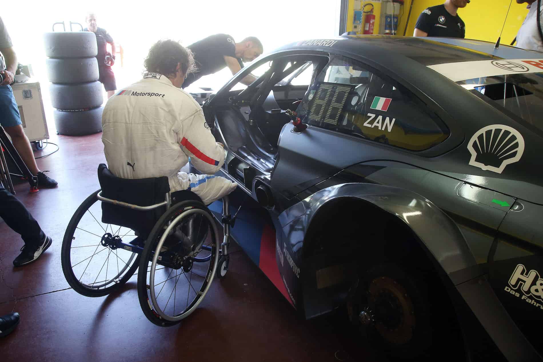 He views the fact that he will not be wearing prosthetic legs as an advantage. “I can move much faster without my prosthetic legs. There would be a greater risk of getting stuck somewhere with the prostheses.” Zanardi is also more agile without prosthetic legs outside the car, when leaving the vehicle quickly in the gravel trap, for example. In this case, Zanardi simply runs on his hands, which is easier than with his prostheses.