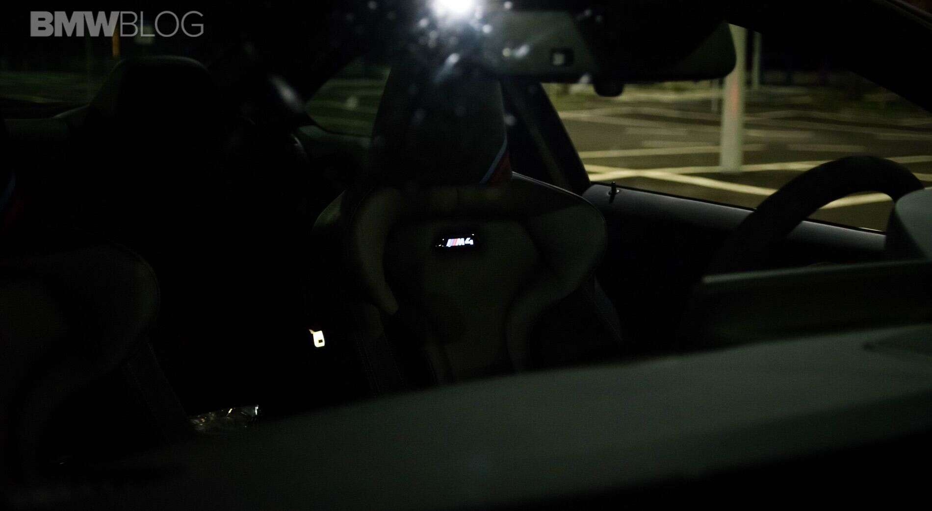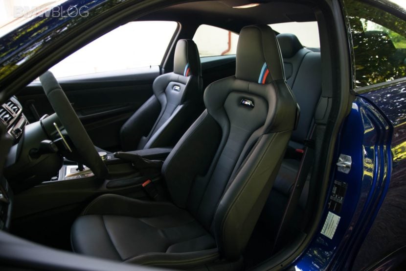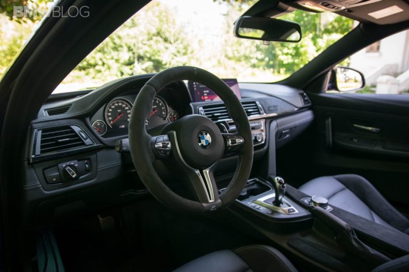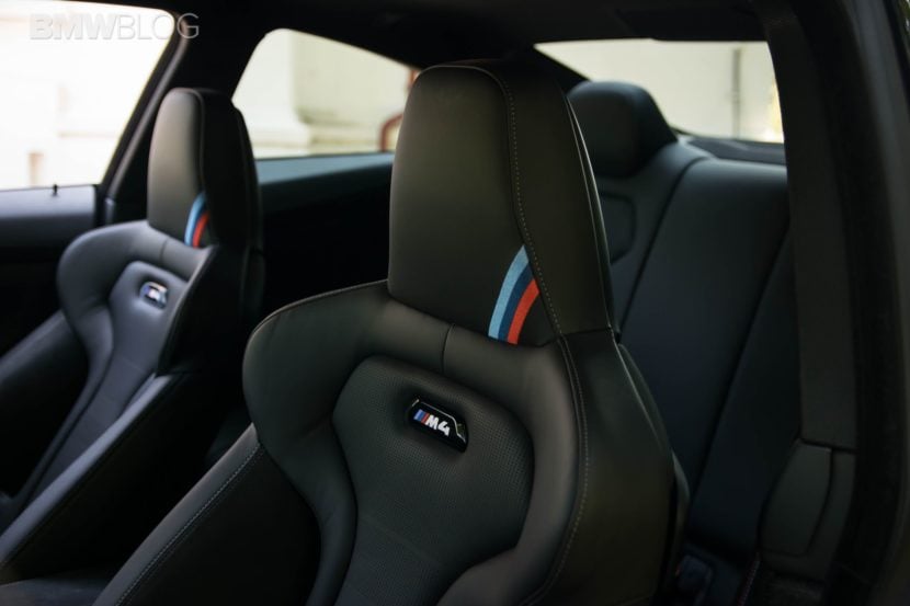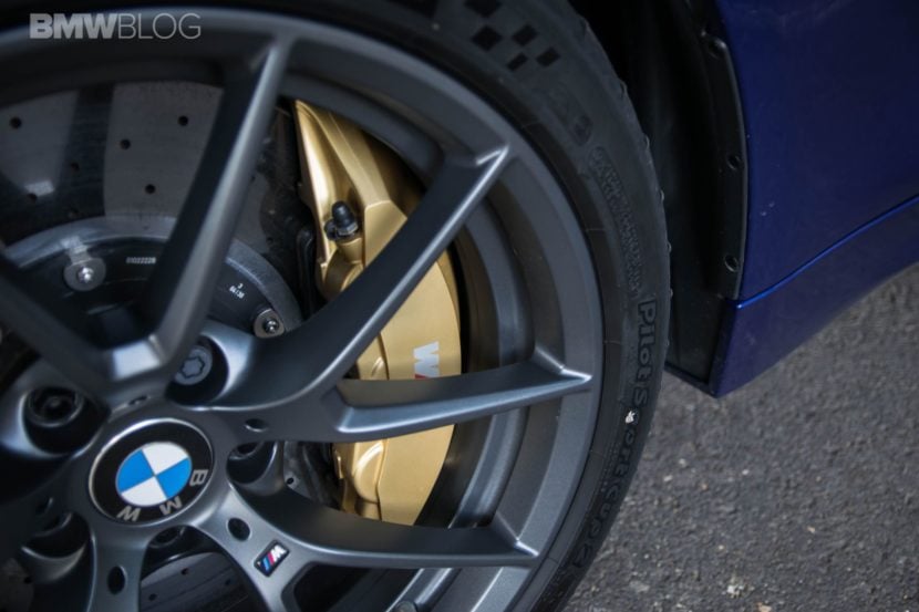 Moving on, the M4 CS was also created to shave some weight off its hips, to help with lap times. Therefore, we get the same CFRP bonnet as on the M4 GTS and the same door panels inside, fitted with a textile band to grab on to, in order to close the door. There’s also no center armrest in the M4 CS and no 2-zone climate control available. The sound system has been reduced to speakers in the dash and under the seat, also to save weight. It’s not as bad as you may think though. It may not have the best mid-range sound but it’s decent nonetheless. Not that you’d waste your time listening to your favorite tunes in this car, but I just wanted to let you know that you could if you wanted to. Unlike the GTS, though, the M4 CS does come with rear seats and that’s a big plus in terms in practicality in our book. With all these measures in place, the M4 CS is 35 kilos lighter than a BMW M4 Competition Package if you buy it in standard guise. Our tester came with Carbon Ceramic Brakes though, an 8,000 EUR option which shaves some more weight. Yes, it may not be a big difference but every pound counts.