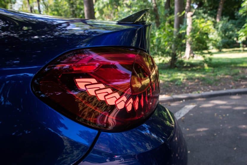 From the outside, the M4 CS is instantly distinguishable from anything else in the range thanks to a couple of well-chosen items. Up front you get a carbon fiber fixed splitter which is there to help out with aerodynamics. It is not adjustable as it is on the M4 GTS but that’s not really an issue as few people would actually know how to adjust it in the first place. Then there’s an added boot lid spoiler made of the same material noticeable round the back and a set of new, lightweight wheels on all four corners tell you that this is no ordinary M4. Chip in the Cup 2 tires and you’ll soon know you’re looking at an M4 CS if you pay attention to the details. However, the biggest giveaway are the taillights. They are the same as on the GTS and they use OLED technology to create a mesmerizing 3D effect which is just absolutely brilliant. The moment you unlock the car, the taillights come to life with each blade lighting up from the license plate to the outside of the car, basically winking at you if you will. It’s definitely a show stopper.