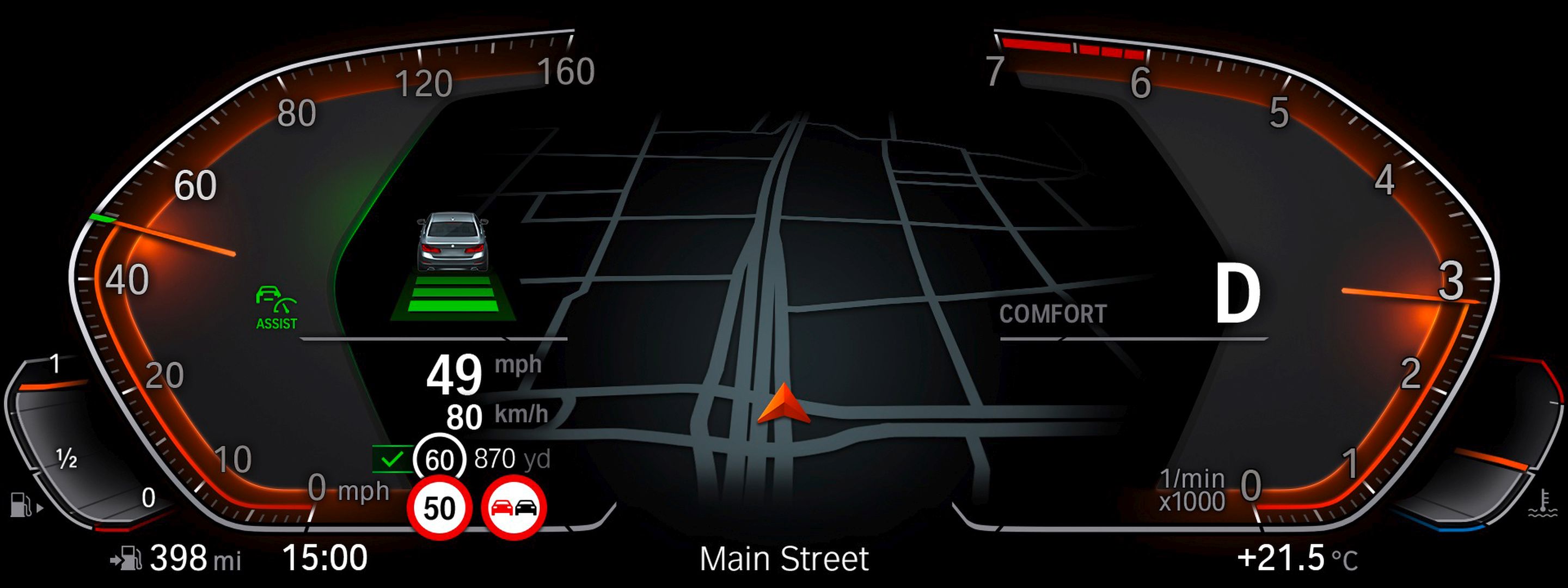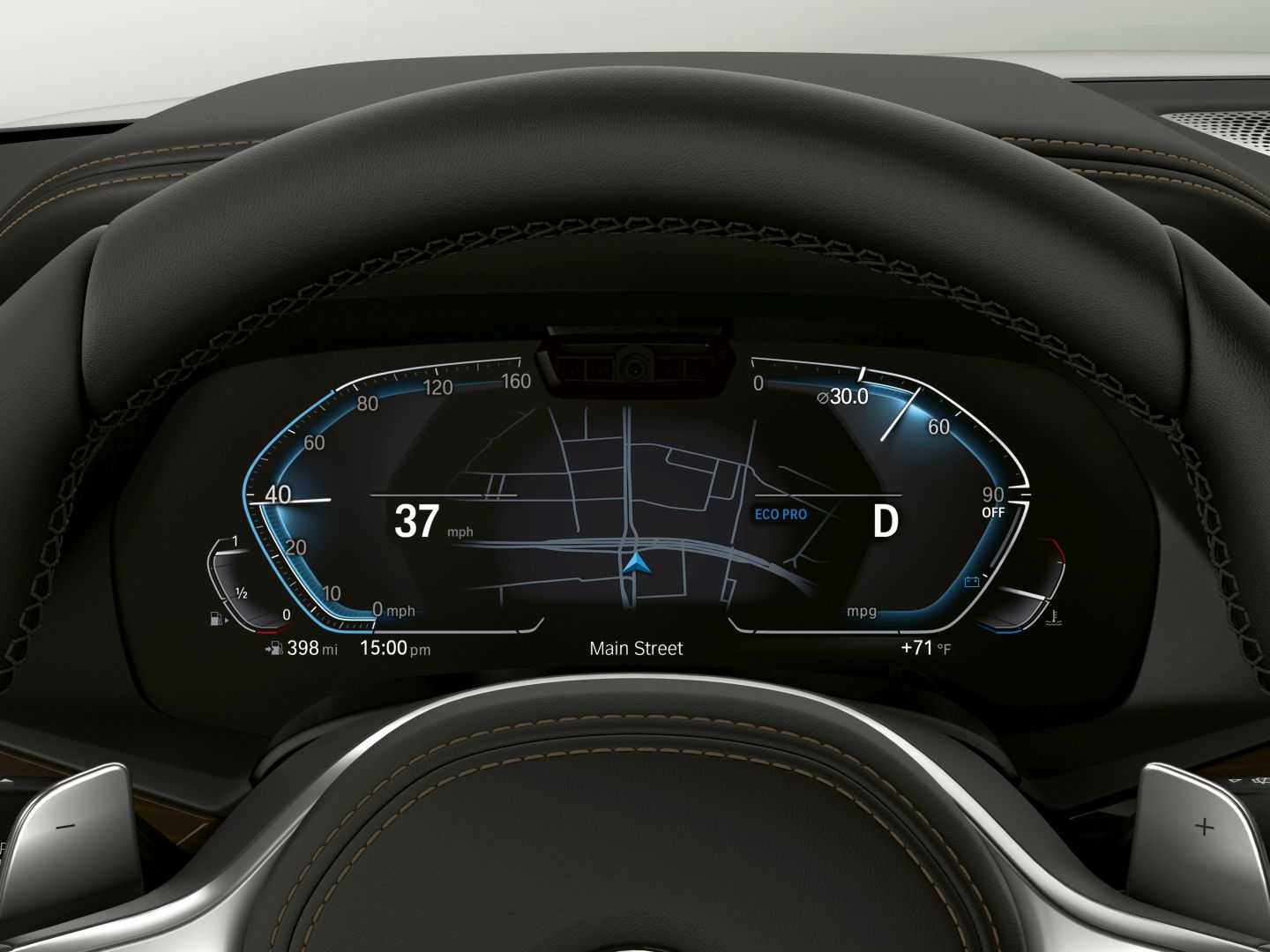 Behind the steering wheel, BMW has installed a camera, in the instrument cluster which will be watching the driver’s face to check whether he or she is paying attention to the road. This optical camera will basically make sure that if you engage the features of the Extended Traffic Jam Assistant system – which is optional, part of a $1,700 package – you are still paying attention to the road ahead without you having to keep your hand on the steering wheel, as it was the case before.