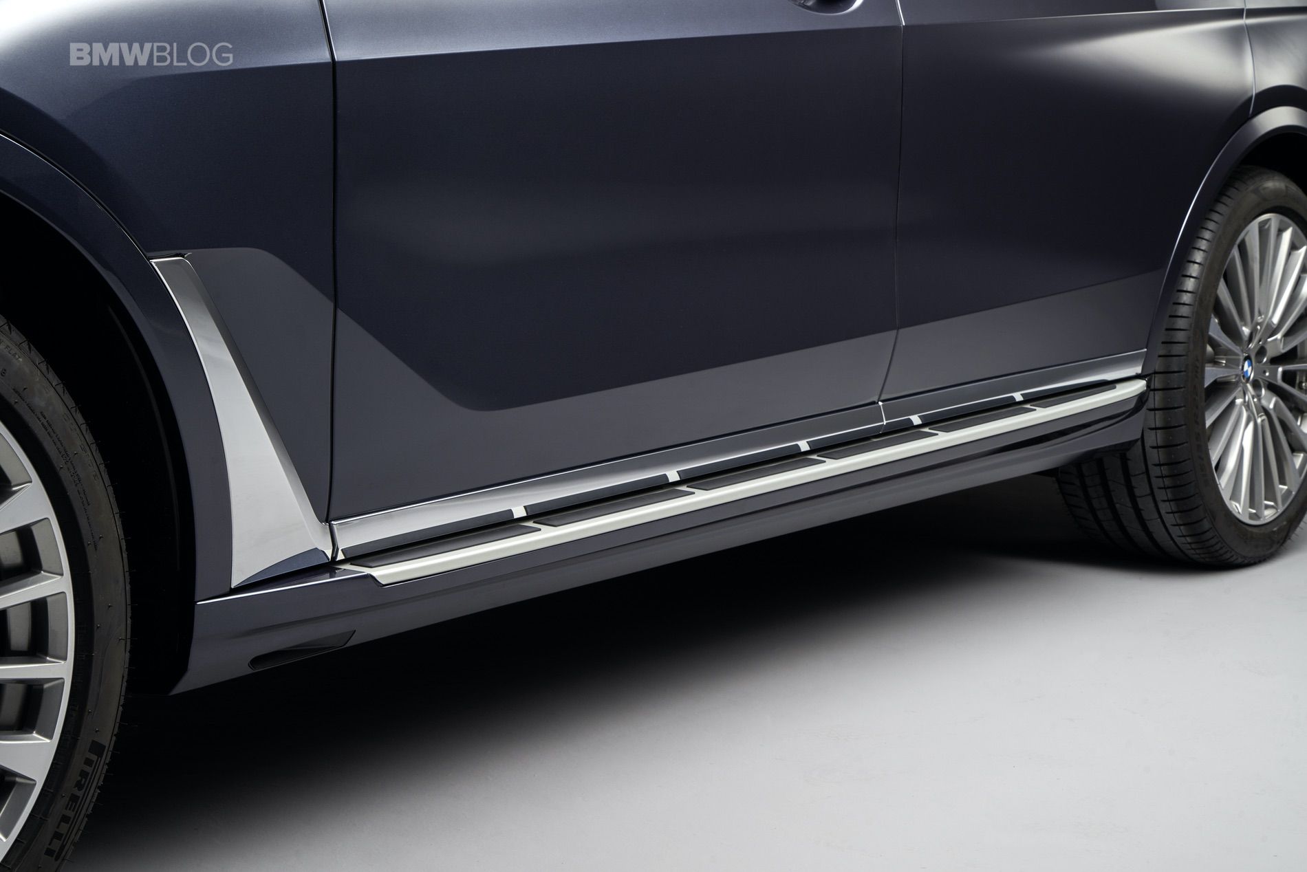 The real life images emphasize even more the massive kidney grille – by far the largest in the entire BMW portfolio – and the directly adjoining headlights which further emphasize the width. In the side view, the sheer dimensions of the X7 and the generous window surfaces make it easy to imagine the spacious interior. The wheels are by no means oversized, although this particular model carries 22-inch alloy wheels. The standard 20-inch model could almost hide under the huge wheel arches.